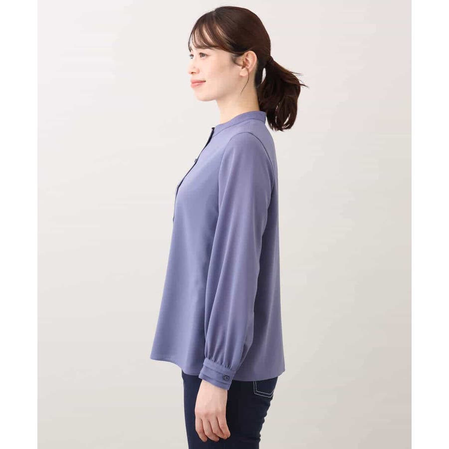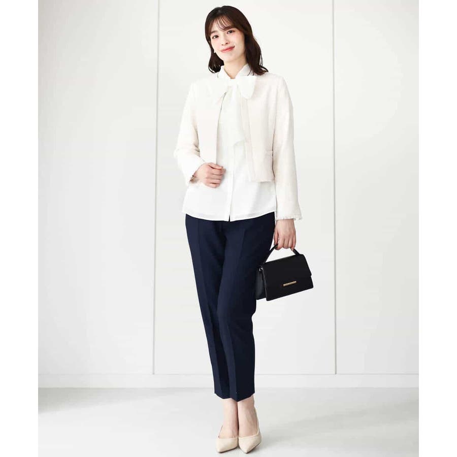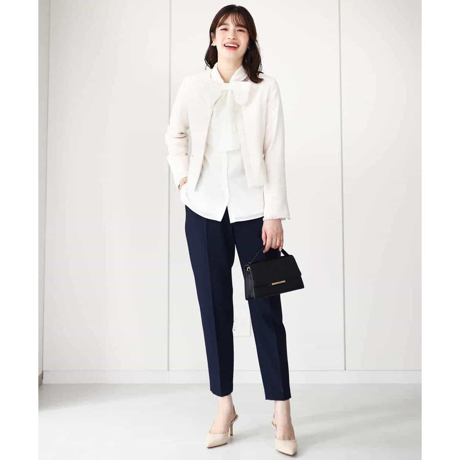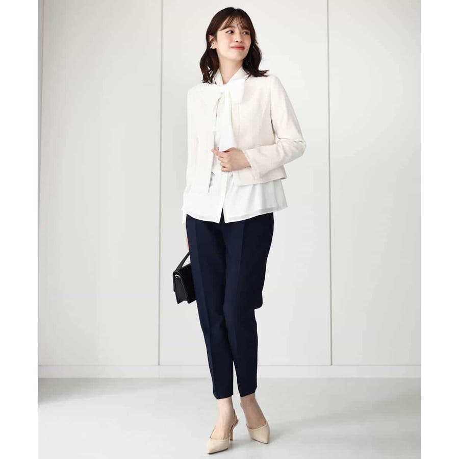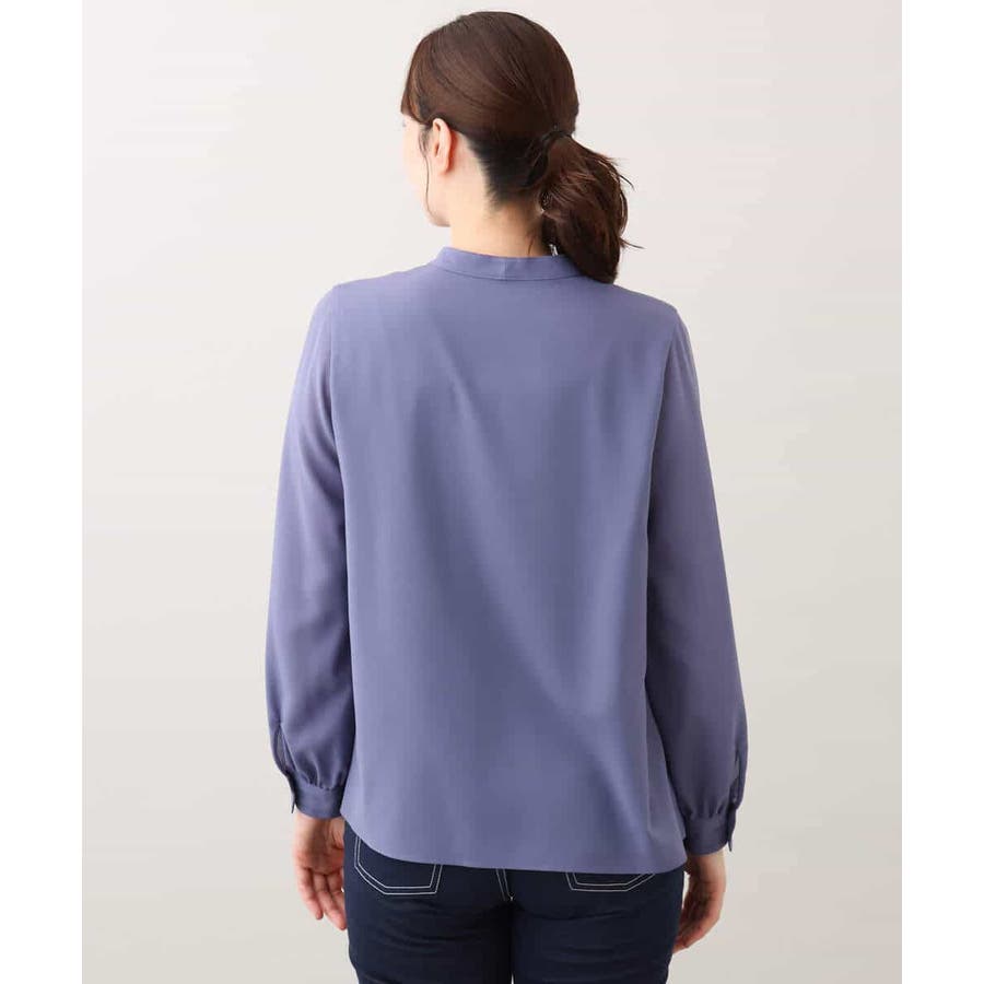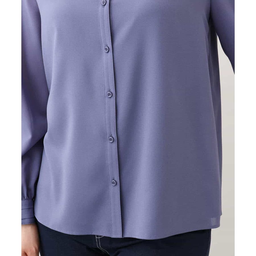 無地ながらも華やかに決まるブラウスはオフィスからお出かけ、セレモニーシーンまで幅広く活躍してくれます。ジャケットのインナーやジレとも相性良く着合わせられるのも嬉しい。