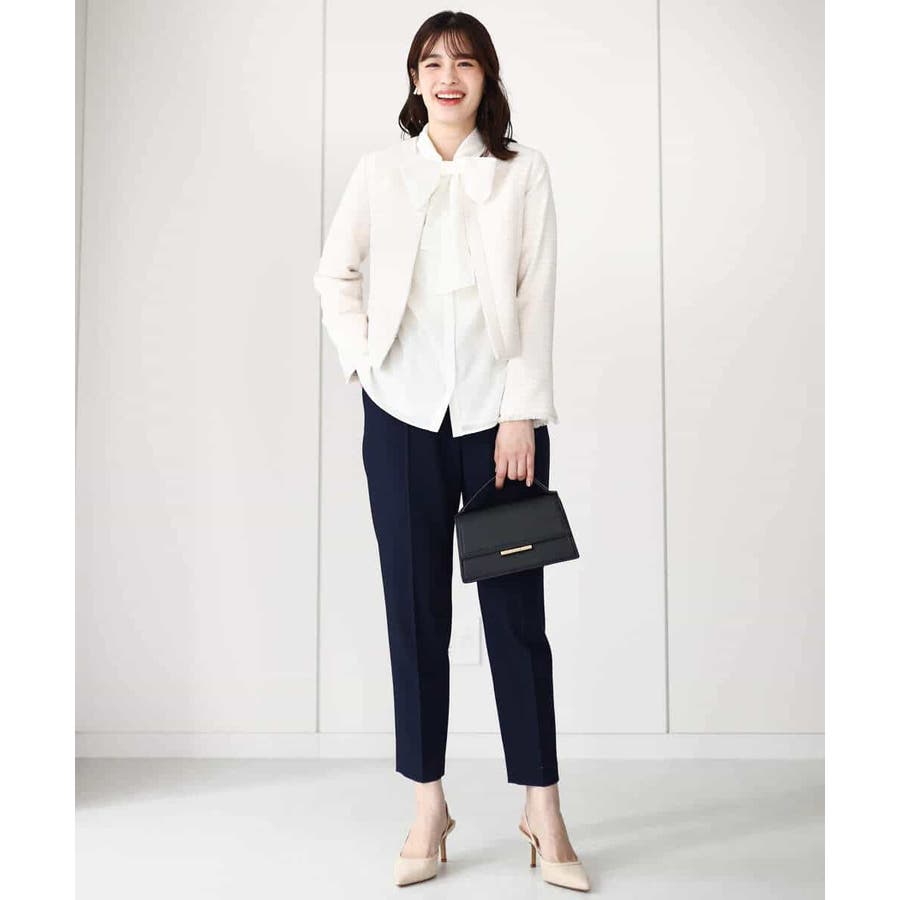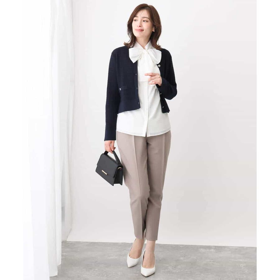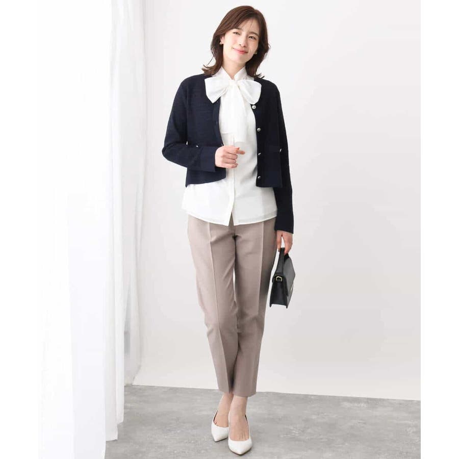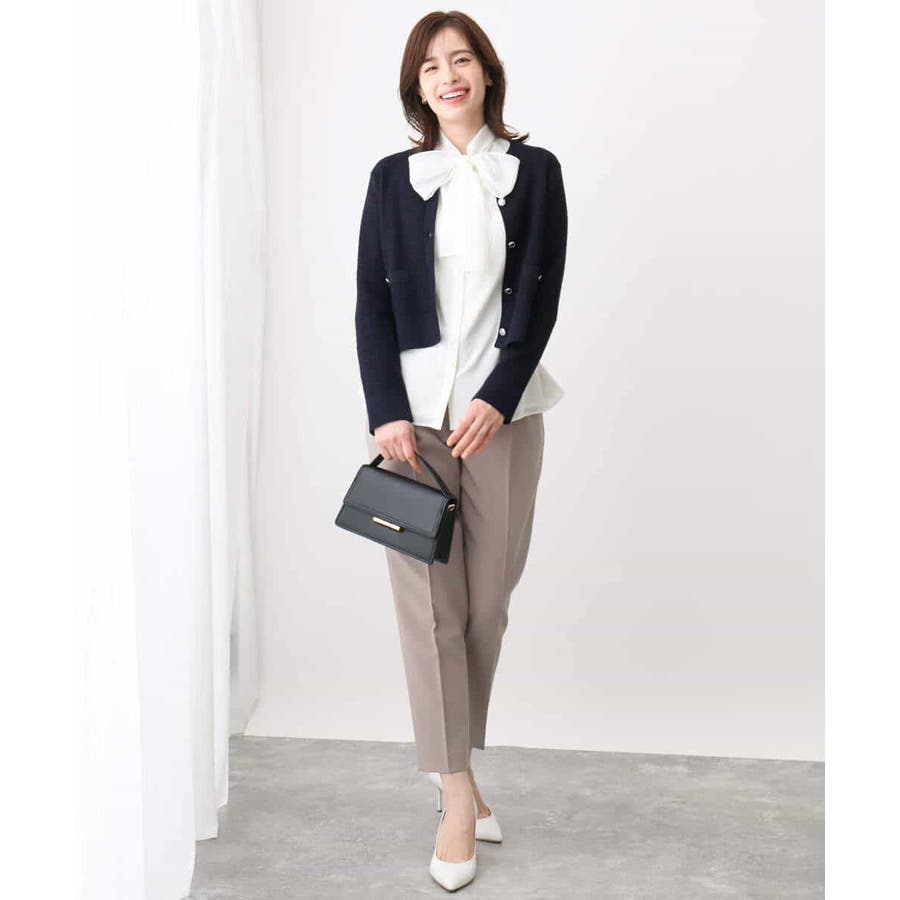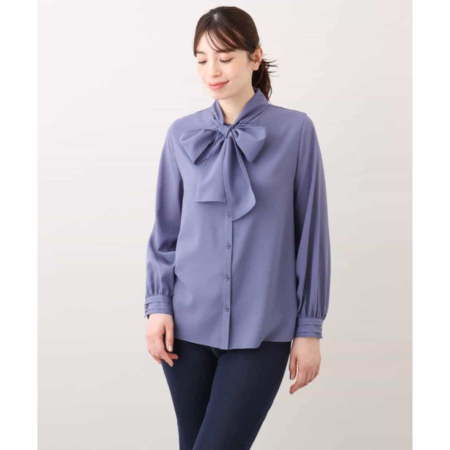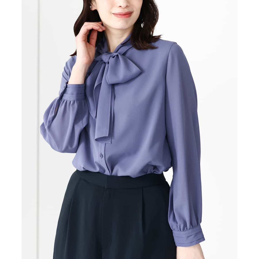 取り外しのできるボウが付いた華やかブラウス。ボウを取ってシンプルなブラウスとしても着こなせます。太めのボウはリボン結びでふんわり大きなリボンを作ると大人可愛い印象に。着脱しやすい前開きデザインも嬉しい。