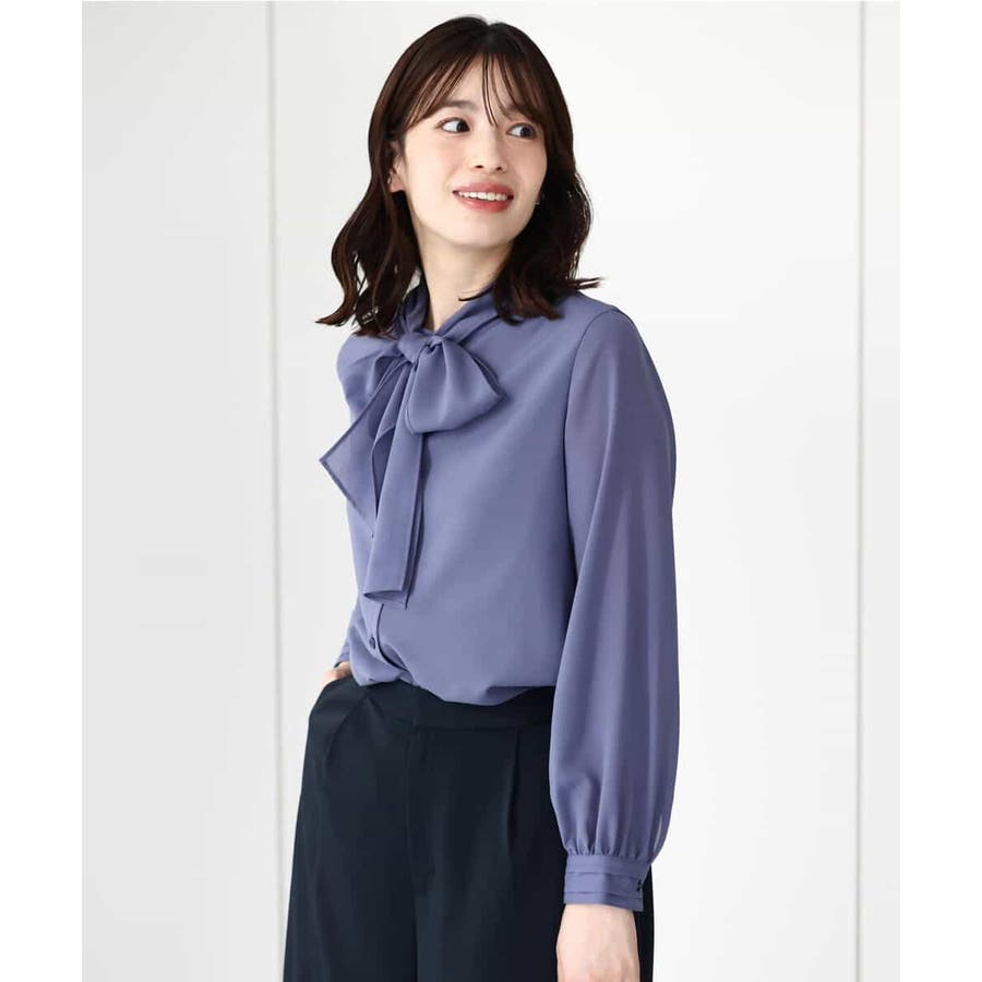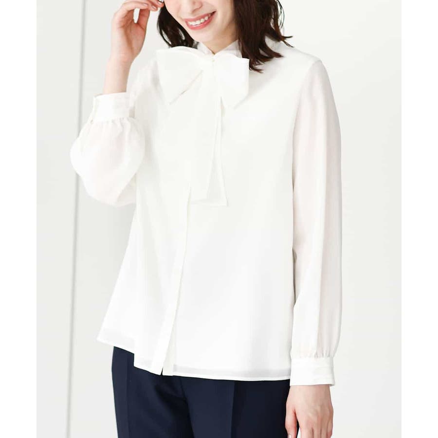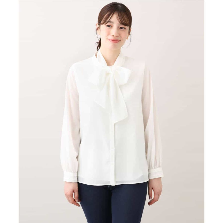 ボウ付きシアーブラウス/洗える/WEB限定サイズあり