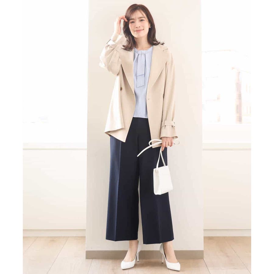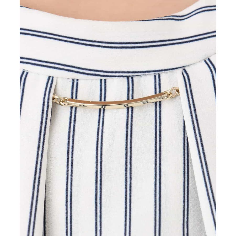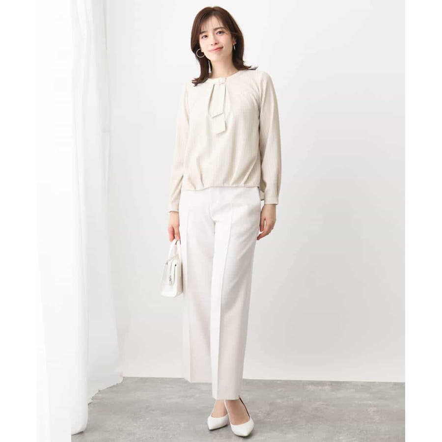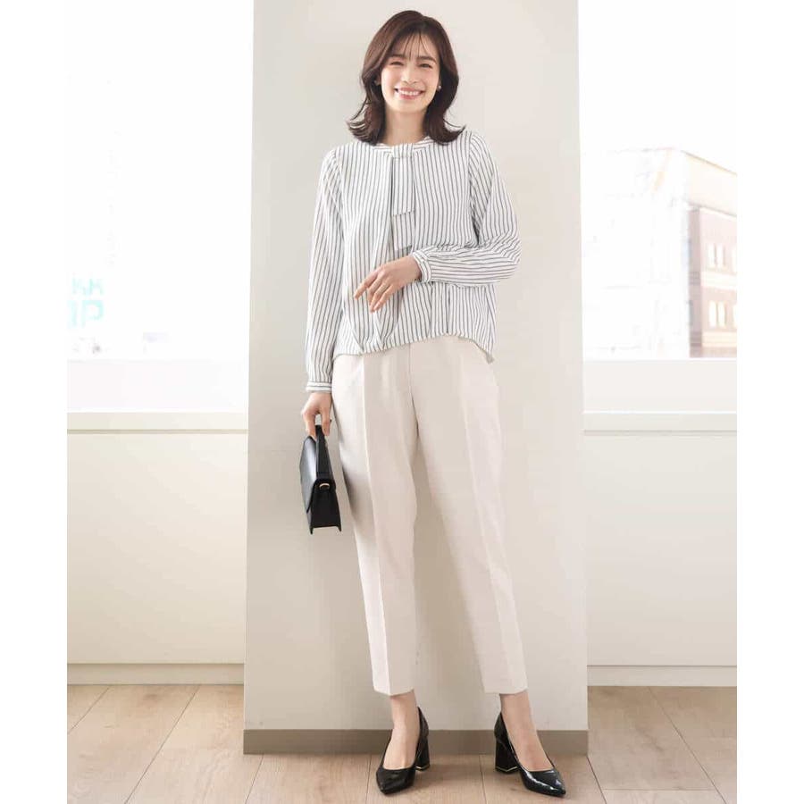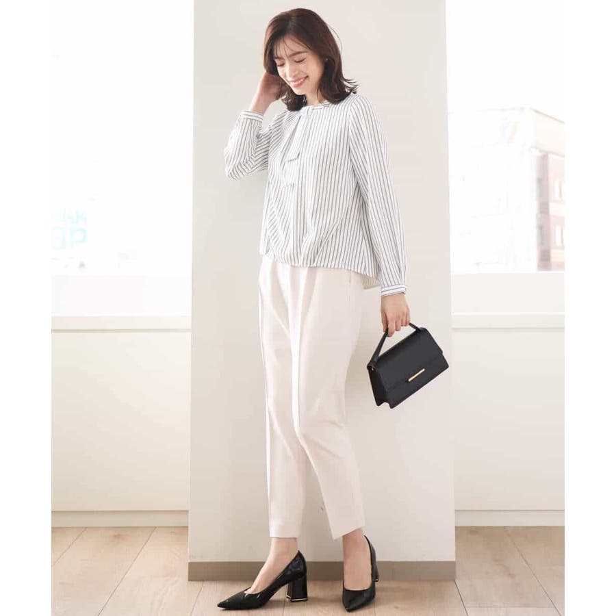 ストライプ柄がアクセントのブラウスは一枚でも、コートやジャケットのインナーとしても印象的。ボウ部分は取り外し可能なので、コーディネートに合わせて、シンプルにも華やかにも着こなせます。