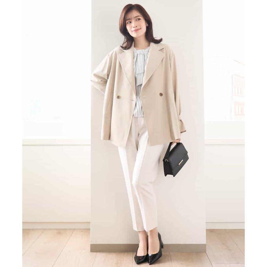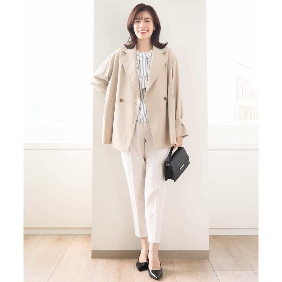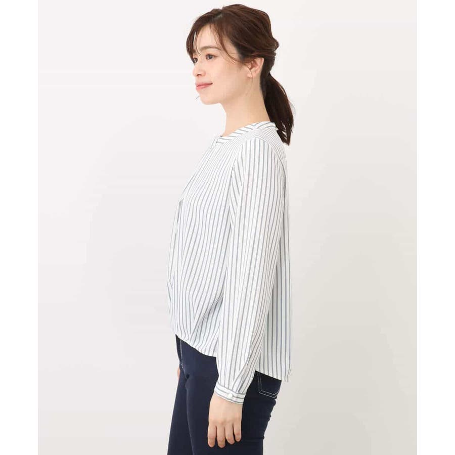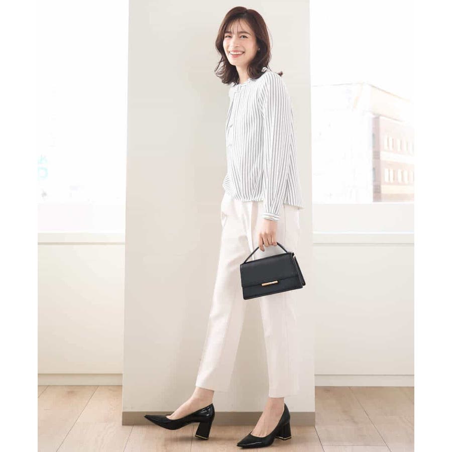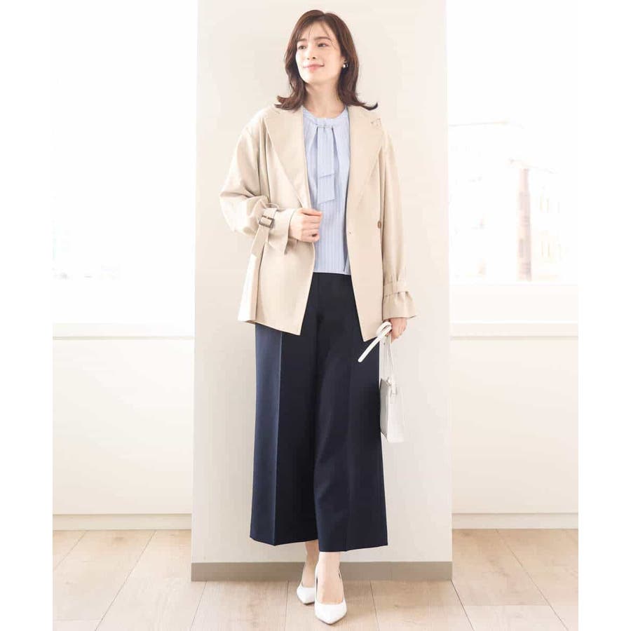 ストライプ柄がアクセントのブラウスは一枚でも、コートやジャケットのインナーとしても印象的。ボウ部分は取り外し可能なので、コーディネートに合わせて、シンプルにも華やかにも着こなせます。
