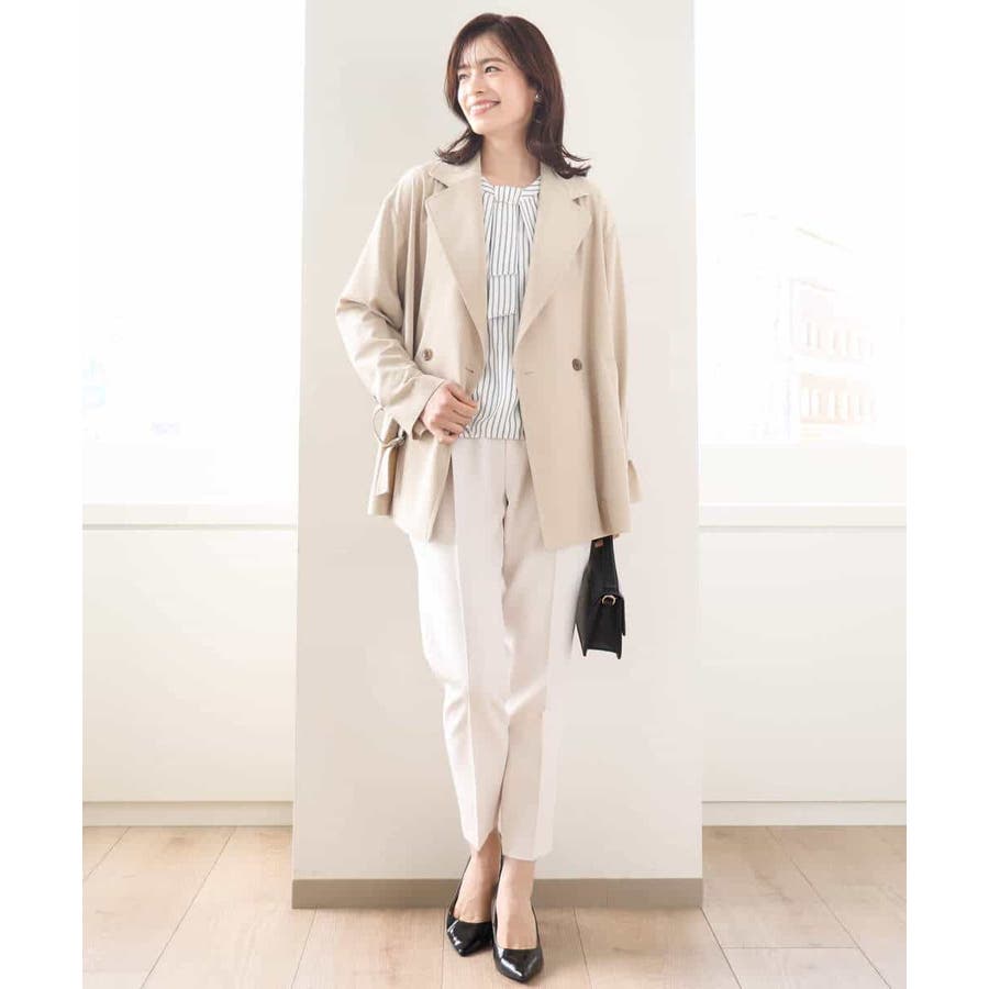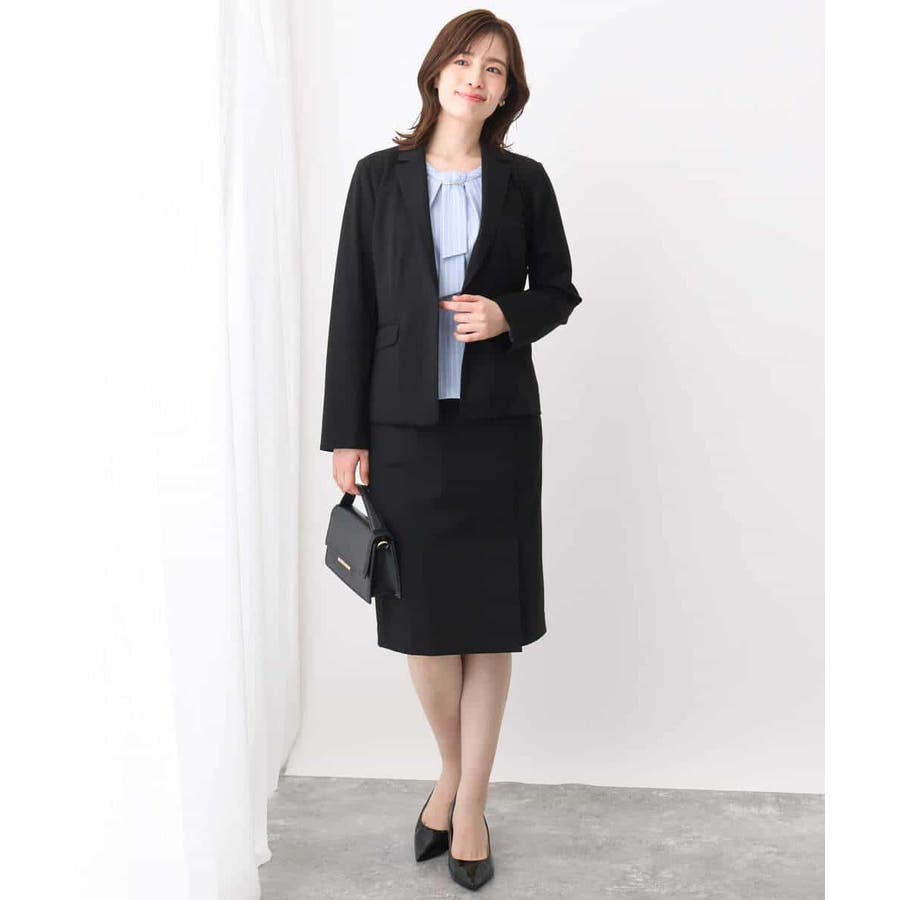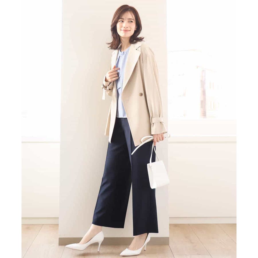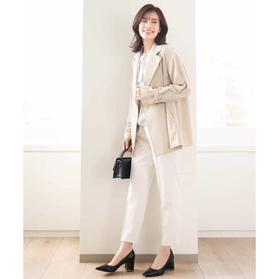 さらりとしたポリエステル素材のブラウスはシワになりにくく、ご家庭で洗える扱いやすさが嬉しい。きちんと感があり、お仕事などのONシーンにもマッチします。