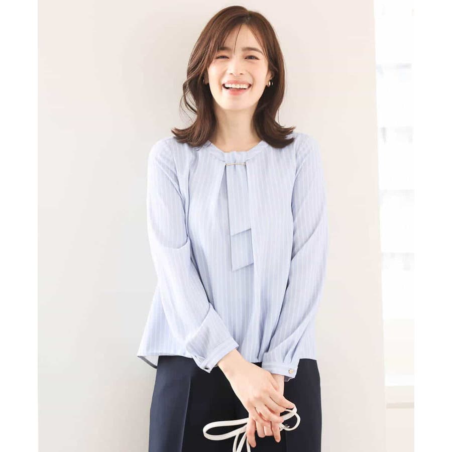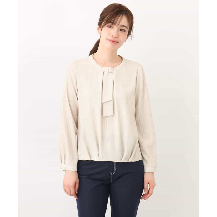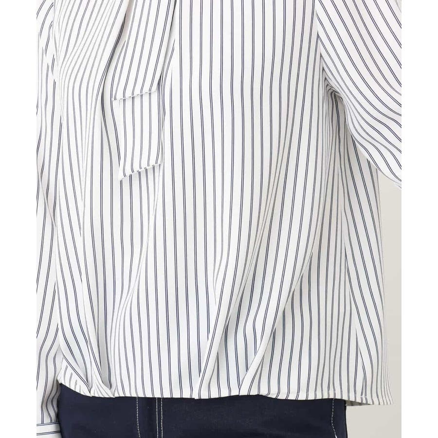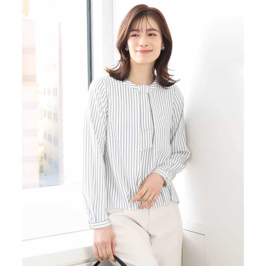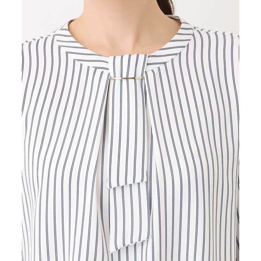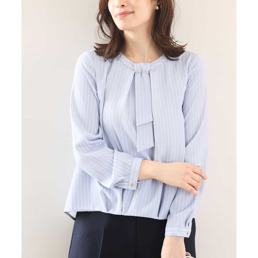 ボウタイ風ストライプ柄ブラウス/洗える/WEB限定サイズあり