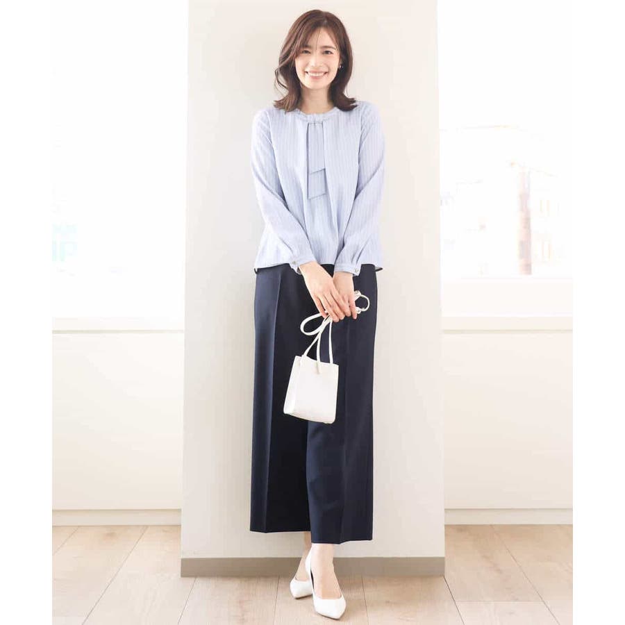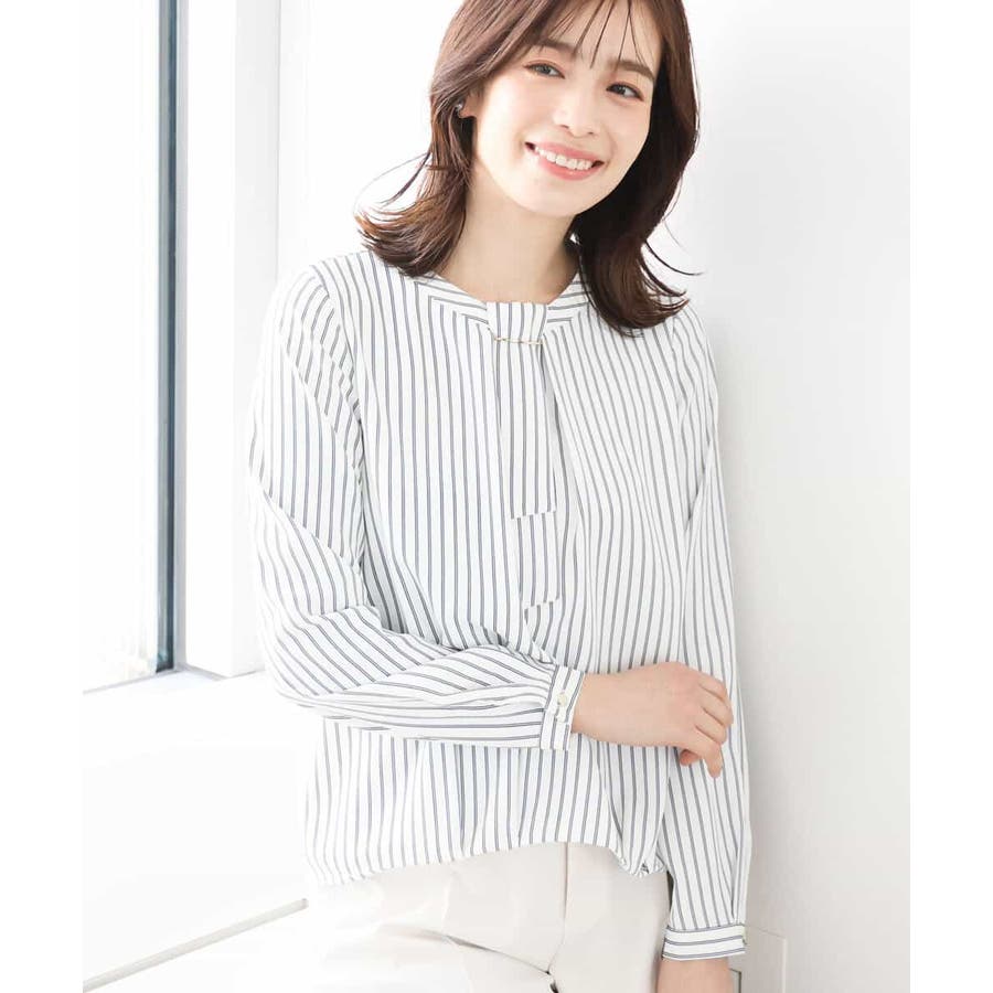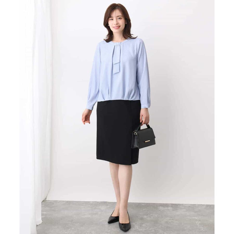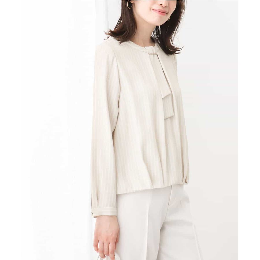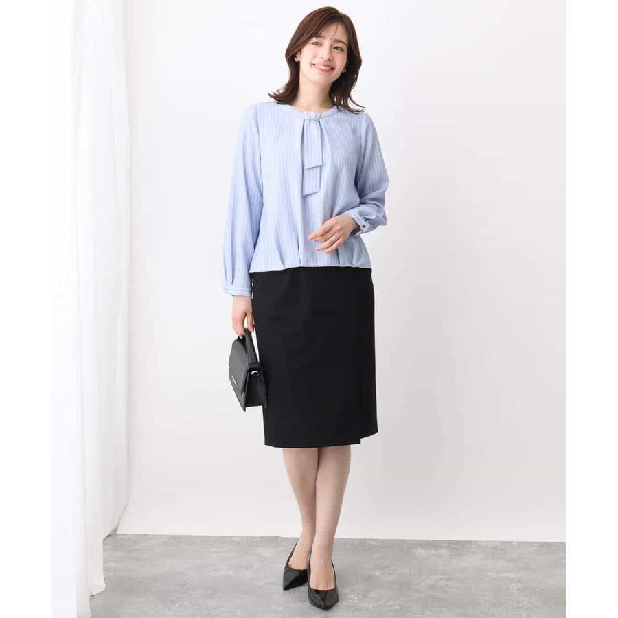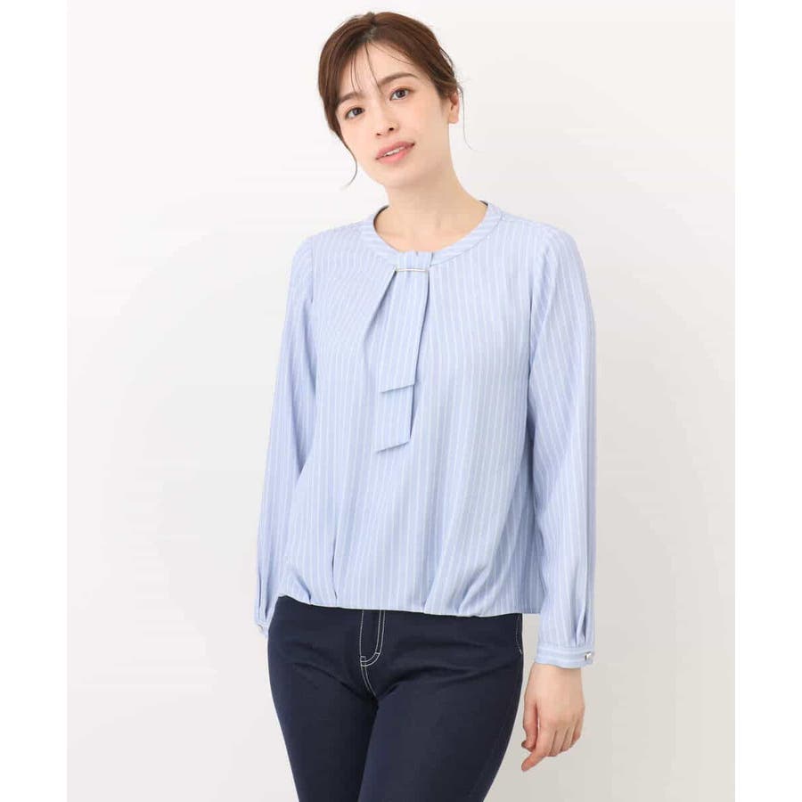 ボウタイ風ストライプ柄ブラウス/洗える/WEB限定サイズあり