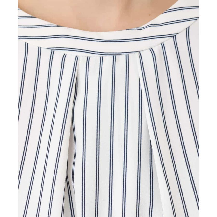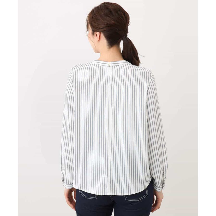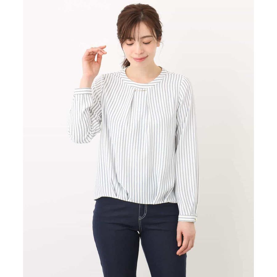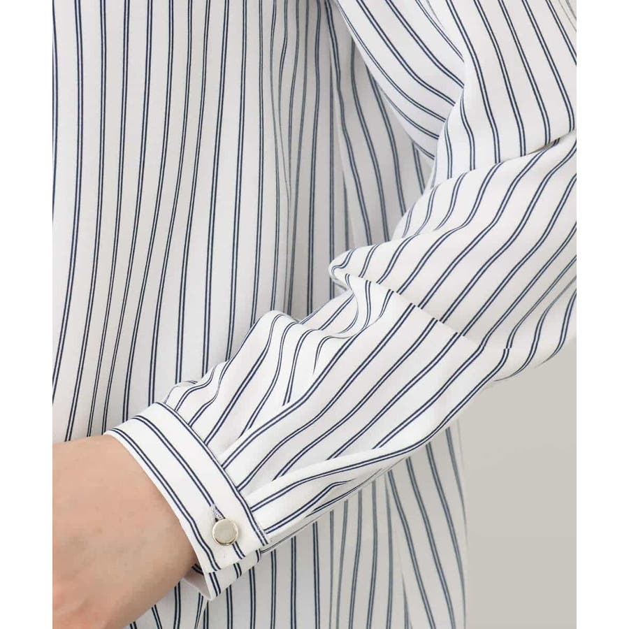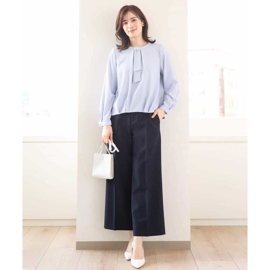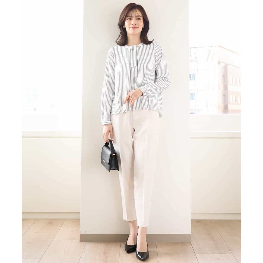 ボウタイ風ストライプ柄ブラウス/洗える/WEB限定サイズあり
