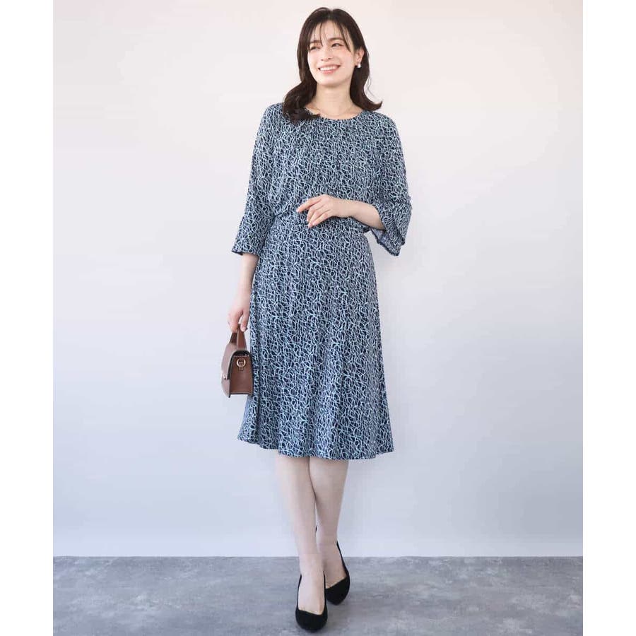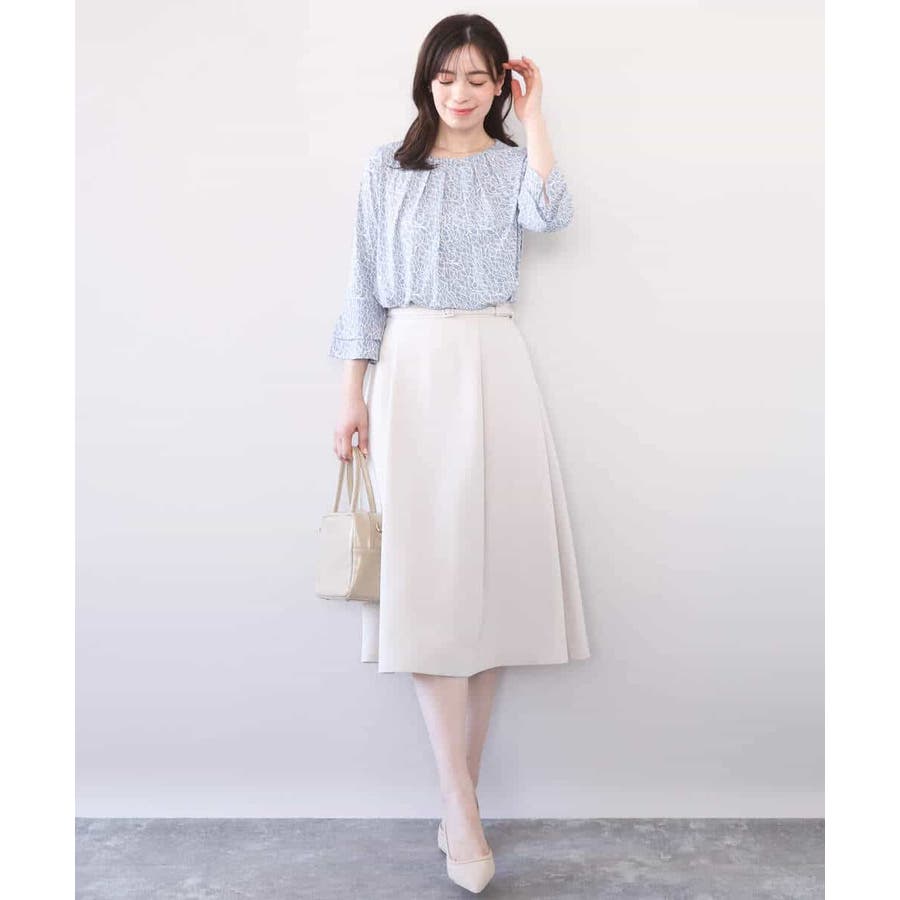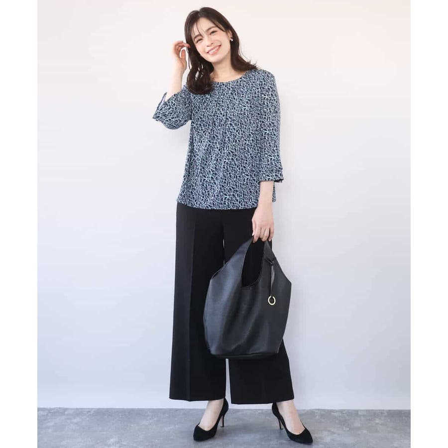 大人っぽいプリントはオフィスやおでかけなどONシーンにも最適。やわらかな素材はウエストインもしやすく、パンツ、スカートと合わせるボトムも選びません。同素材でスカート、ワンピースのご用意もあり。