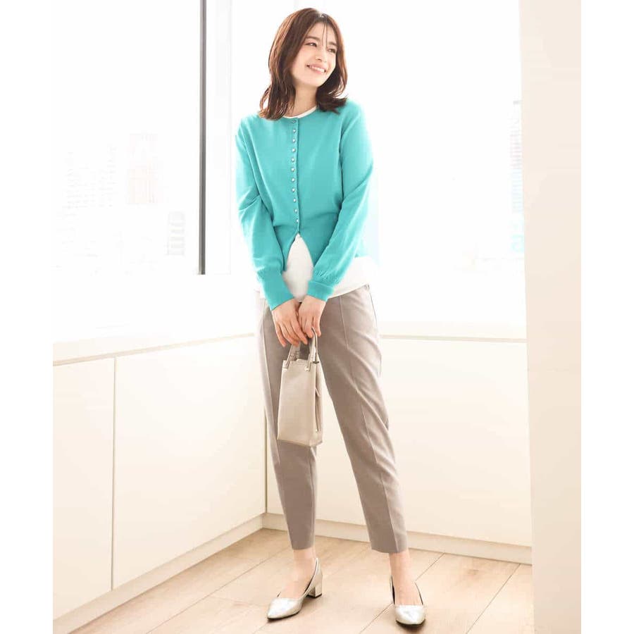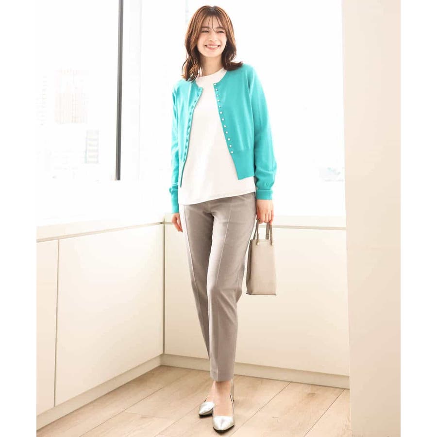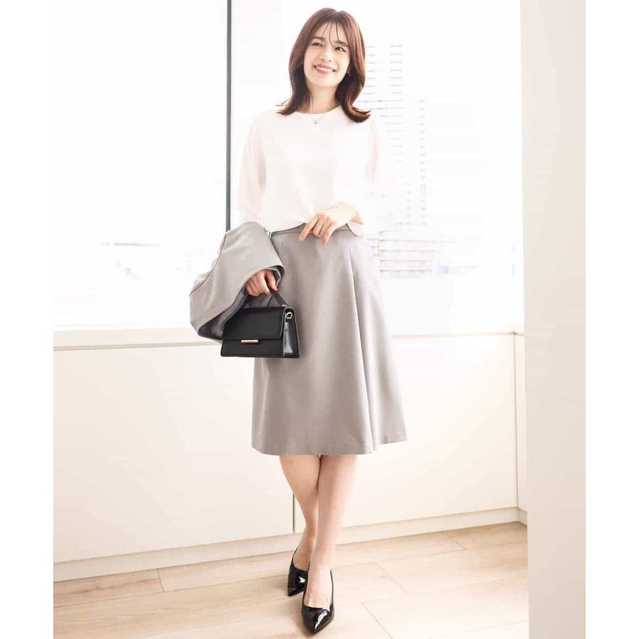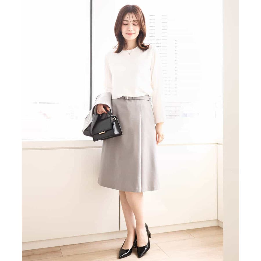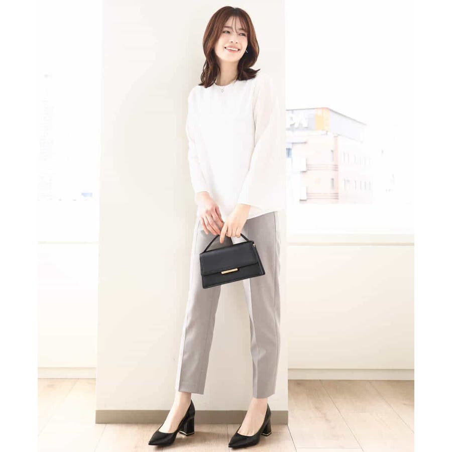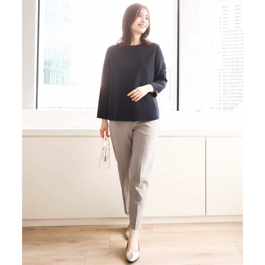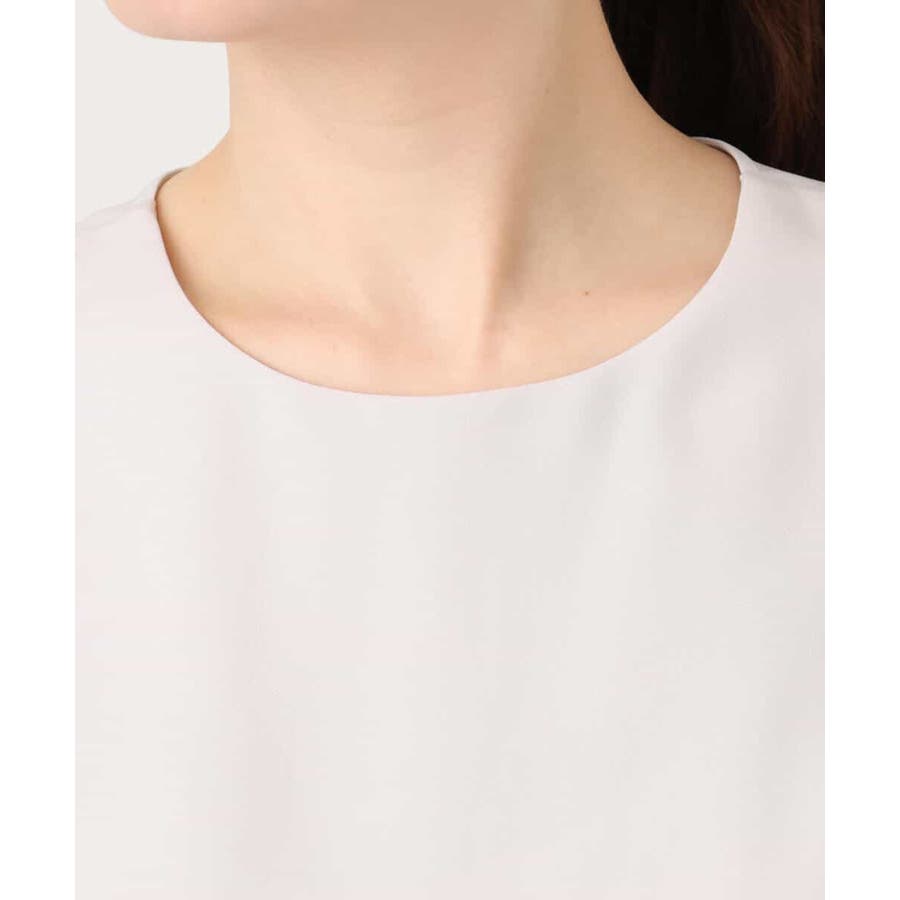 装飾などもないシンプルなクルーネックブラウスは一枚でもインナー使いもおすすめ。スーツジャケットのインナーとしても重宝してくれます。腰周りをふんわりとカバーしてくれるシルエットはパンツとも好相性。