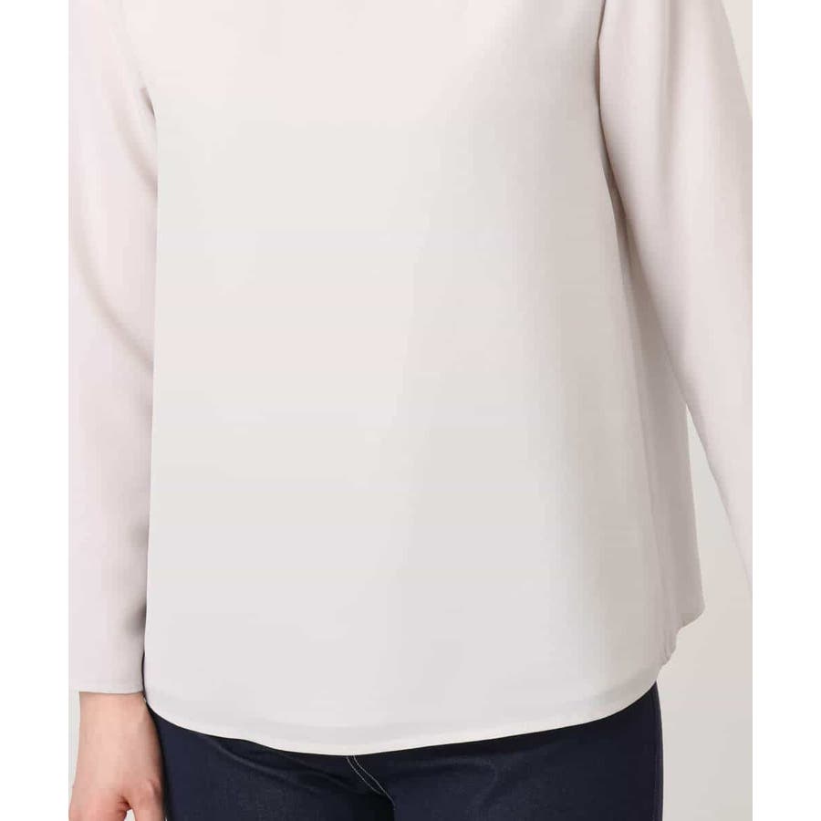 シンプルなでザインが使い勝手のいい薄手の長袖ブラウス。すっきりと見えるコンパクトなデザインながらも、体のラインを拾わない動きやすいサイズ感に仕上げました。