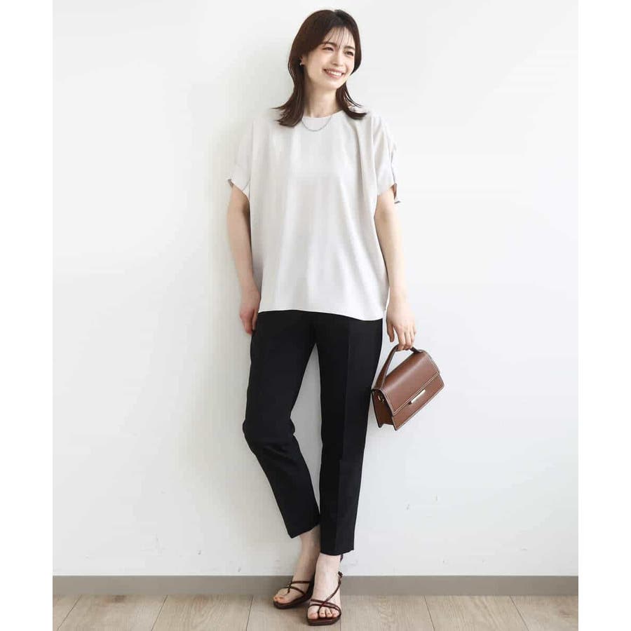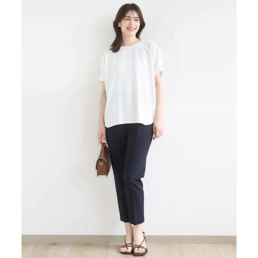 やわらかなブラウスは一枚着で女性らしいスタイルに。きれいめコーデはもちろん、カジュアル使いにも品よくまとまり、着こなせるシーンは豊富なのも嬉しい。ゆったりとしたシルエットなので、細身のボトムと好相性です。