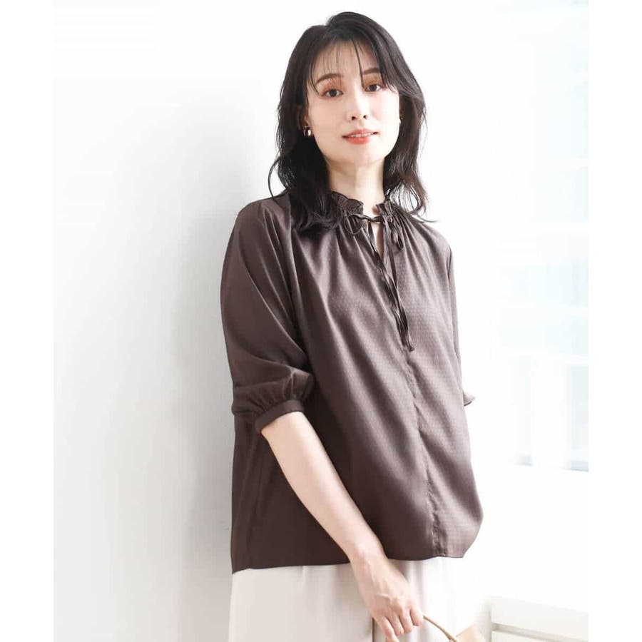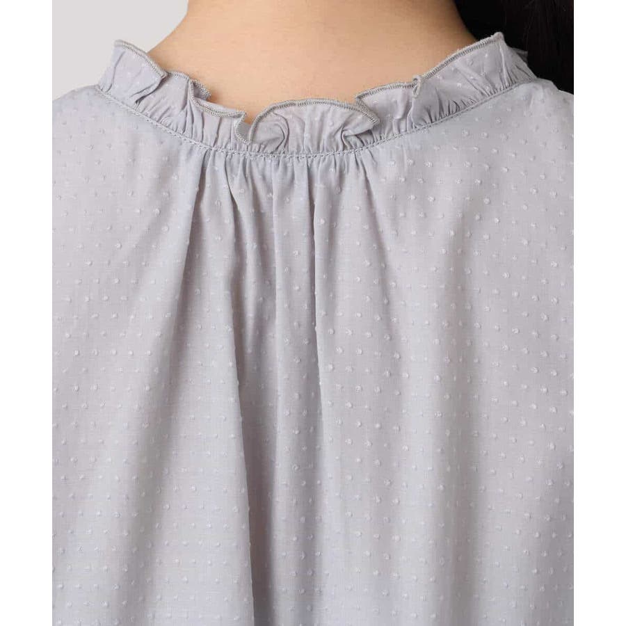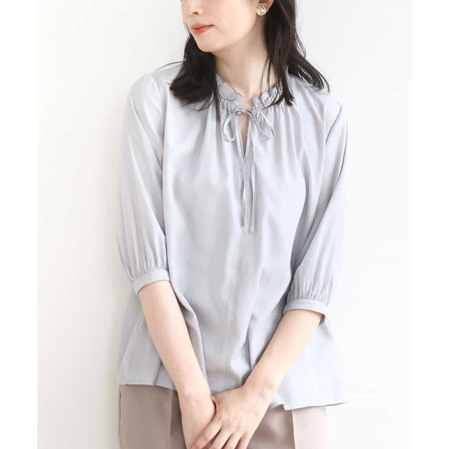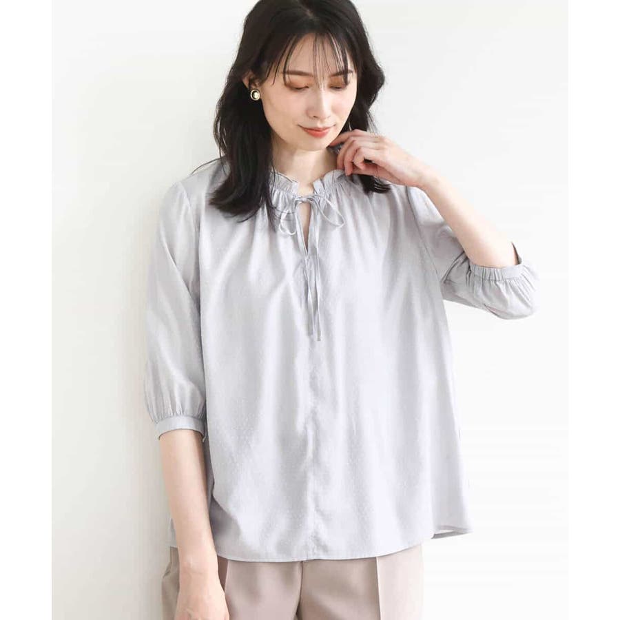 ドットジャガードフリルリボンブラウス/UVカット/洗える/WEB限定サイズあり