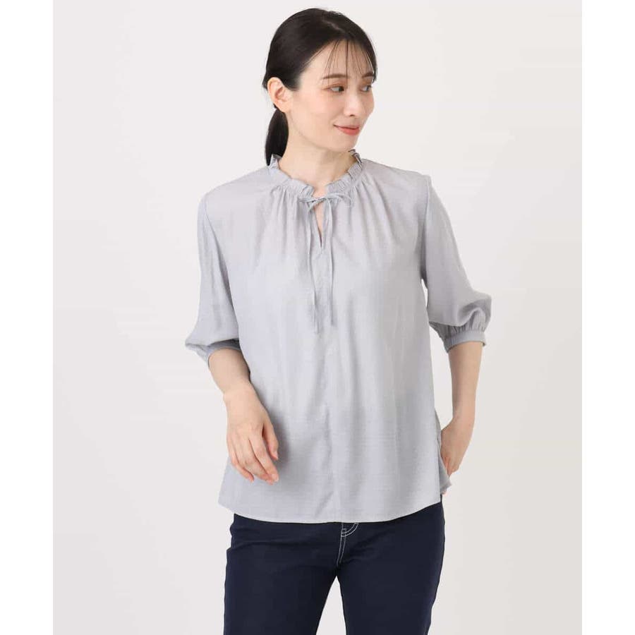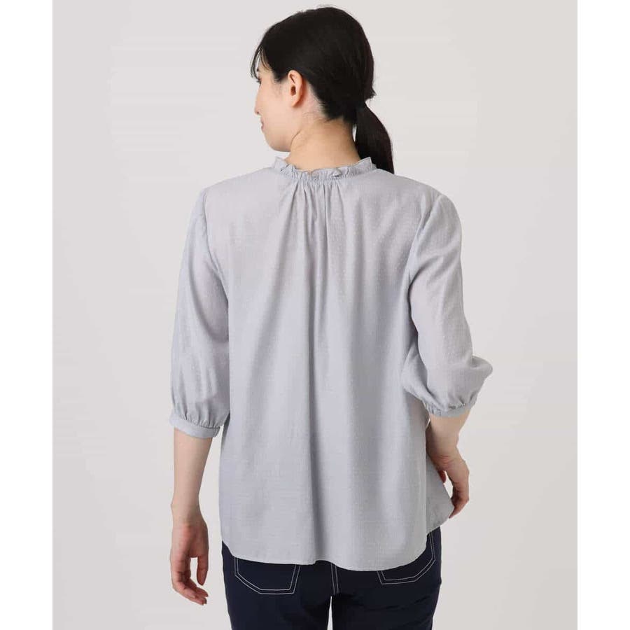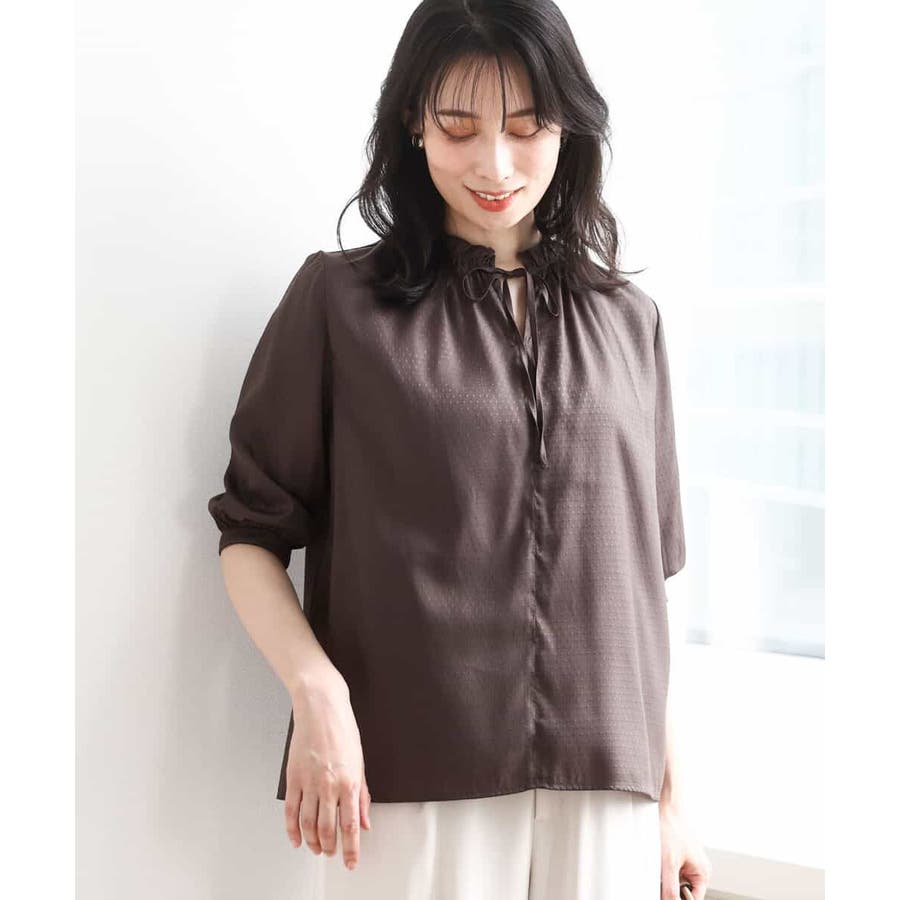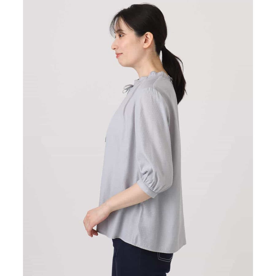 ドットジャガードフリルリボンブラウス/UVカット/洗える/WEB限定サイズあり