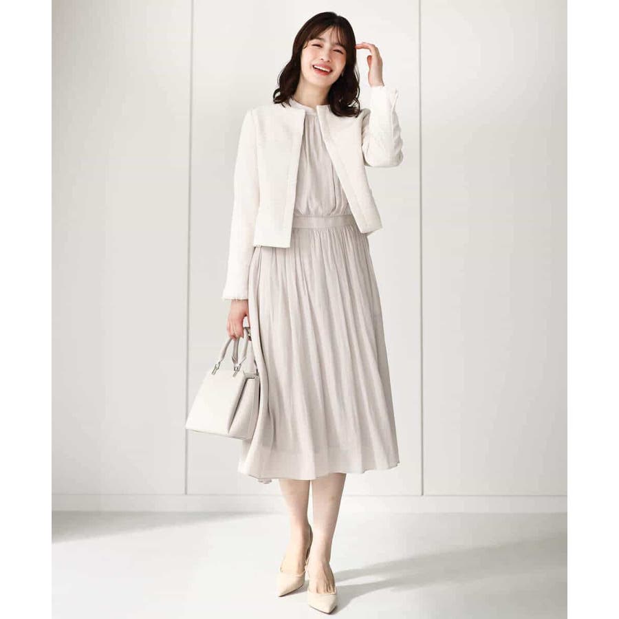 大切なお席からデイリーのお出かけまで華やかさを後押ししてくれるアイテムです。同素材のワンピースとセットアップでも着こなし可能。