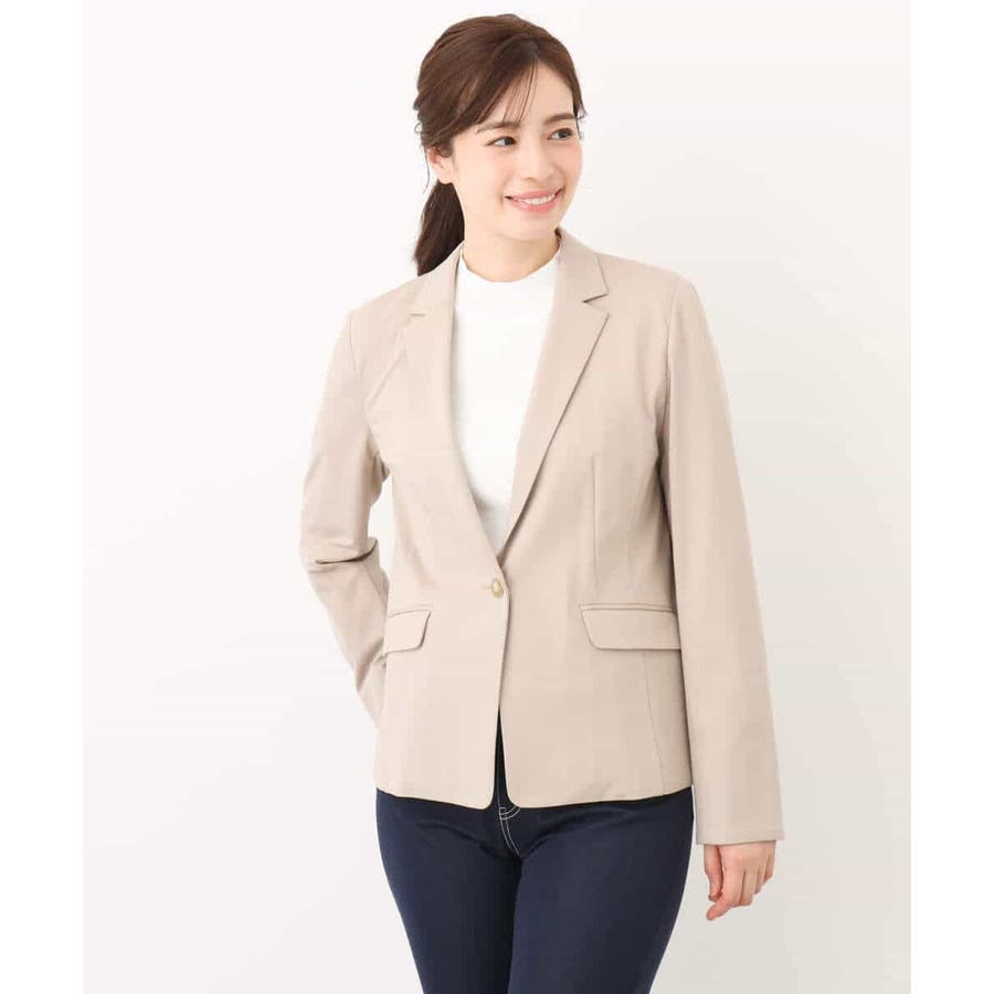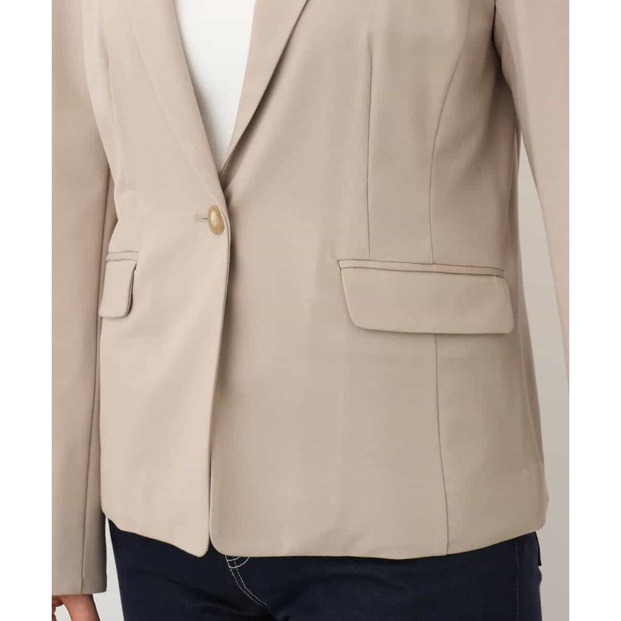 シャープなテーラードジャケットはすっきりと好印象に。シンプルなデザインは合わせるインナーを選ばずに着こなしやすいのが嬉しい。