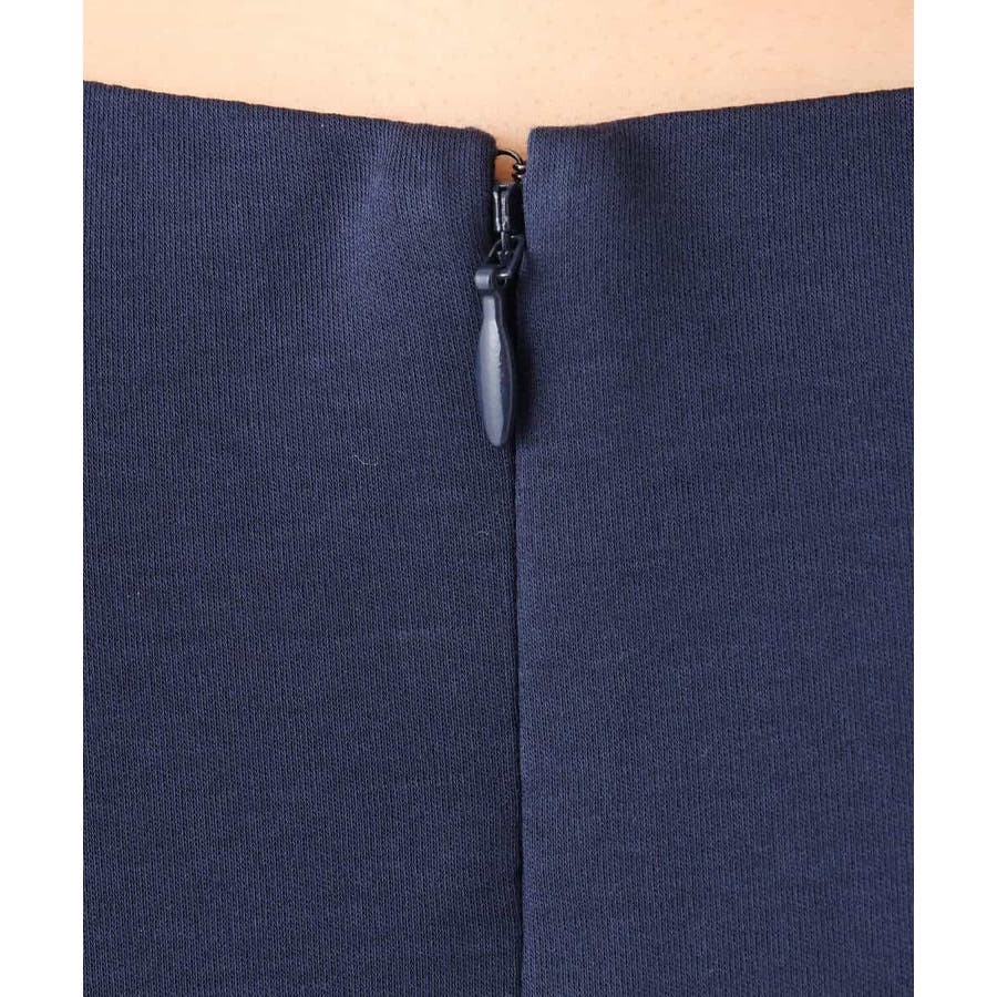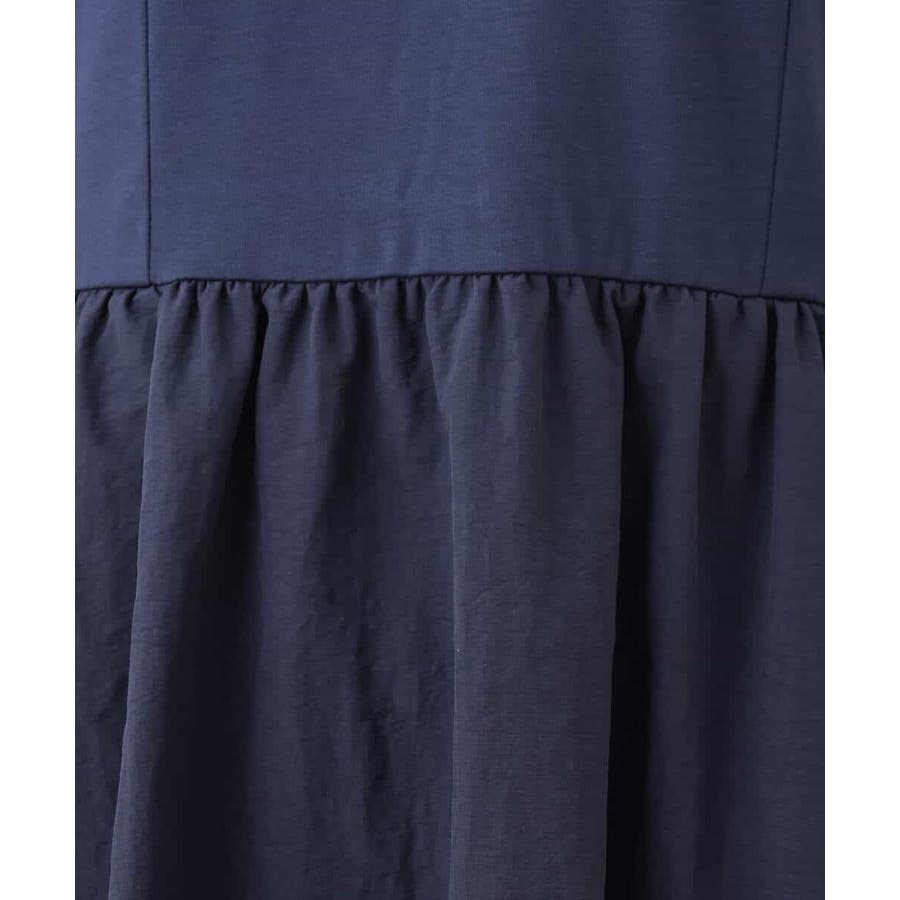 身頃は伸縮性と着心地の良さが魅力のカットソー素材。スカートは適度なハリのある素材できれいなシルエットが特徴。