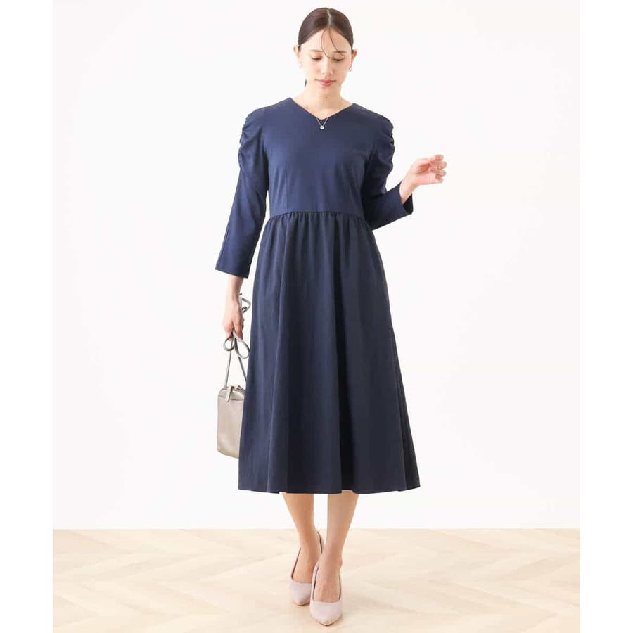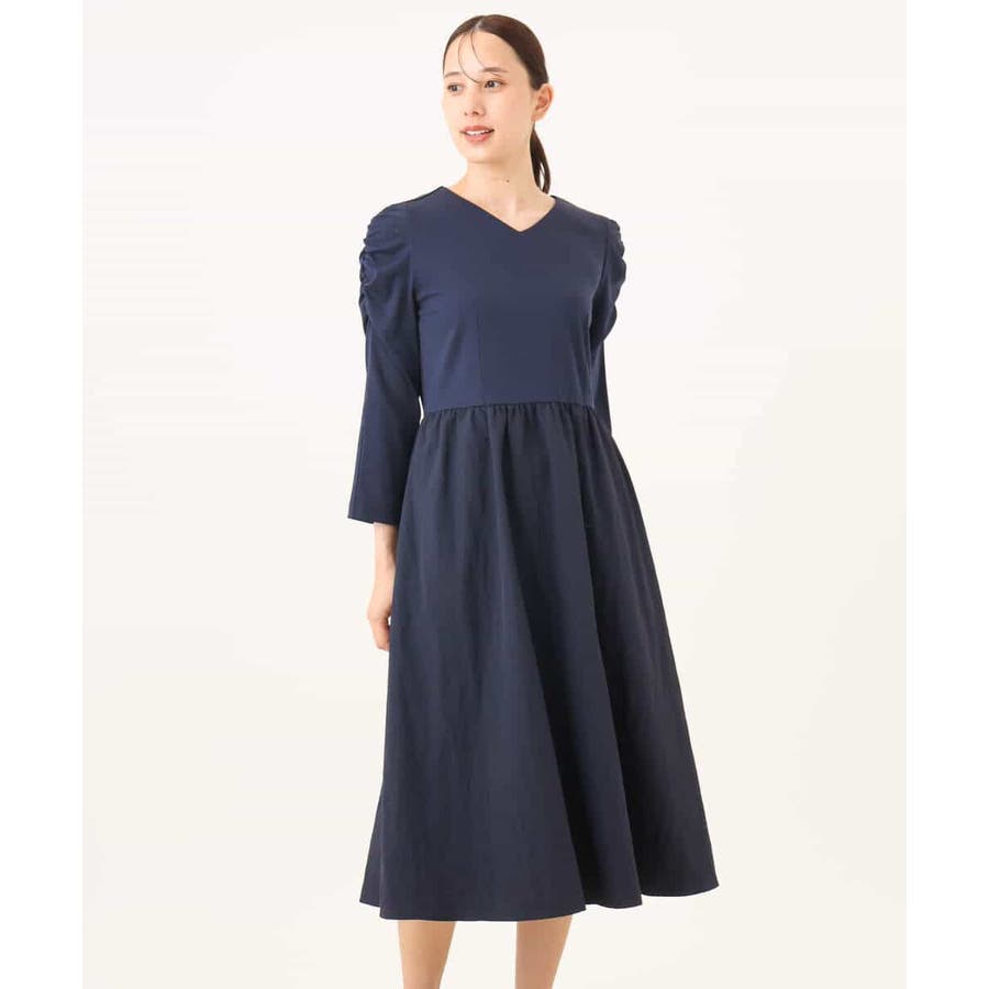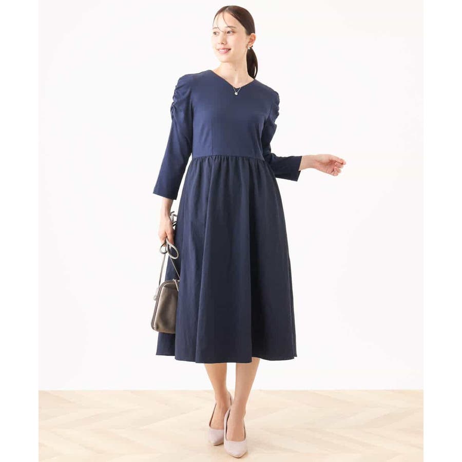 ギャザースリーブドッキングワンピース/洗える/WEB限定サイズあり