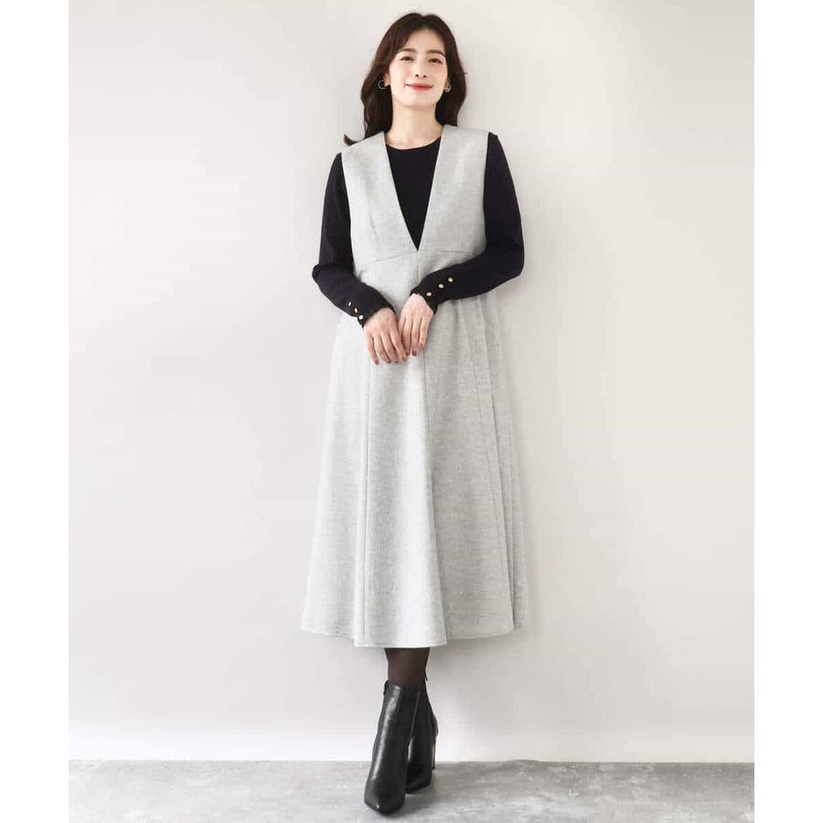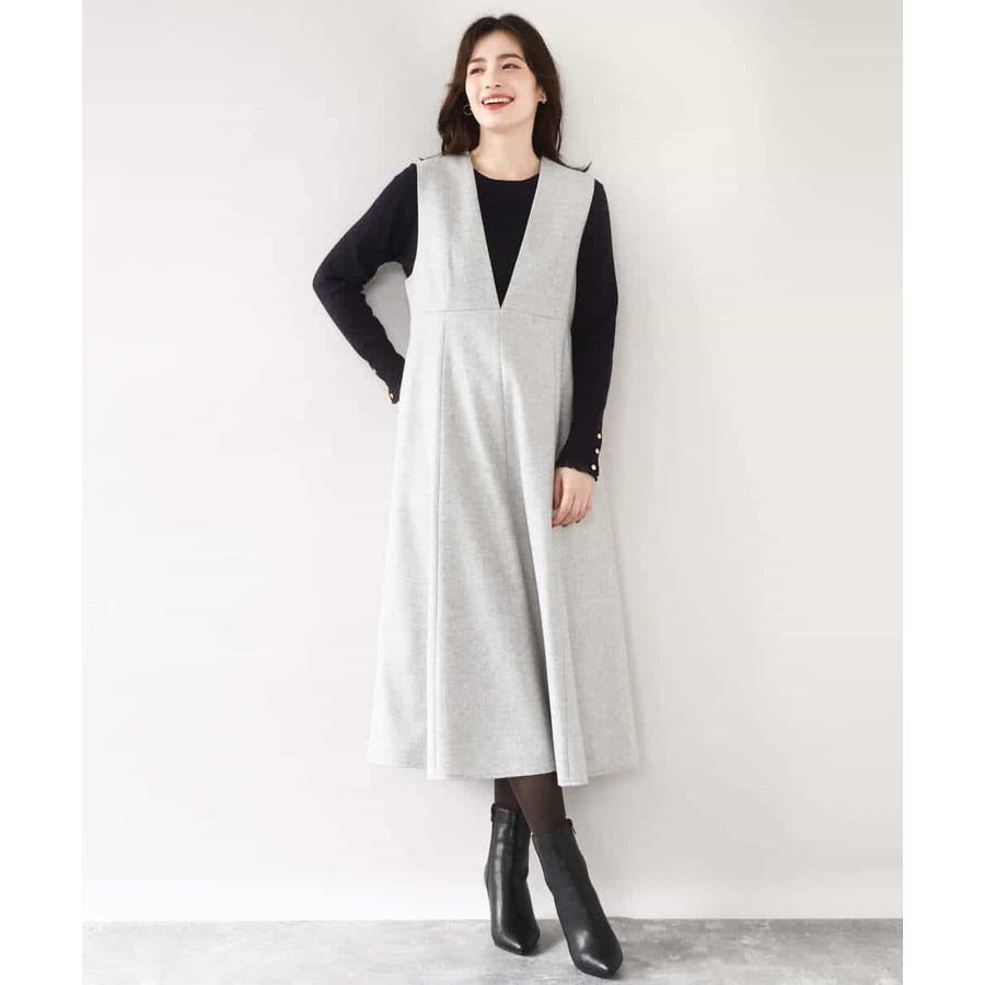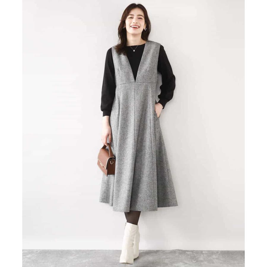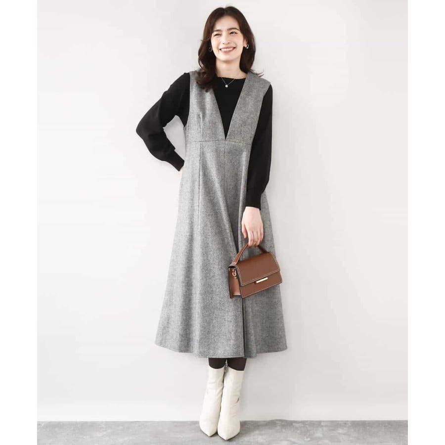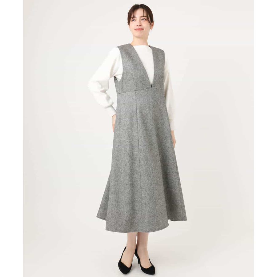 ほんのりラメ入りのツイード素材が上品なジャンパースカート。深めのV開きですっきりと、フレアーシルエットで女性らしく着こなせる一枚です。フィット&フレアーのシルエットは身体のラインを拾いにくいのも嬉しい。バックの開きを控えめにすることで、ショルダーもずり落ちにくくストレスフリーに着用いただけます。