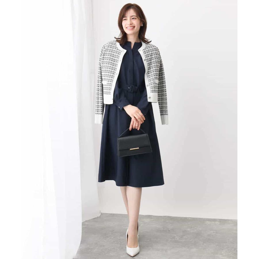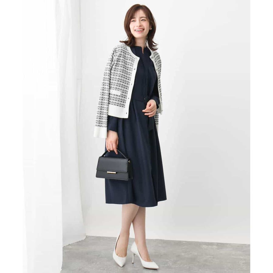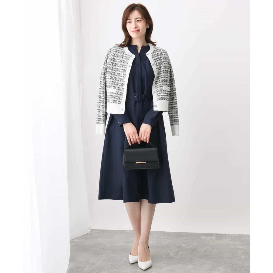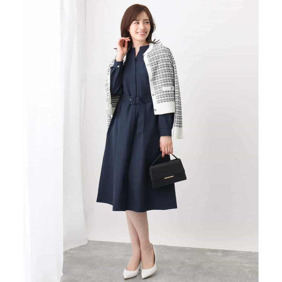 コーディネート要らずのワンピースはきちんと見え。ジャケットやカーディガンとも相性良く着こなせるのでオフィスシーンにも最適です。フロントを開けて羽織りとしても着用できる2way仕様です。