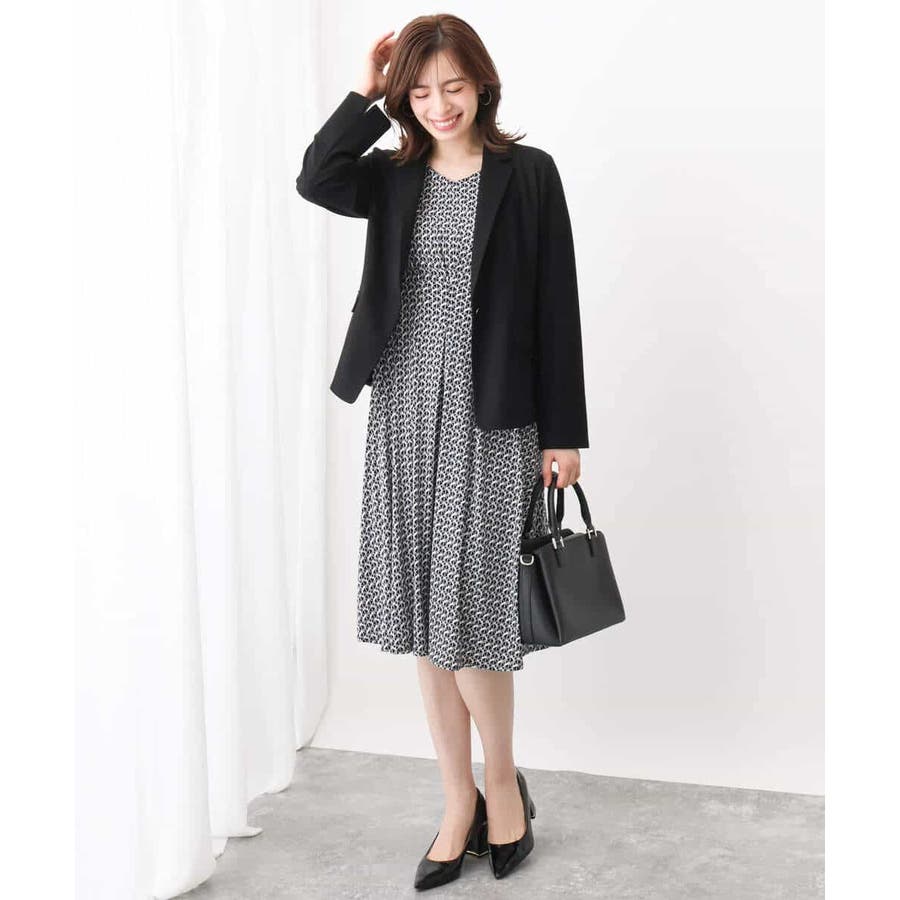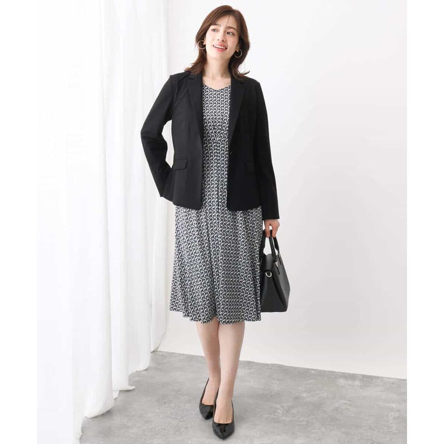きれい見えなワンピースはジャケット合わせでもすっきりと決まります。きちんと感がありお仕事シーンにもマッチします。同素材のブラウス、スカートのご用意もあり。