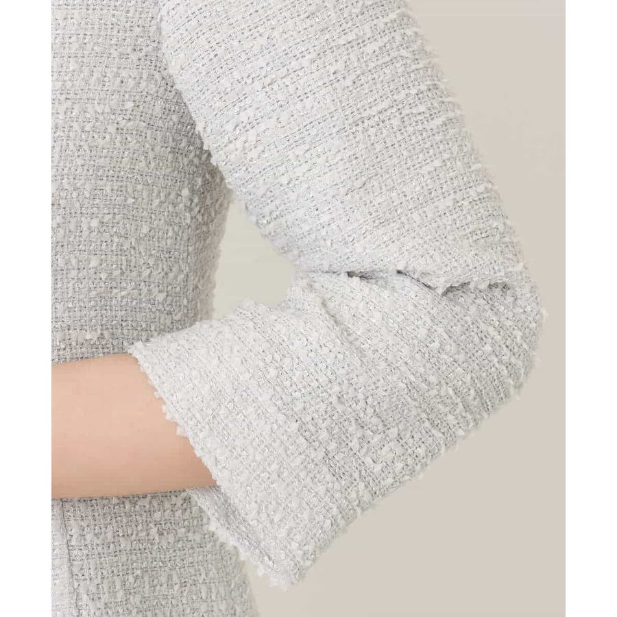 厚手すぎず軽く着こなしやすさが魅力のツイード生地を使用。やわらかでいながら程よい肉感がちょうどいい素材は様々なシーンで着こなしやすい。