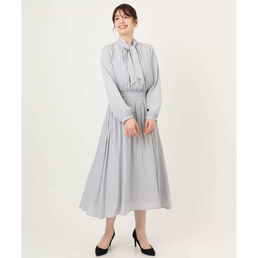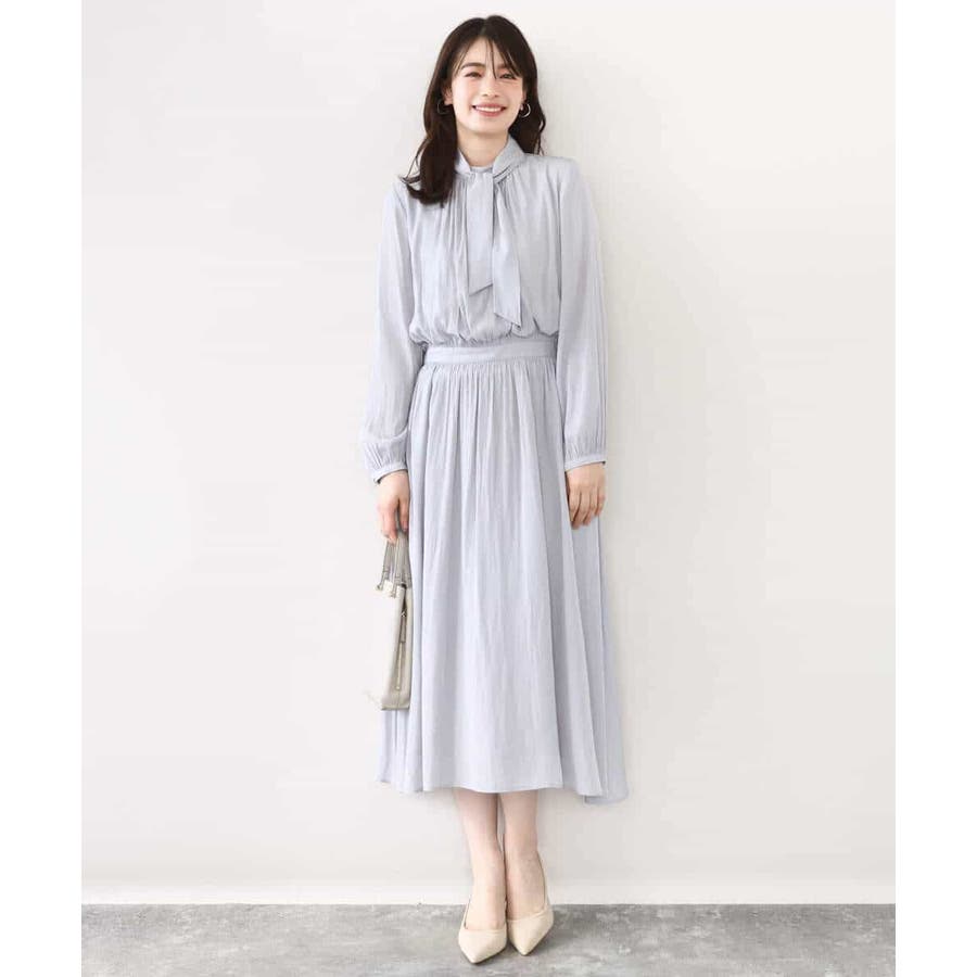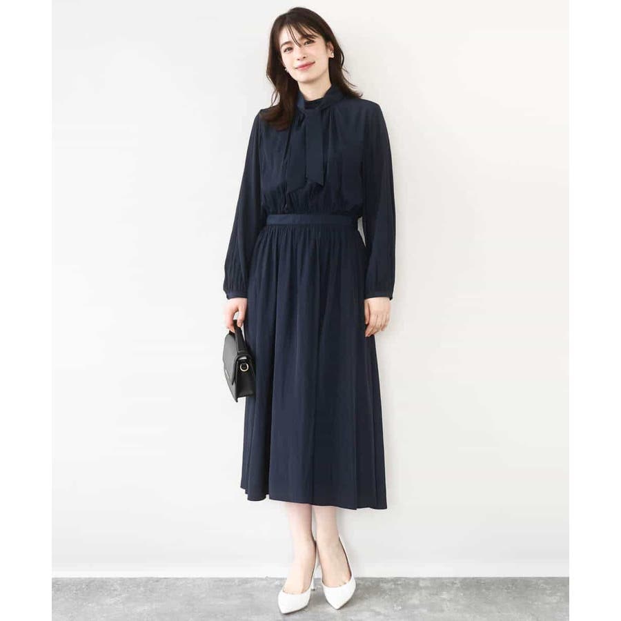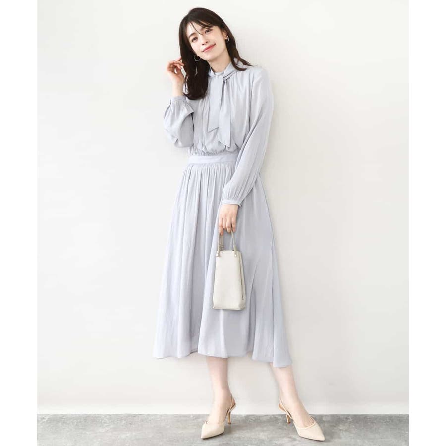 パウダーサテン ボウタイワンピース/洗える/WEB限定サイズあり