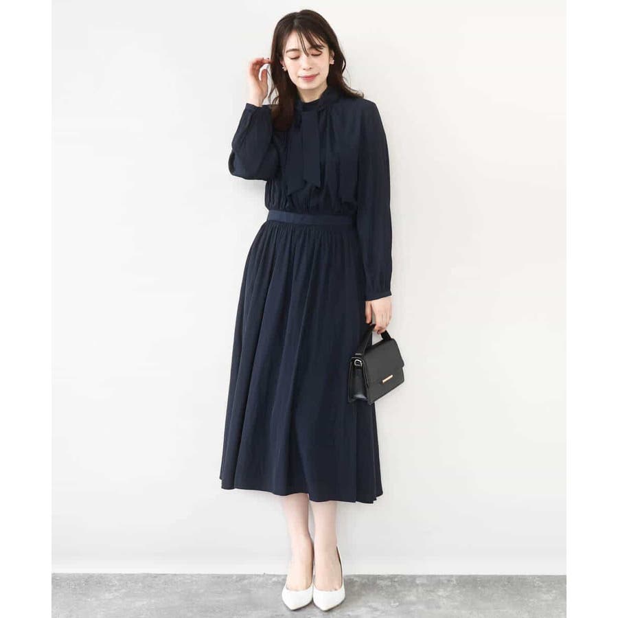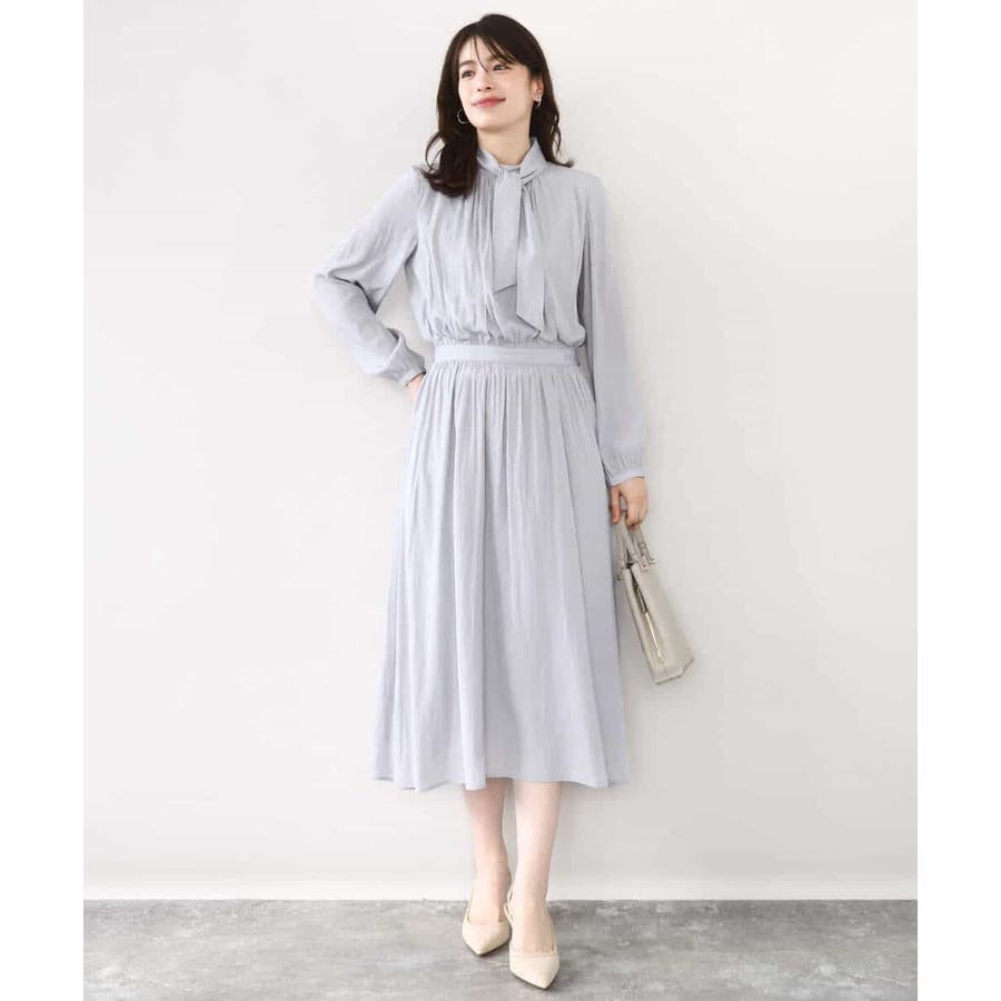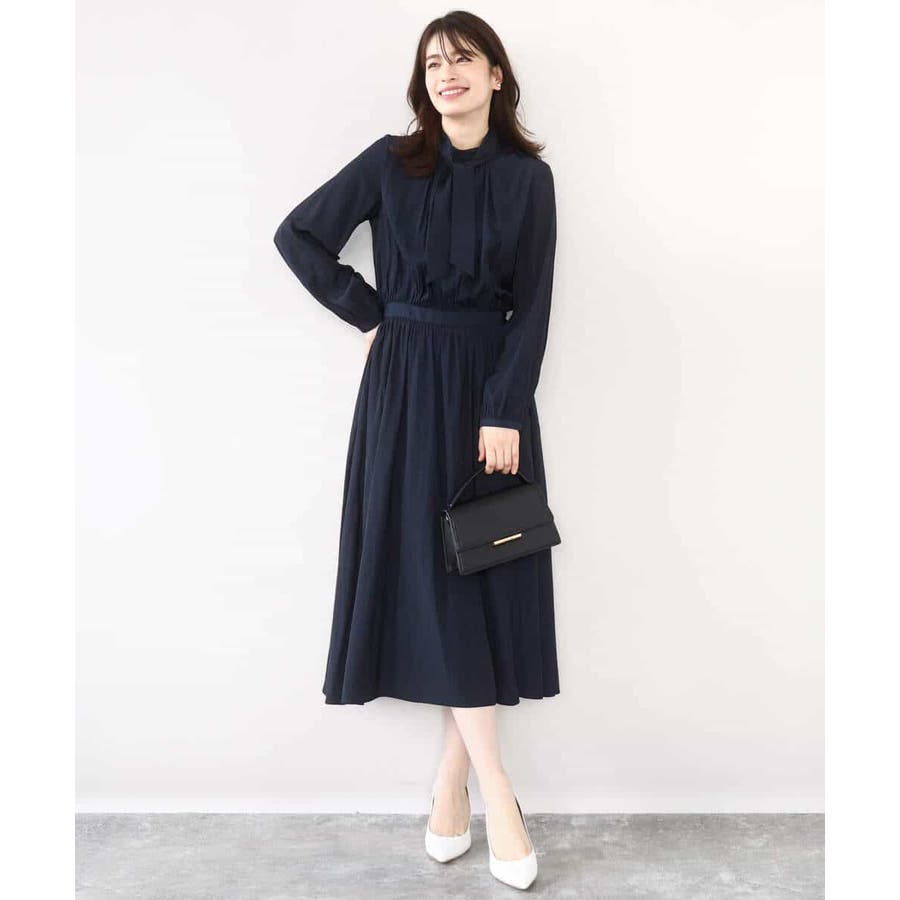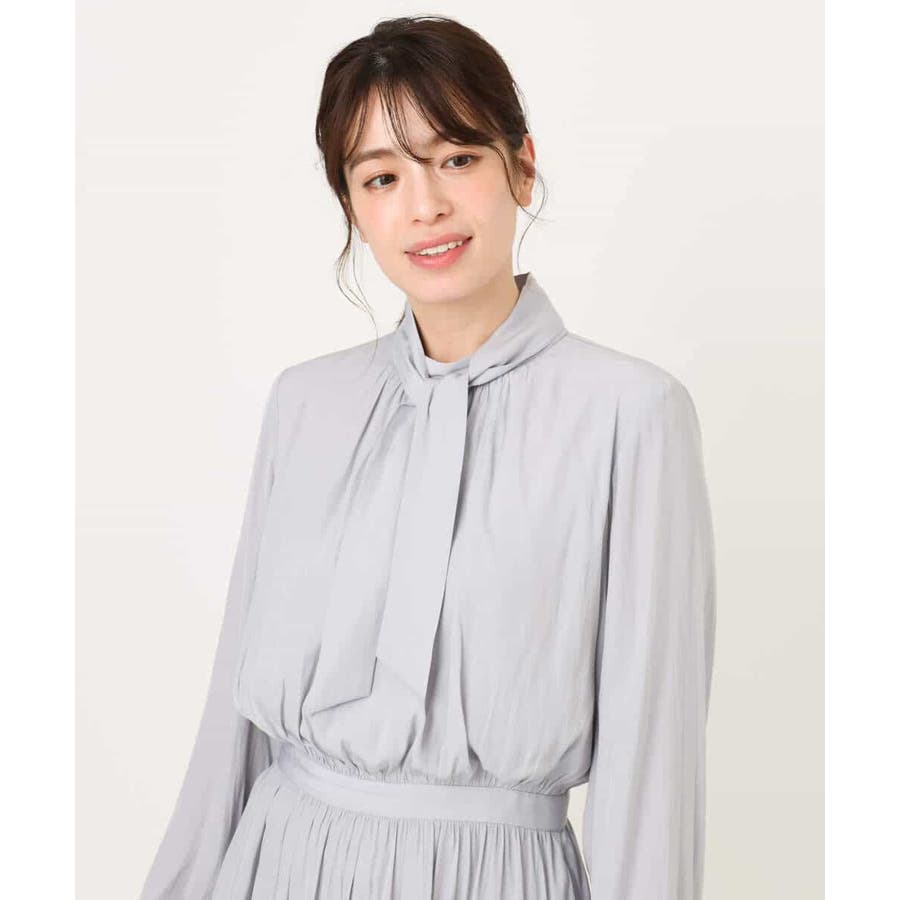 パウダーサテン ボウタイワンピース/洗える/WEB限定サイズあり