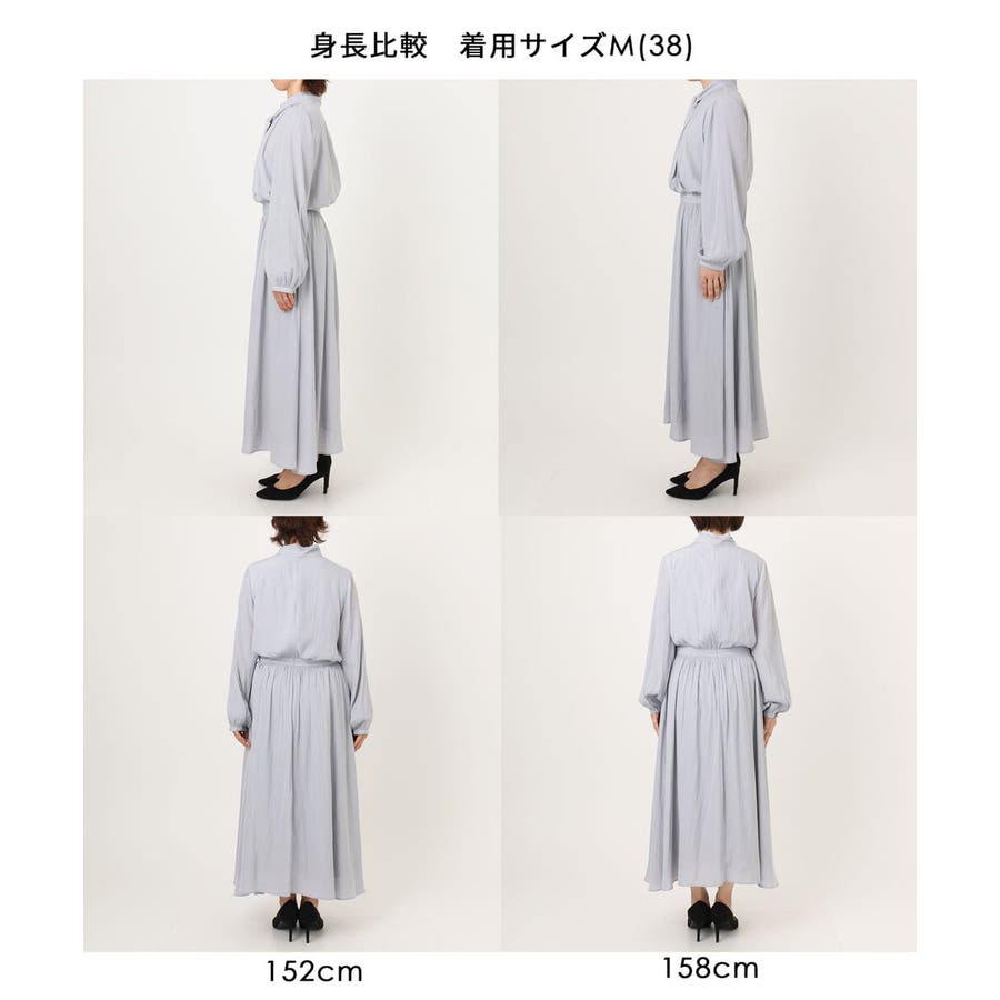 ボウタイデザインで一枚でも華やかに決まるワンピース。ボウタイは取り外し可能で、シンプルなバンドカラーワンピースとしても着こなせます。ウエスト部分はすっきりと、裾に向かってのフレアー分量は軽やかに広がるように仕上げました。