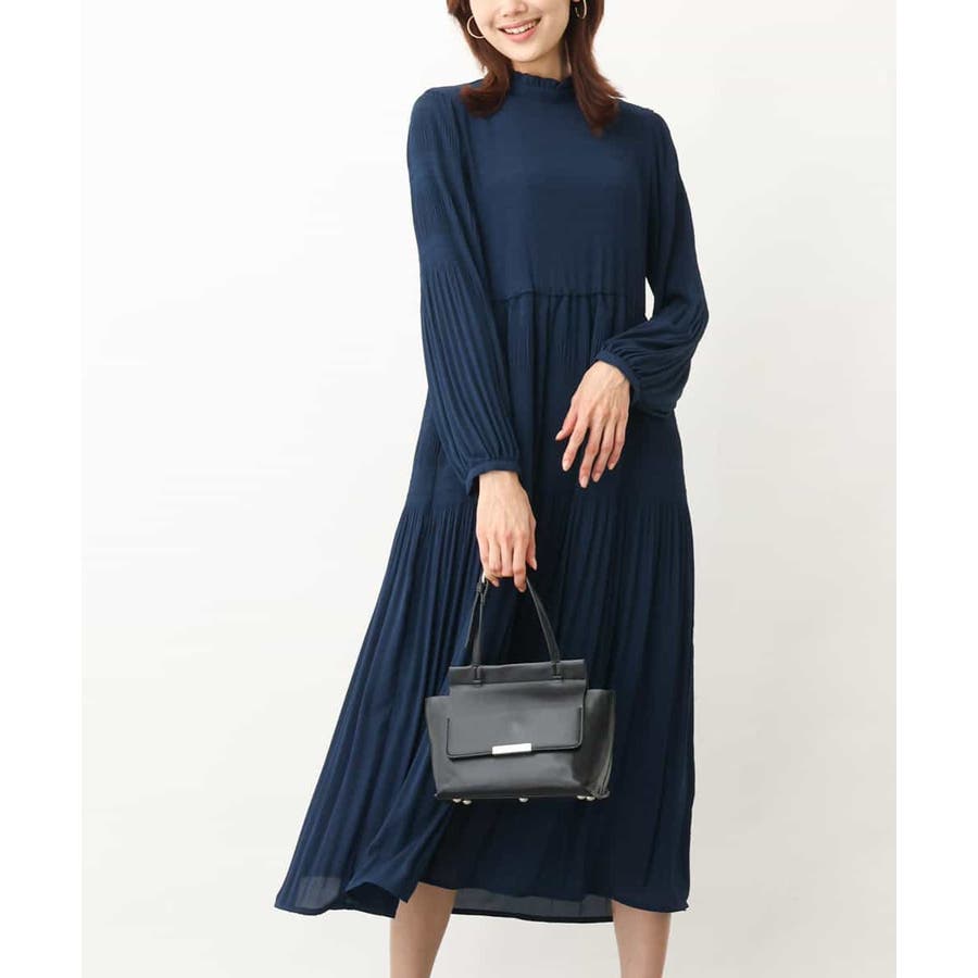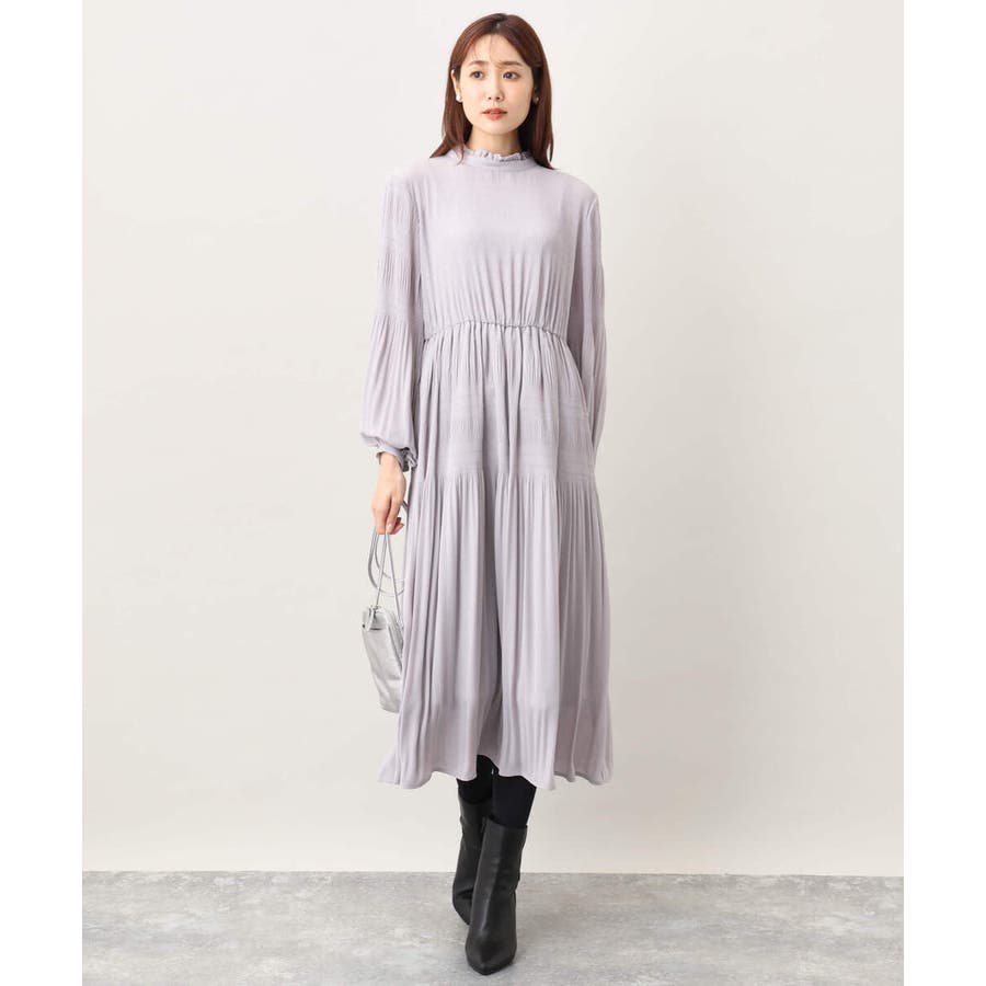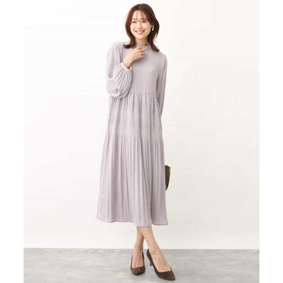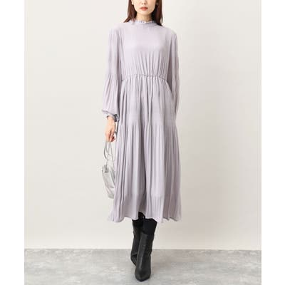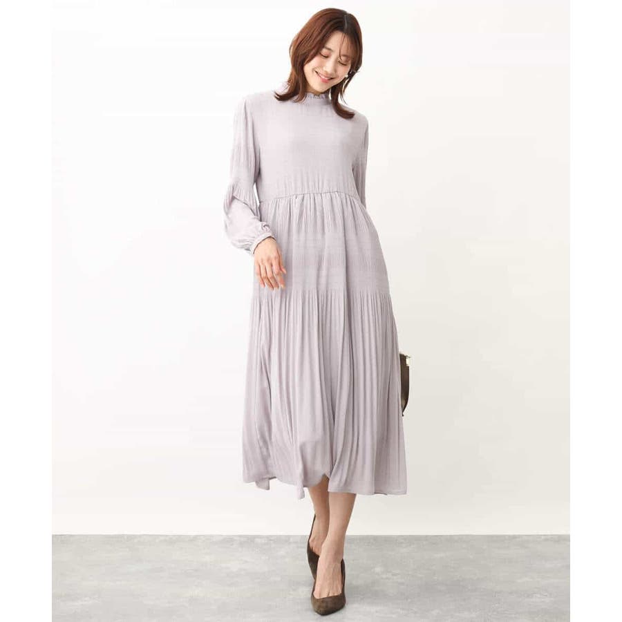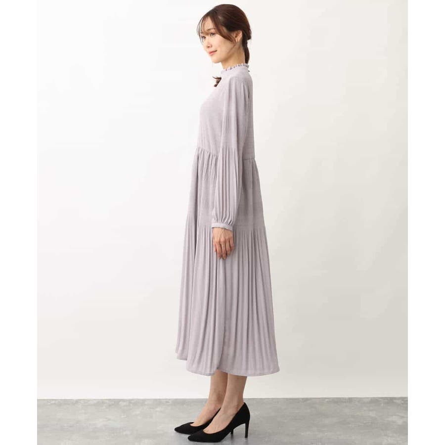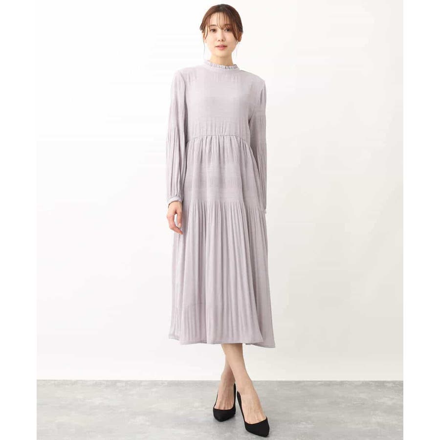 シフォンジョーゼットフリルネックプリーツワンピース/洗える