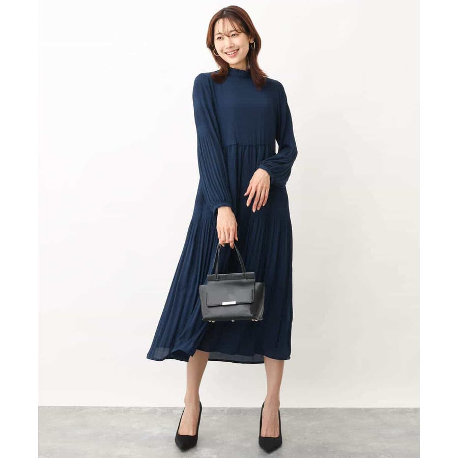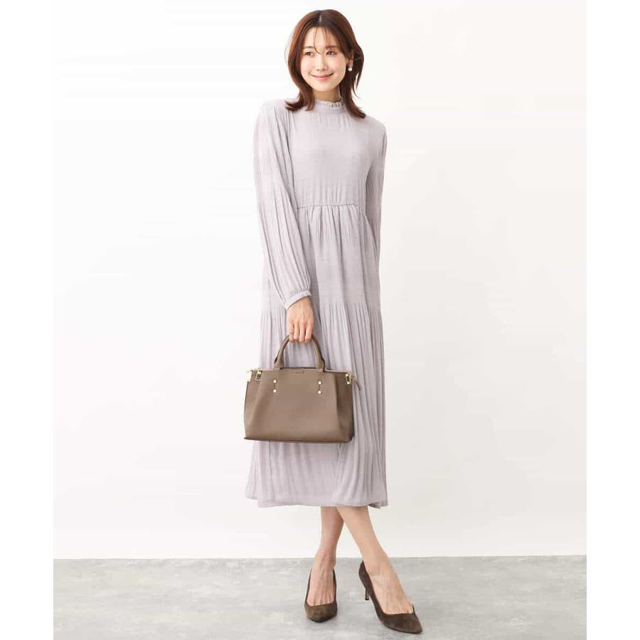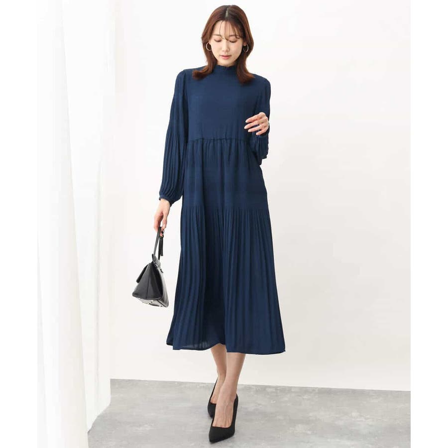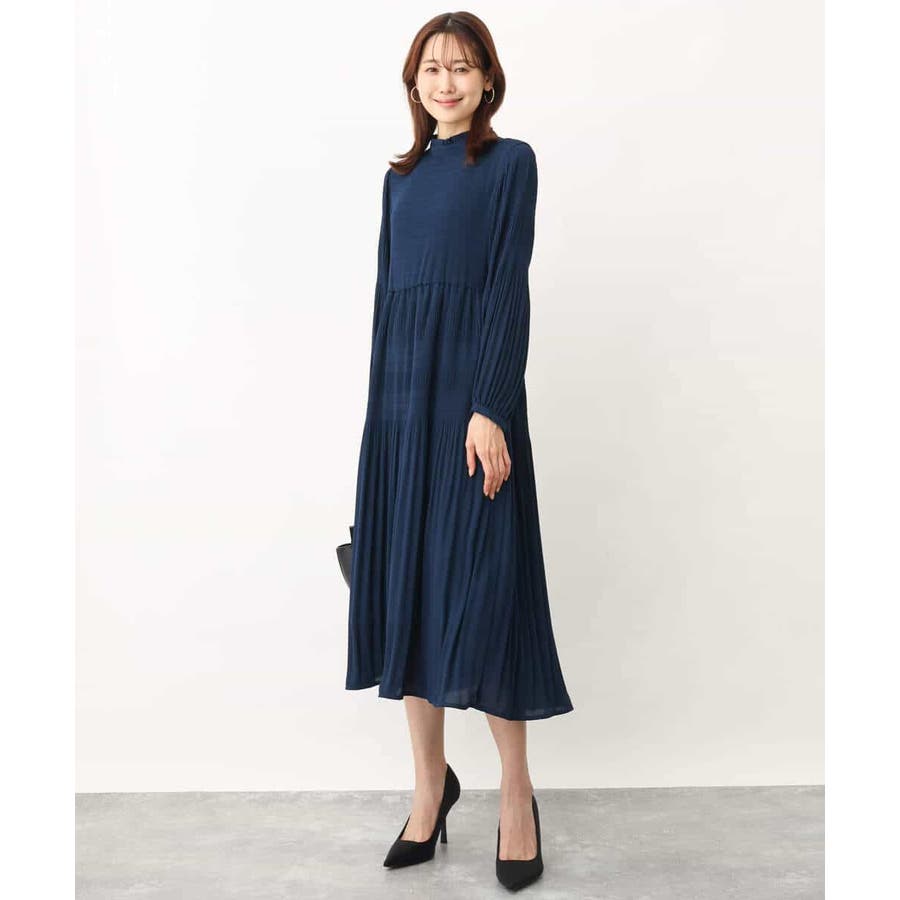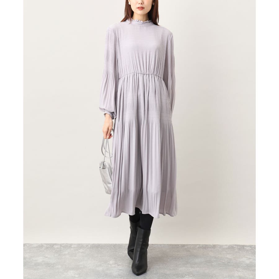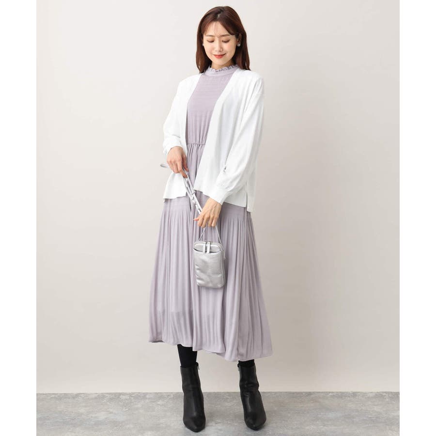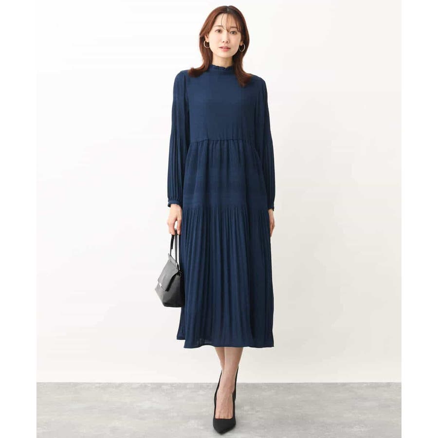 シフォンジョーゼットフリルネックプリーツワンピース/洗える