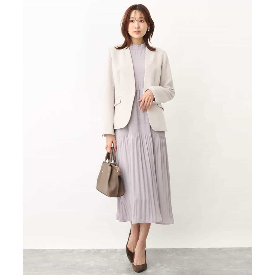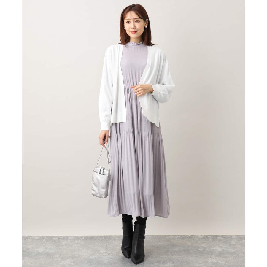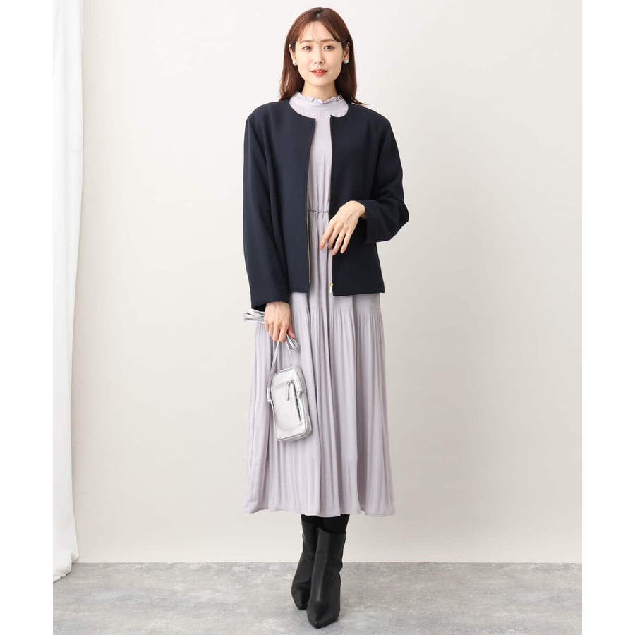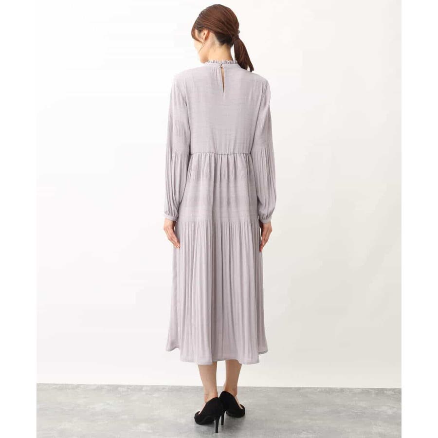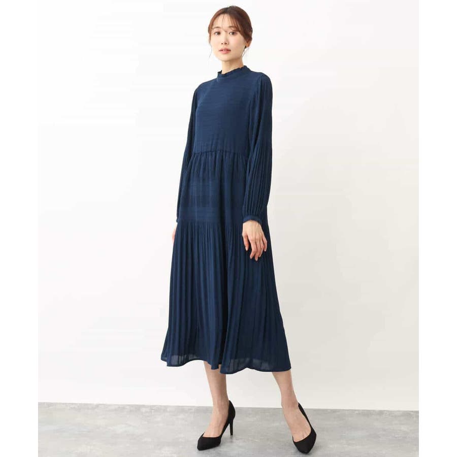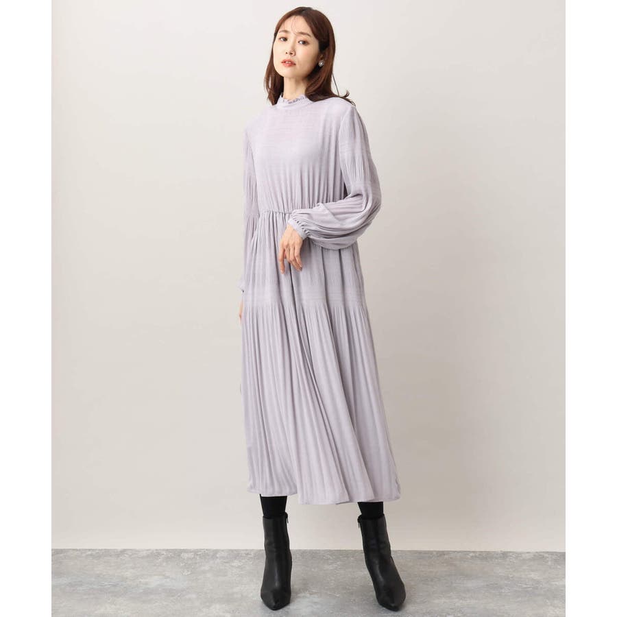 シフォンジョーゼットフリルネックプリーツワンピース/洗える