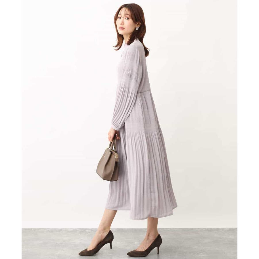 細かなプリーツが施されたシフォンジョーゼットの素材は上品な印象に。シワになりにくくご自宅で洗えるイージーケアも嬉しい。