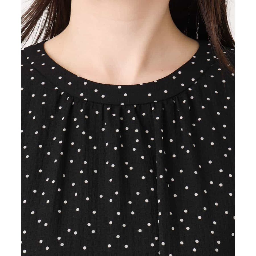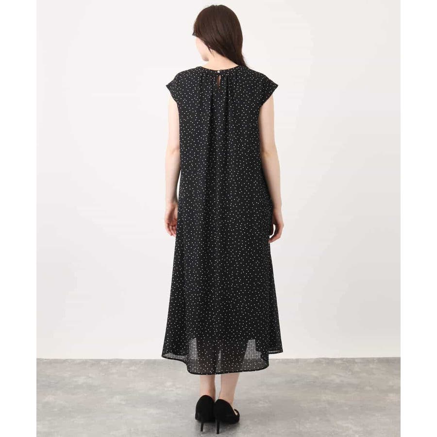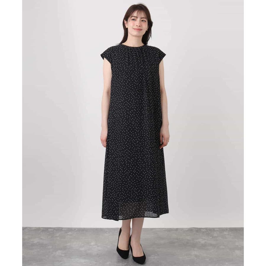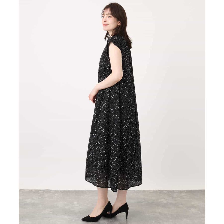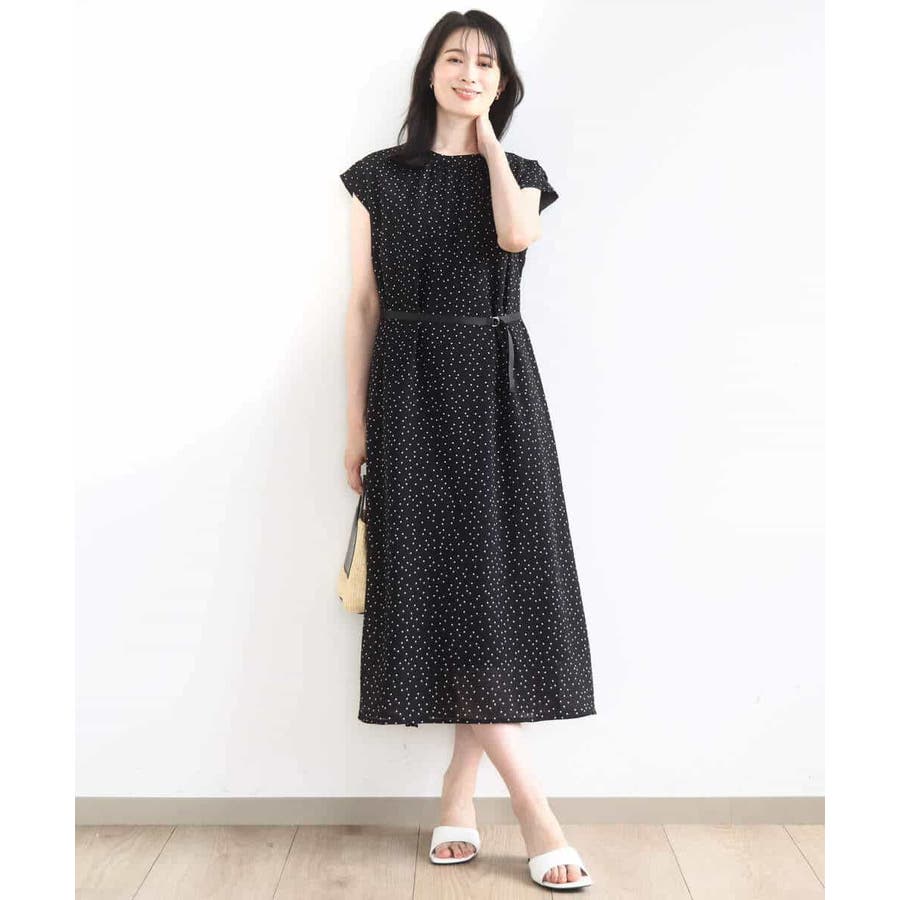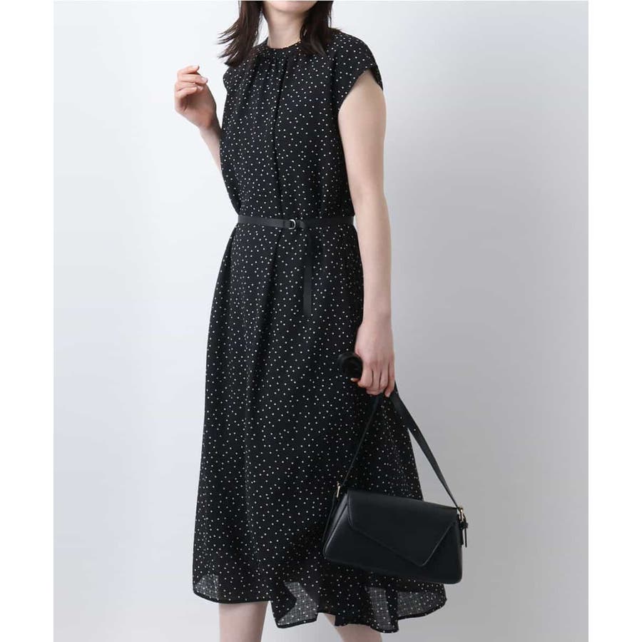 小ぶりなランダムドットの柄が女性らしい印象のワンピース。甘すぎないブラックで大人も着こなしやすく仕上げました。ウエストベルト付きで、ベルトの有無でシルエットの変化を楽しめます。ベルト無しでもきれいなAラインシルエットで着こなしやすい。