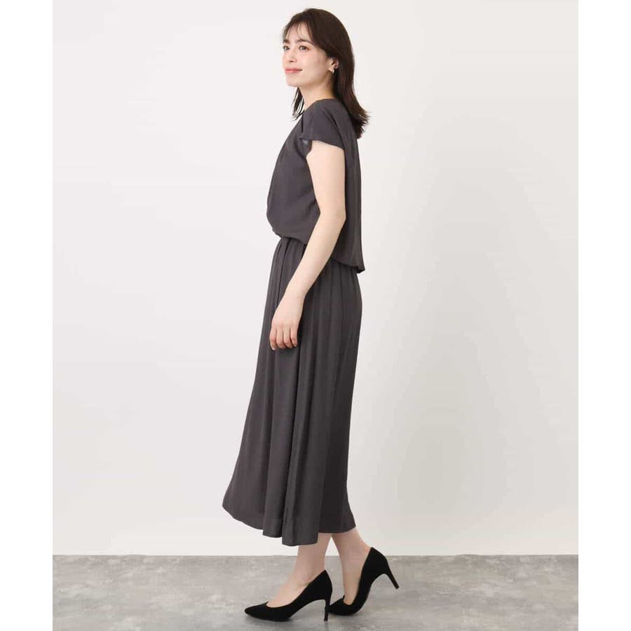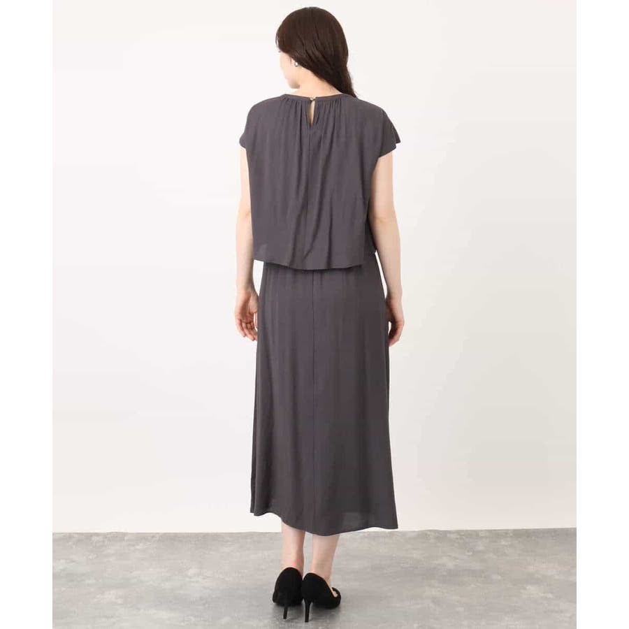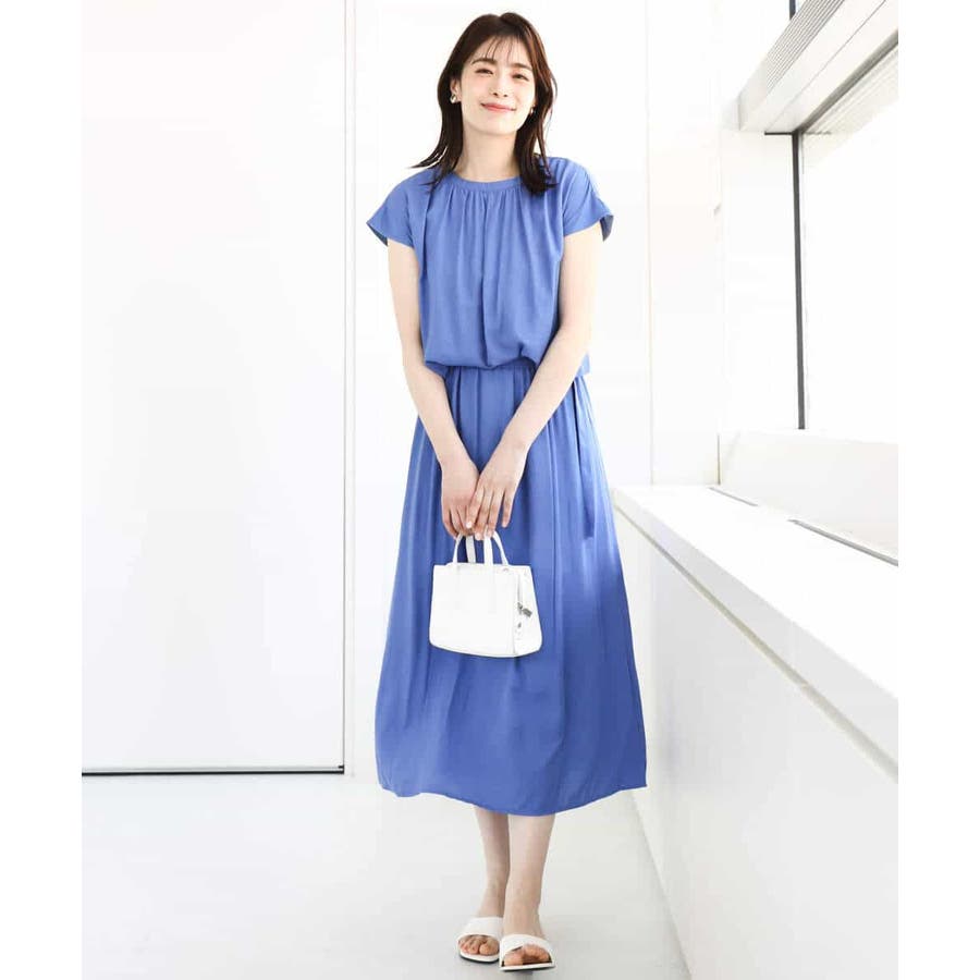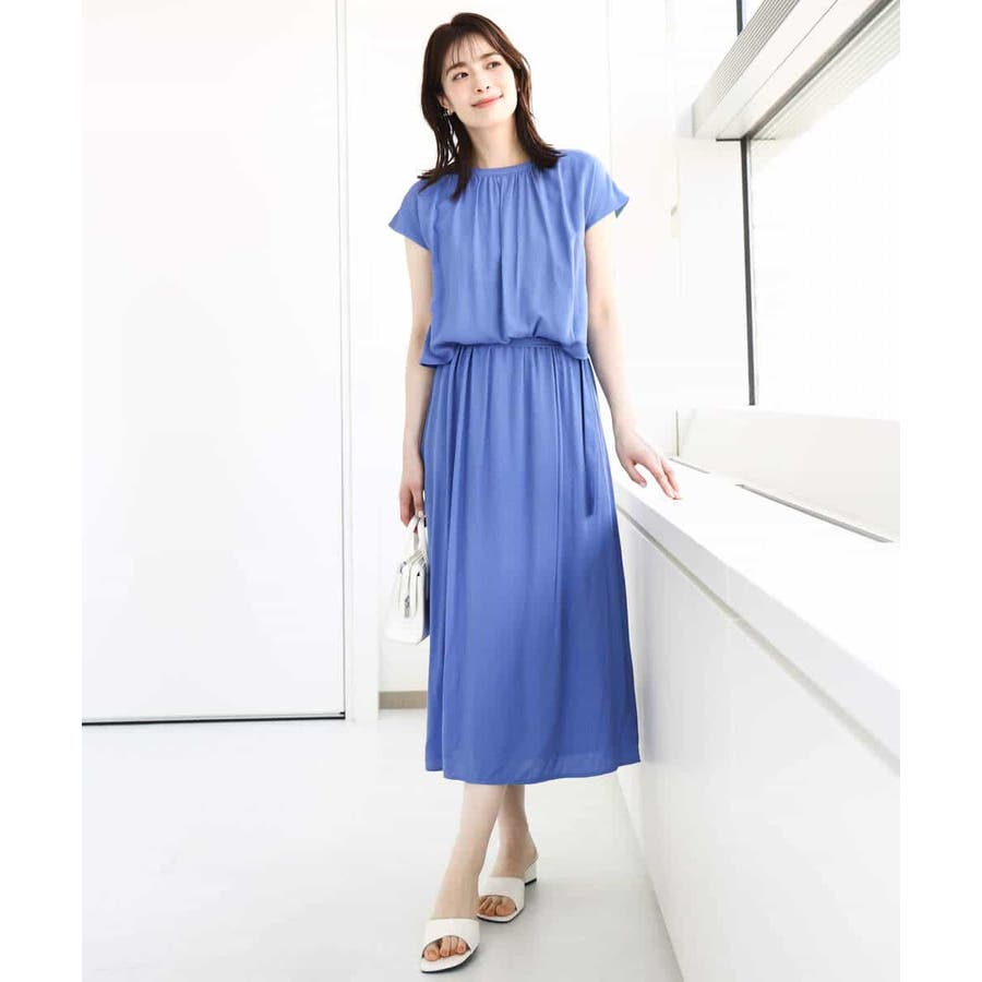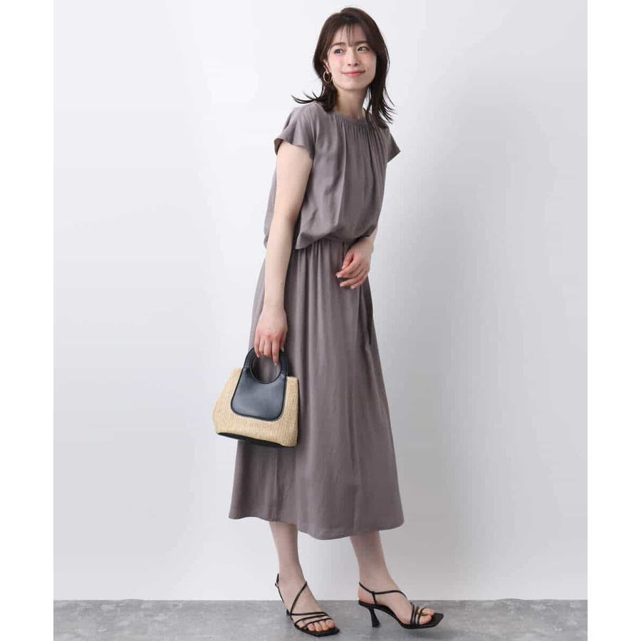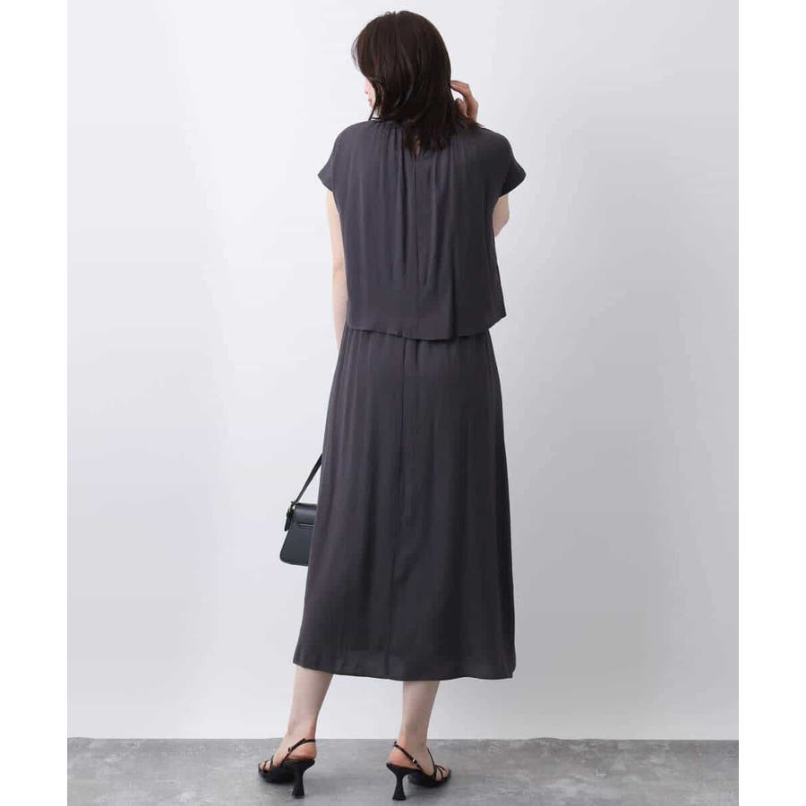 一見セパレートのような見え感のワンピース。ウエスト部分のベルトがメリハリのあるシルエットを叶えてくれます。ネックやスカート部分にギャザーやタックを施し、ふんわりと女性らしいシルエットが魅力。