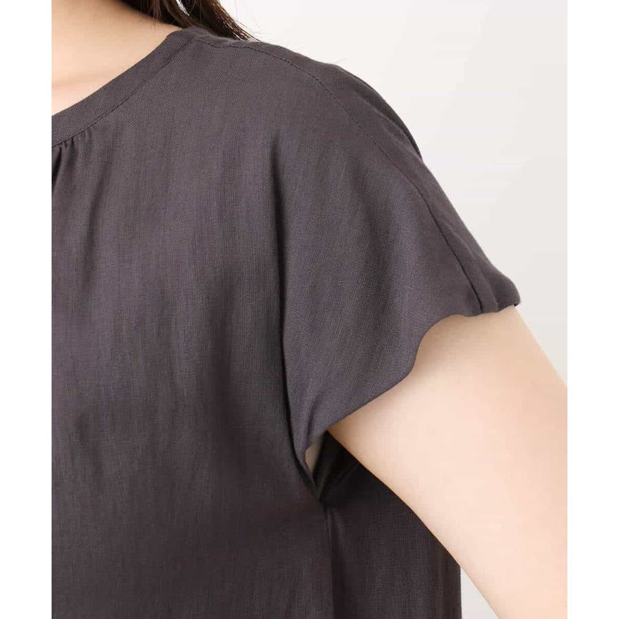 肩回りをすっきりと見せてくれるフレンチスリーブは、一枚でもカーディガンやジャケットなどの羽織りとも好相性。程よいデザイン性はこれ一枚でも寂しくならずに着こなせます。