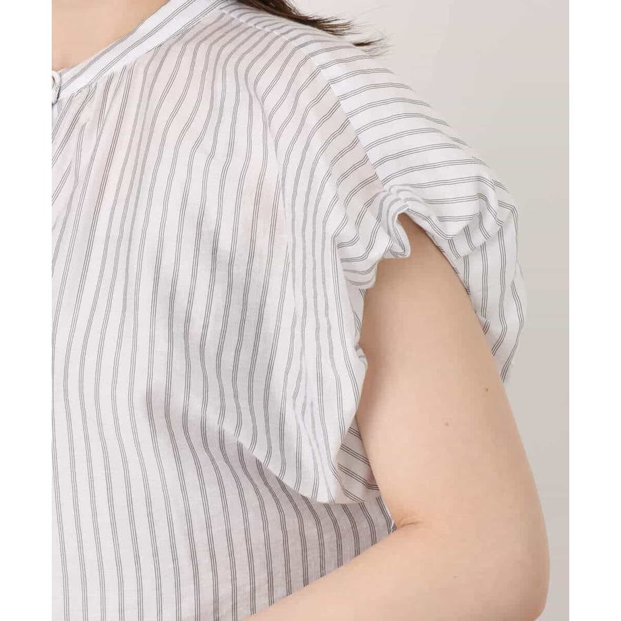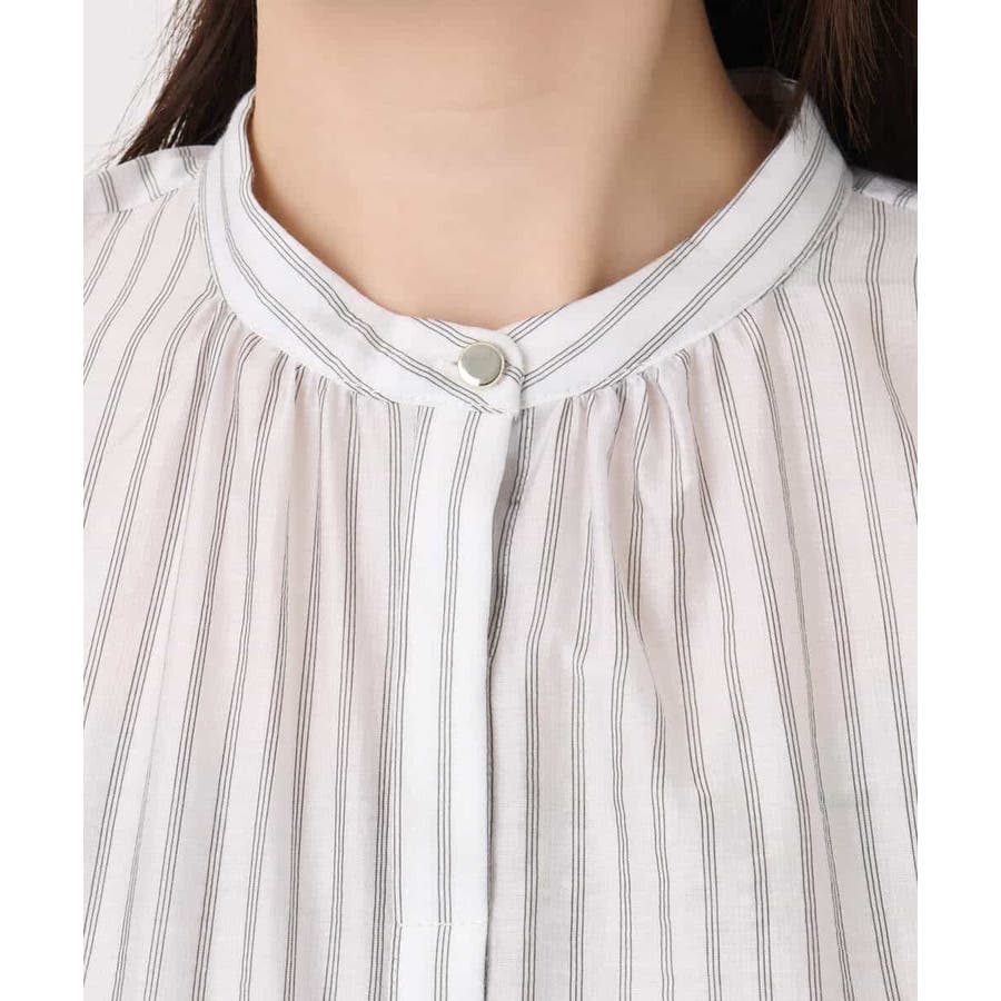 シアーなドビーストライプの素材を使用。微光沢の素材はややハリがありきれいめな印象で着こなせます。