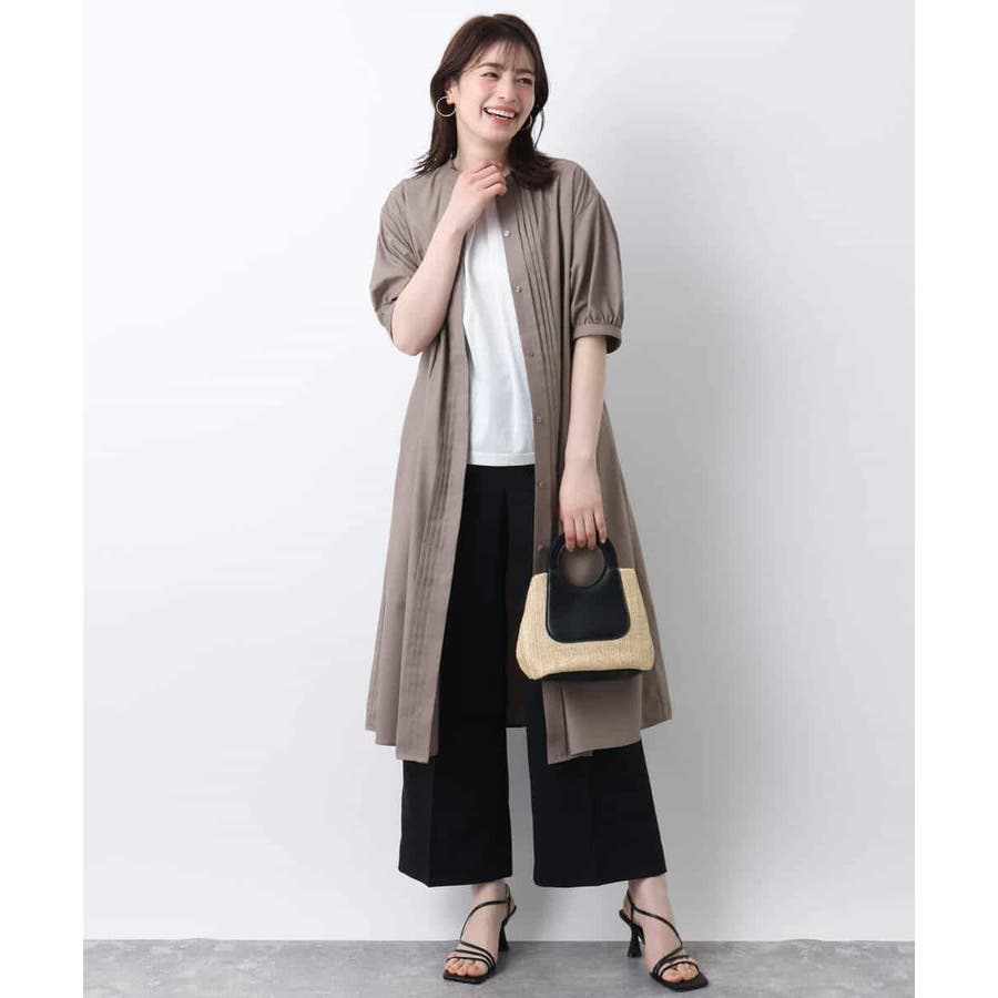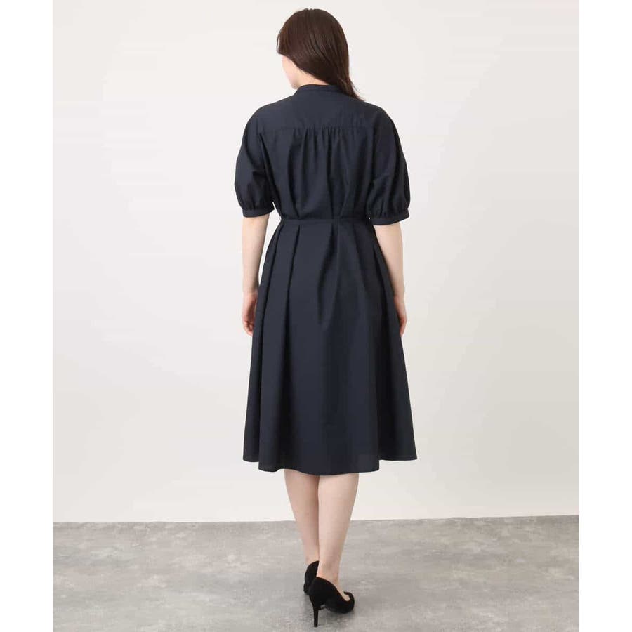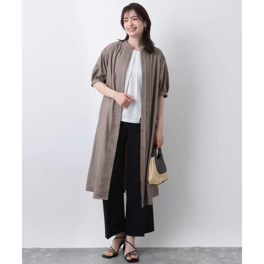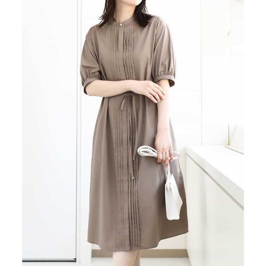 フロントのピンタックがアクセントの前開きタイプのワンピース。比翼仕立てですっきりと仕上げました。