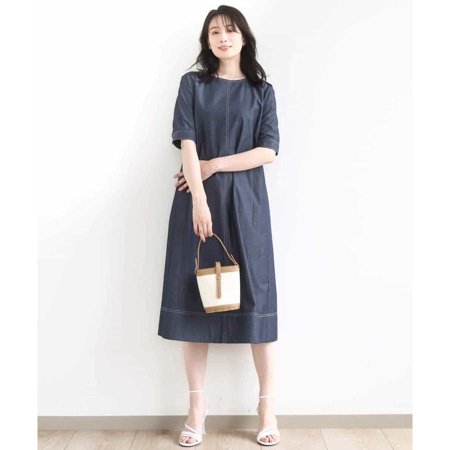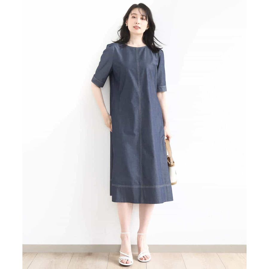 上品に着こなすデニムライクワンピース