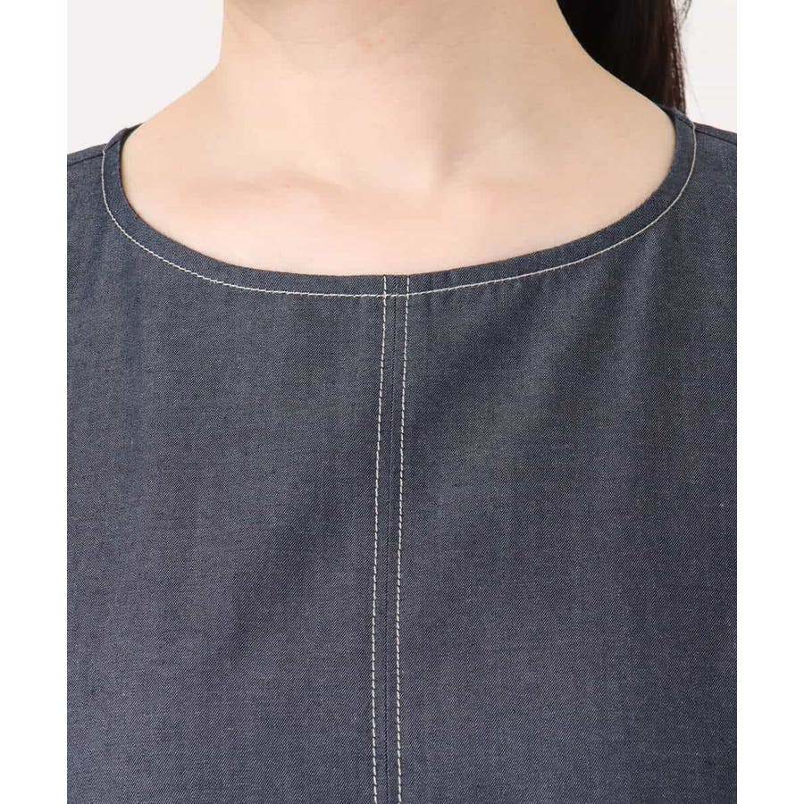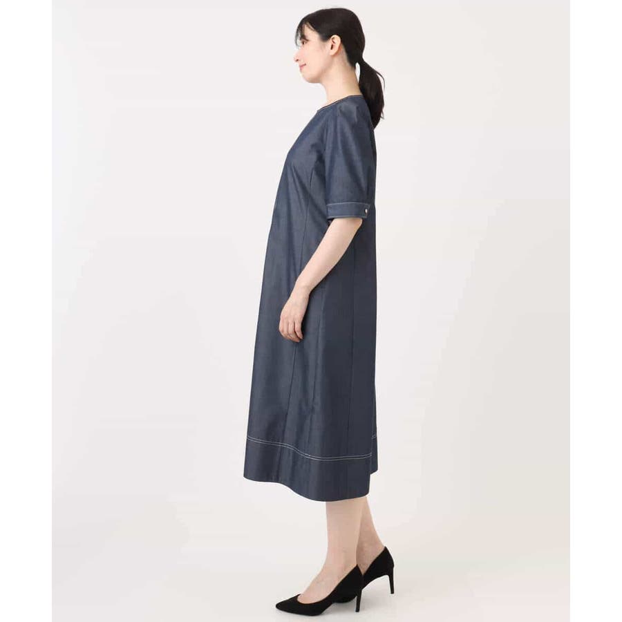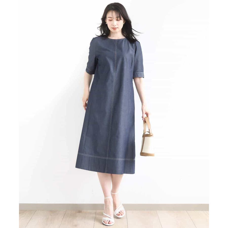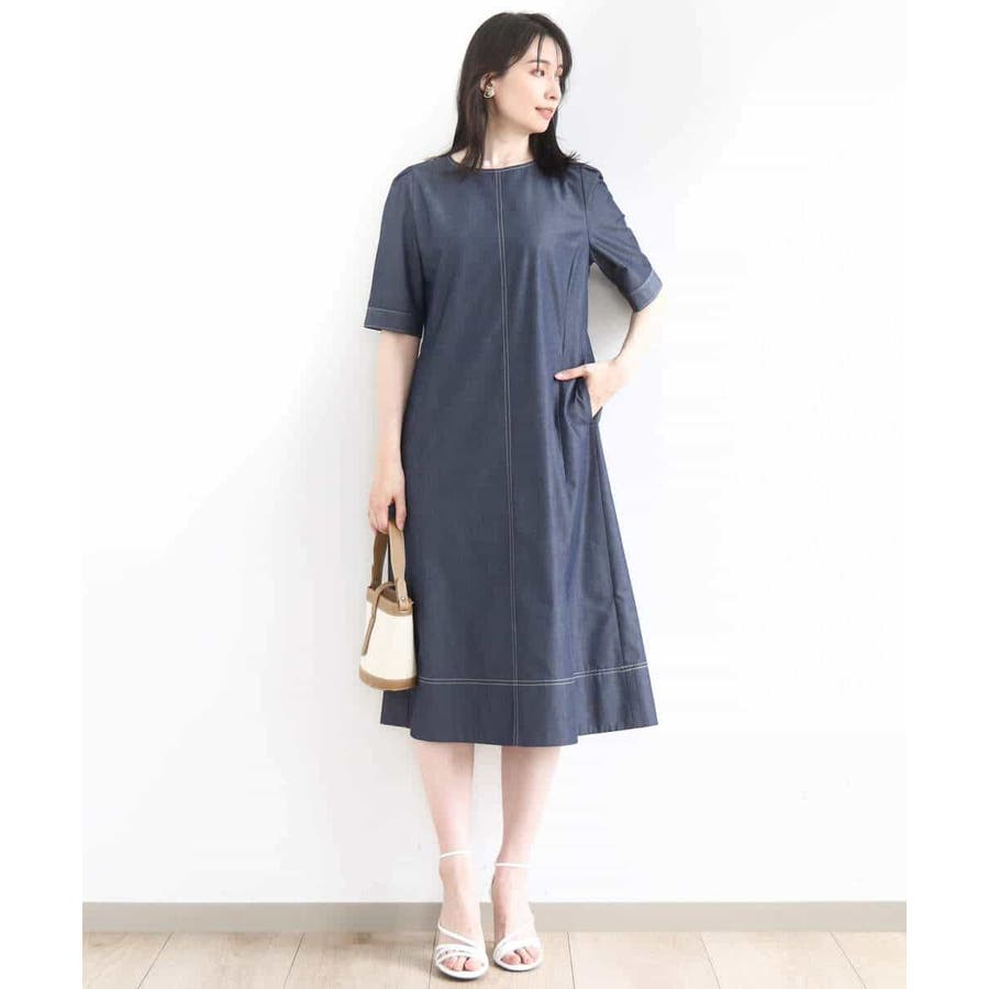 配色ステッチデニムライクワンピース/UVカット/洗える/WEB限定サイズあり