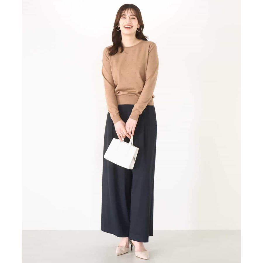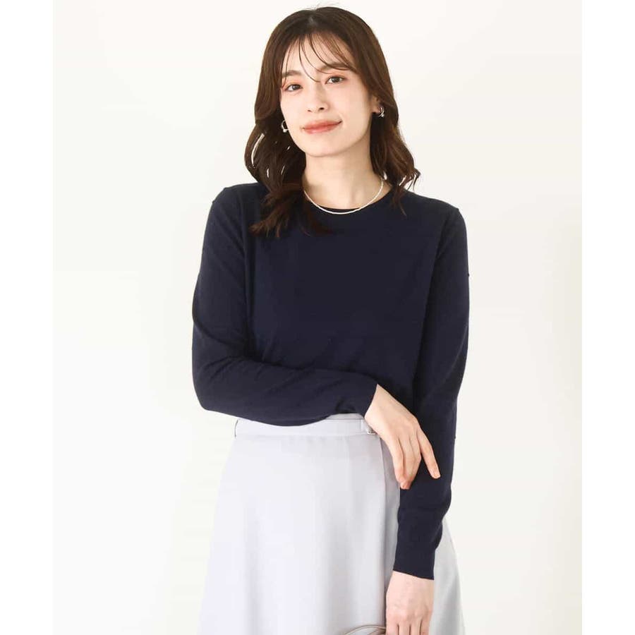 程良くコンパクトでシンプルなシルエットの長袖ニットはボトムを選ばない優れもの。スカートインできれいめも、パンツにアウトでカジュアルも様々な着こなしを楽しめます。