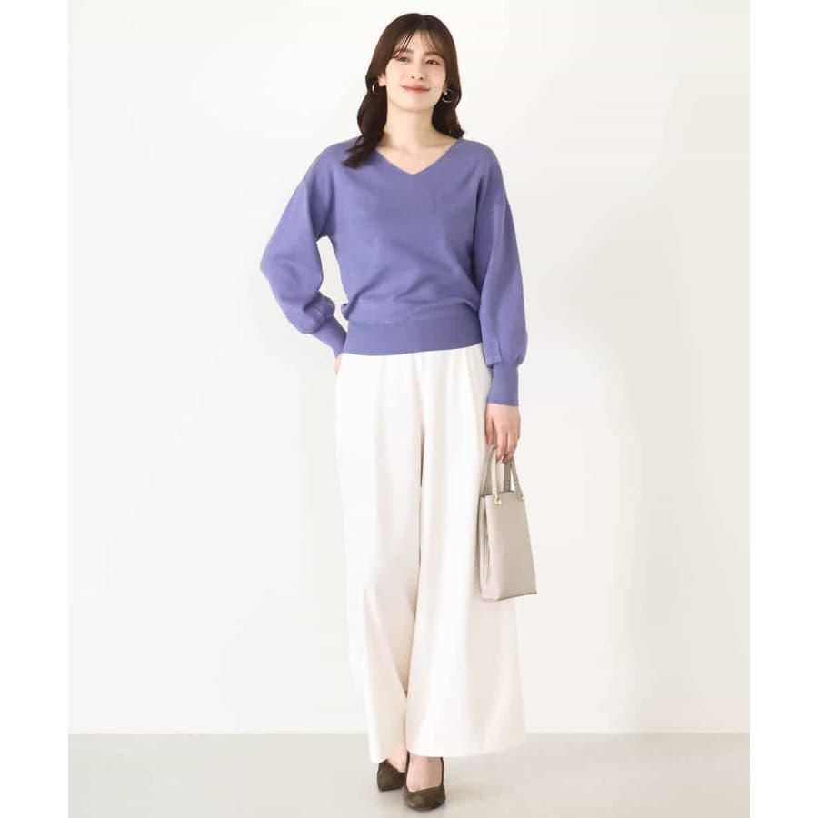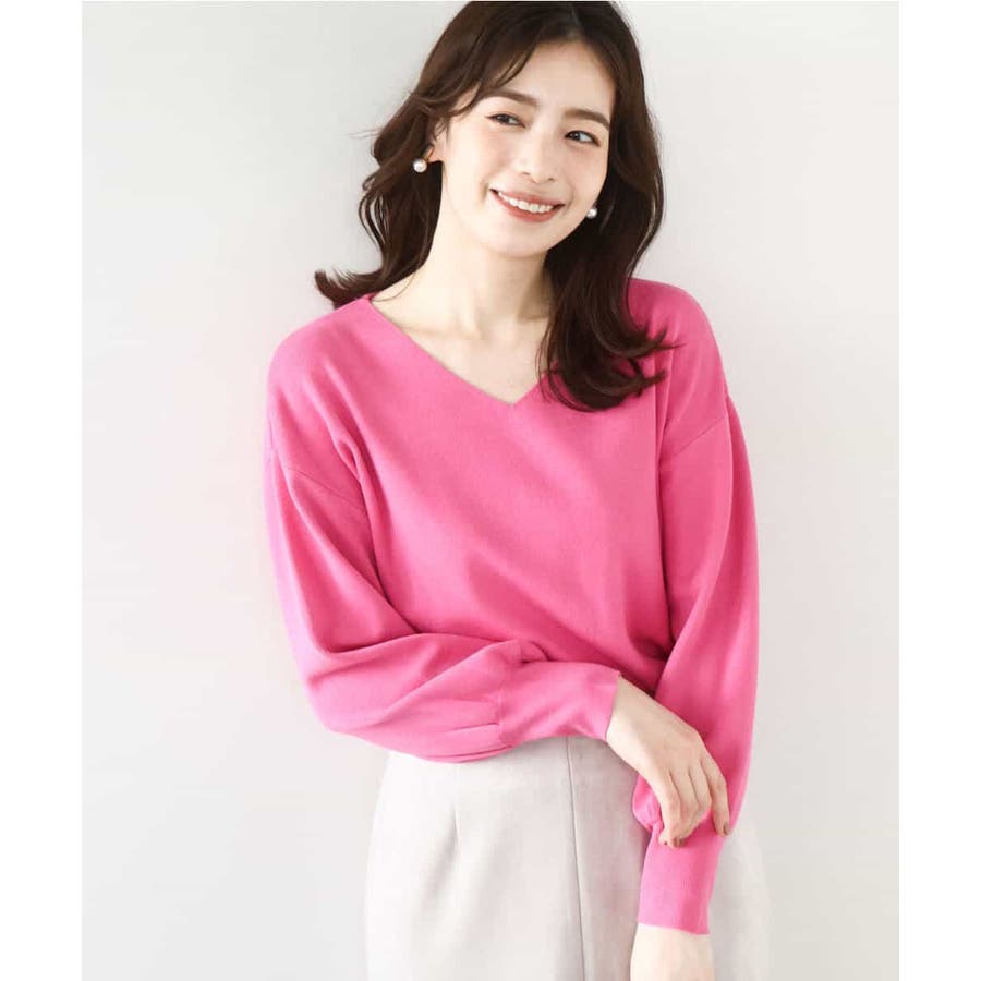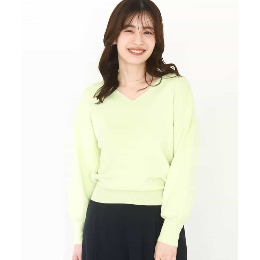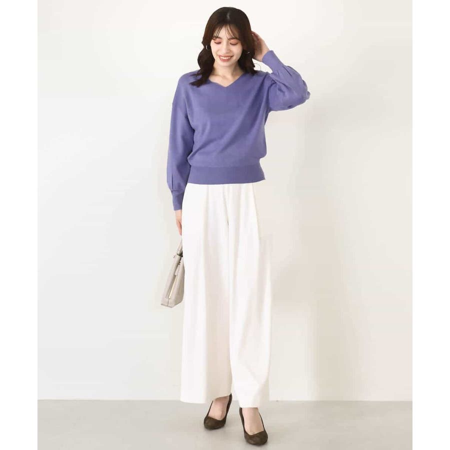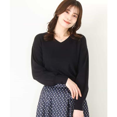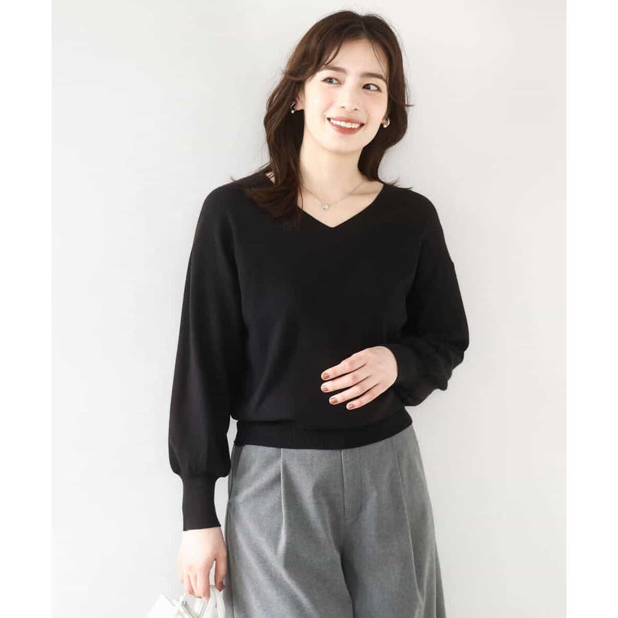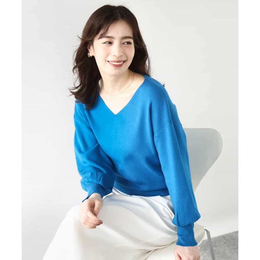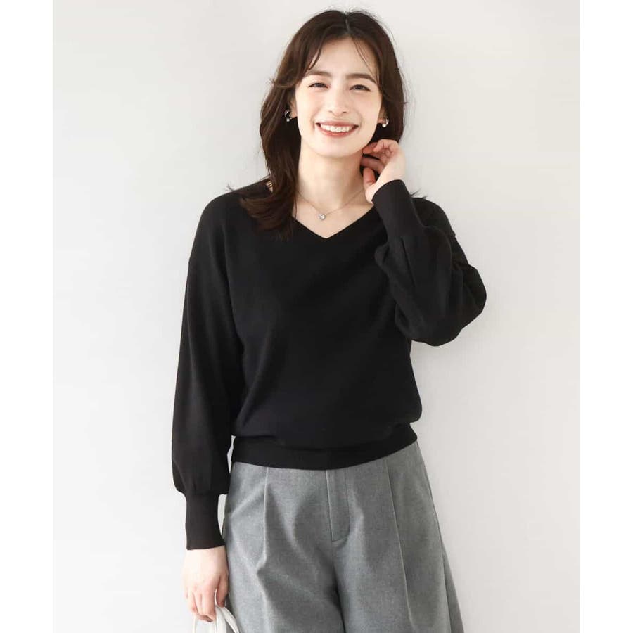 すっきりとしたVネックの定番ニット。衿ぐりが開きすぎないVネックはデコルテをきれいに見せてくれながらも上品さをキープしてくれます。コンパクトなサイズ感が使い勝手の良い一枚です。