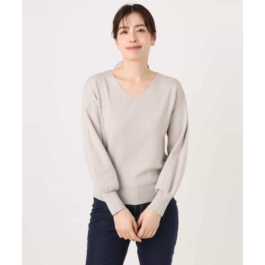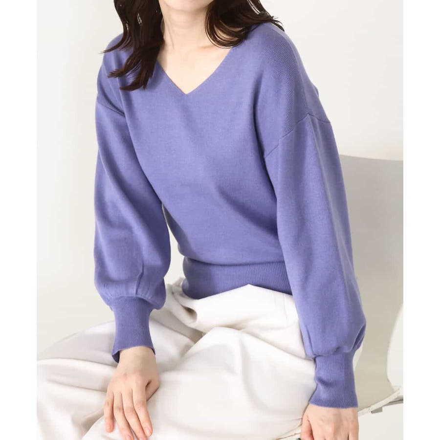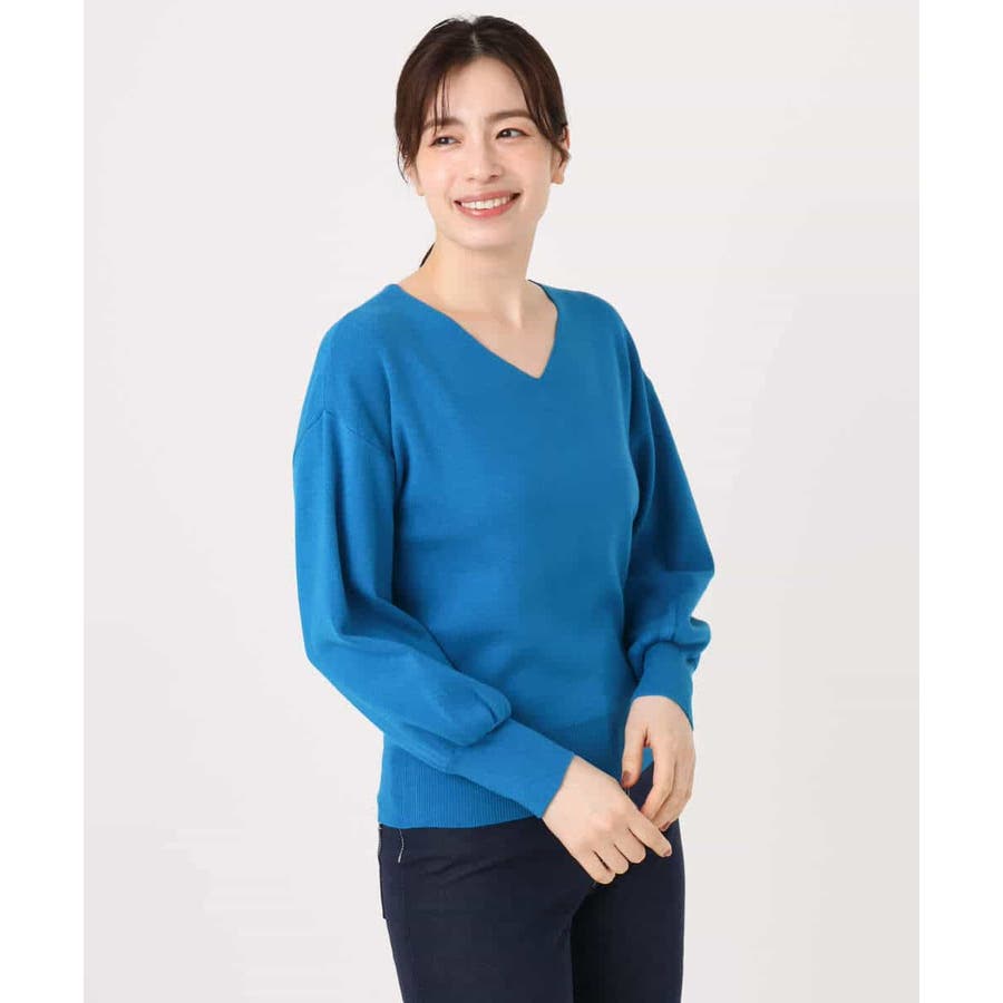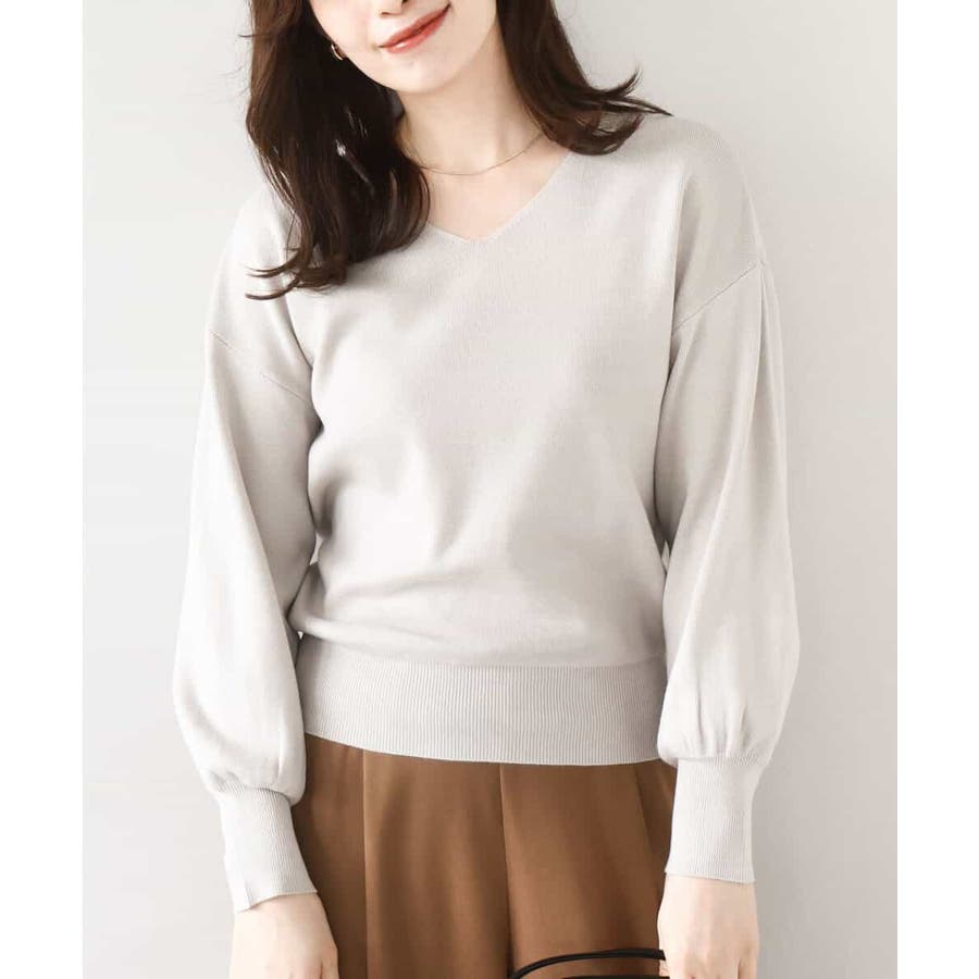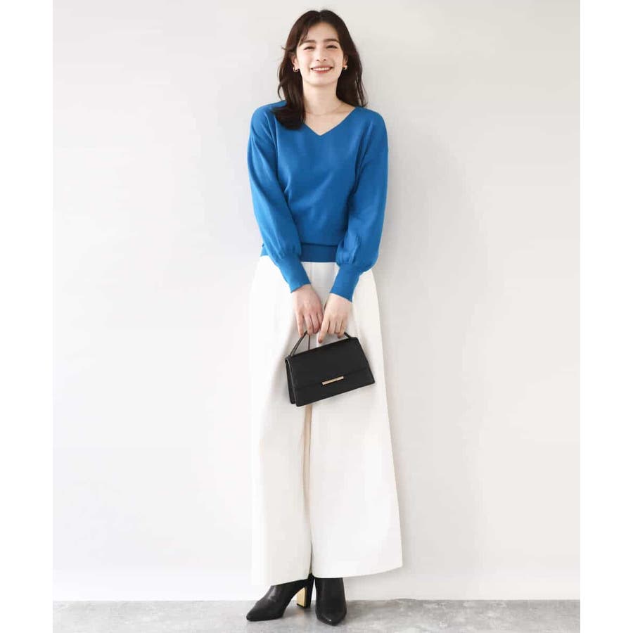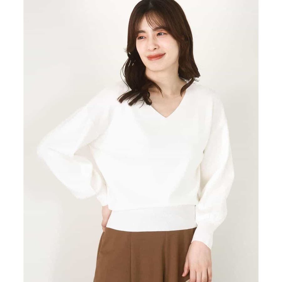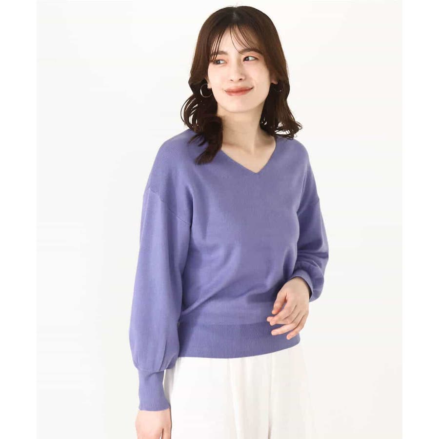 すっきりとしたVネックの定番ニット。衿ぐりが開きすぎないVネックはデコルテをきれいに見せてくれながらも上品さをキープしてくれます。コンパクトなサイズ感が使い勝手の良い一枚です。