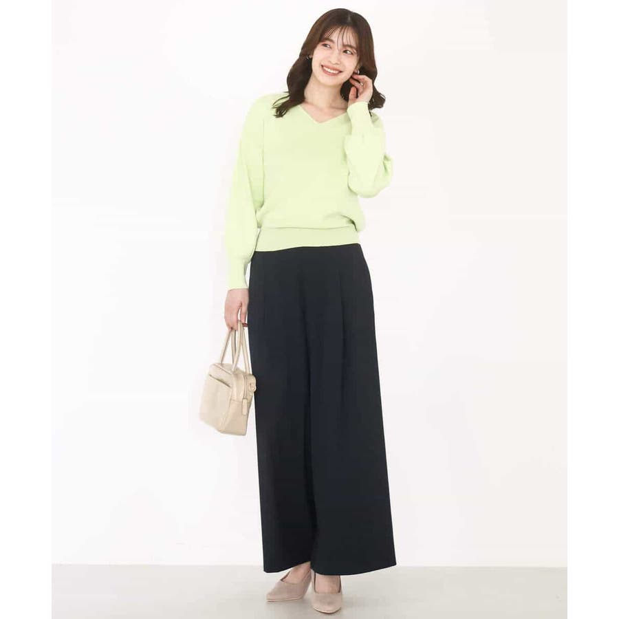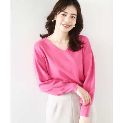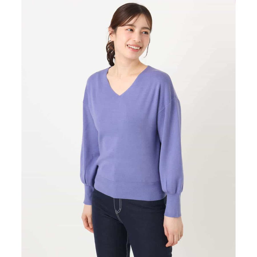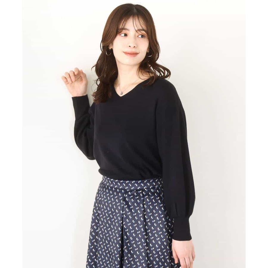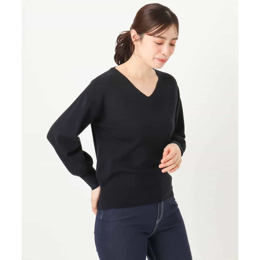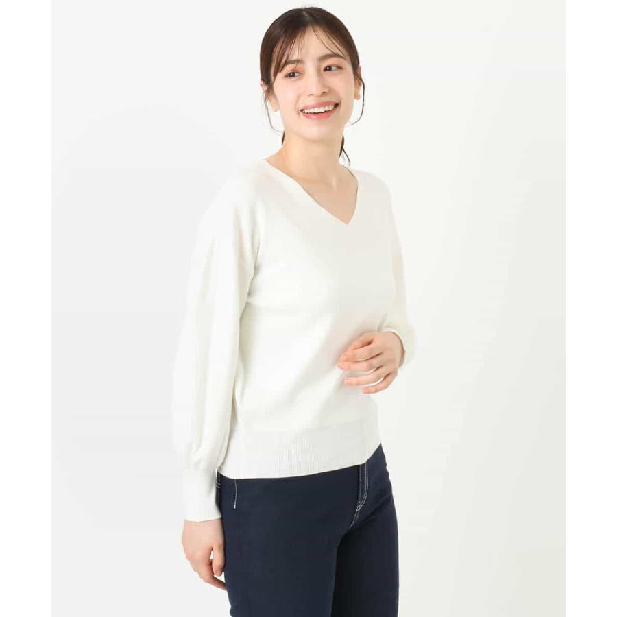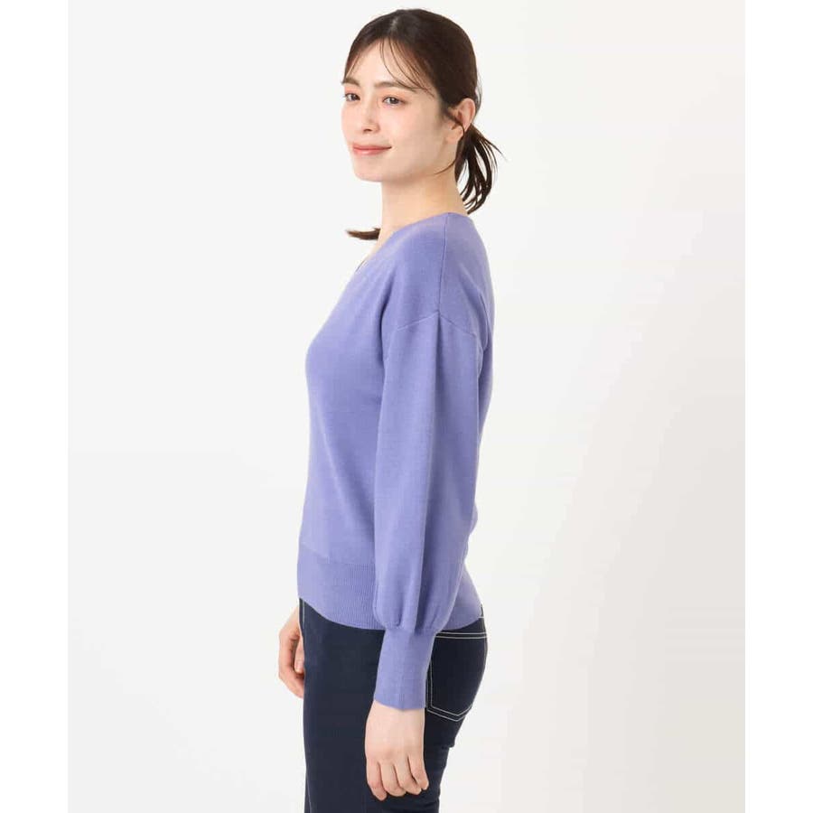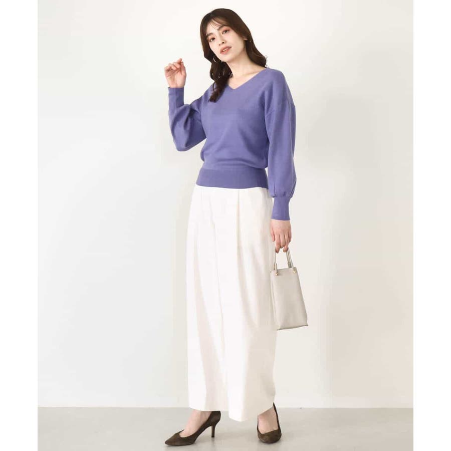 すっきりとしたVネックの定番ニット。衿ぐりが開きすぎないVネックはデコルテをきれいに見せてくれながらも上品さをキープしてくれます。コンパクトなサイズ感が使い勝手の良い一枚です。