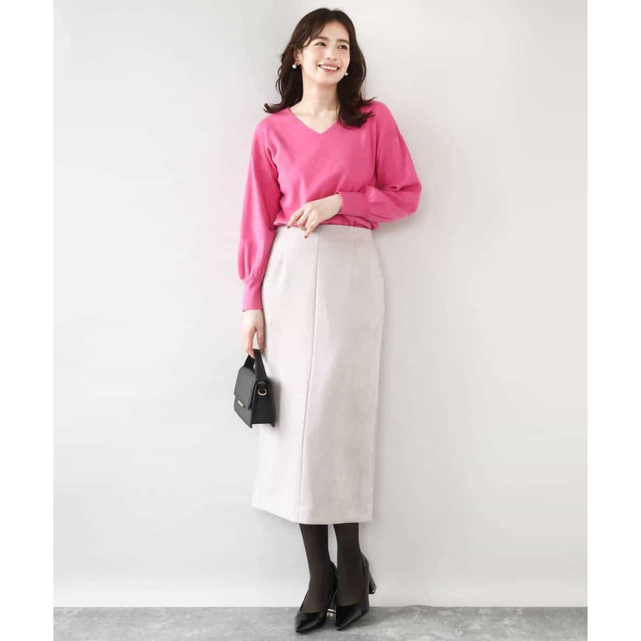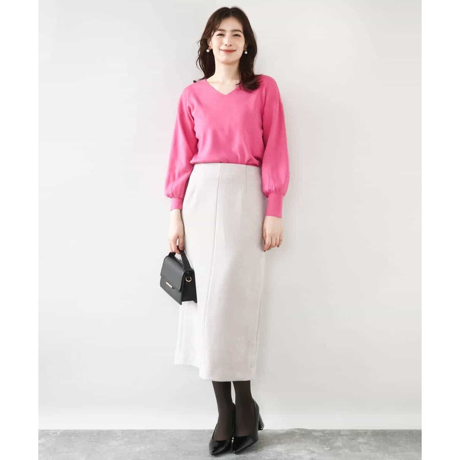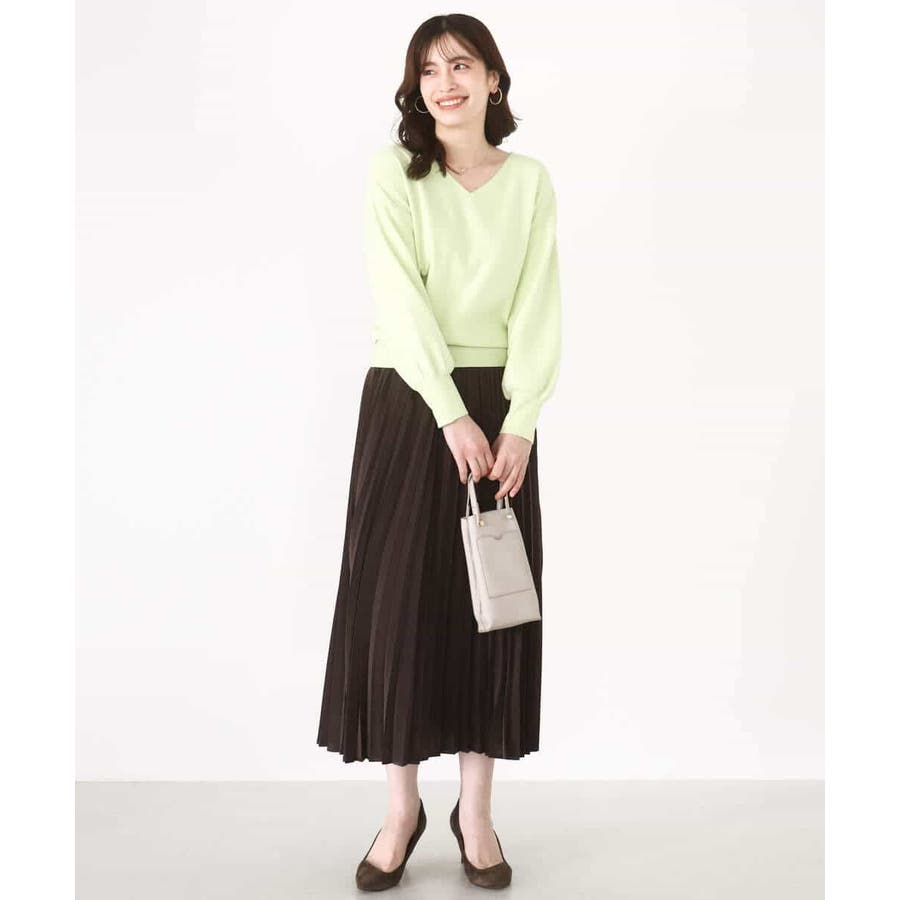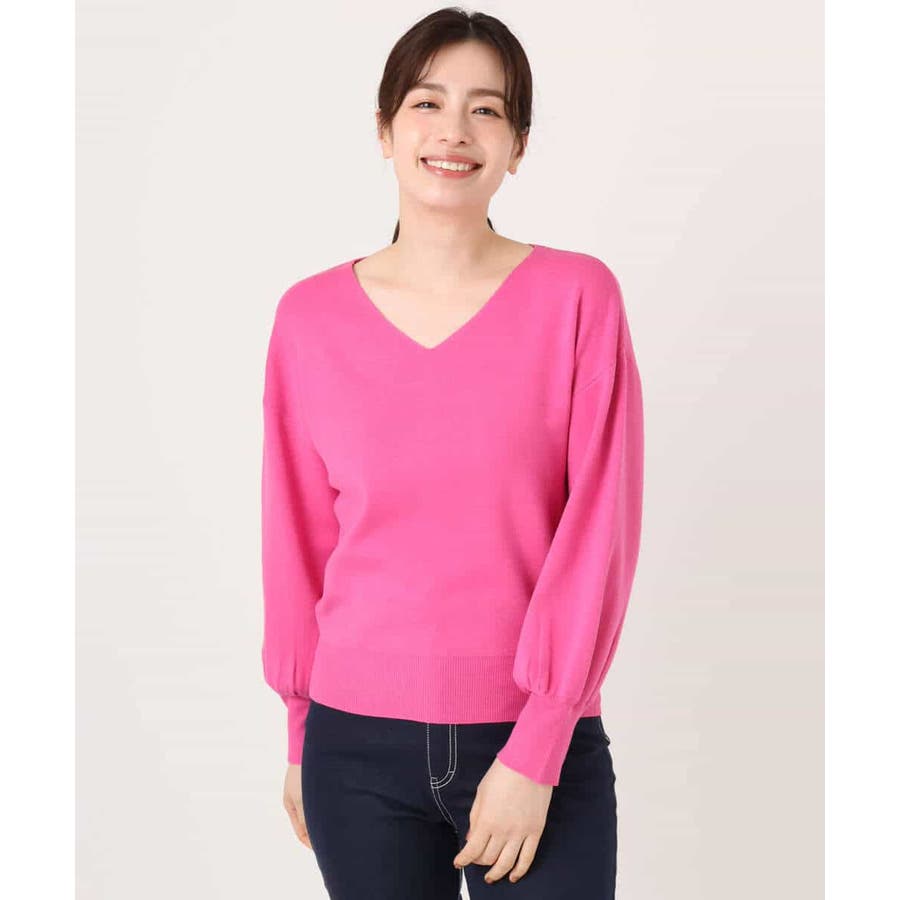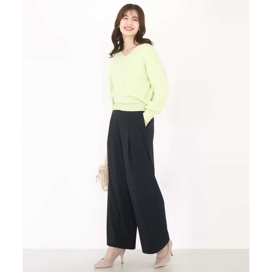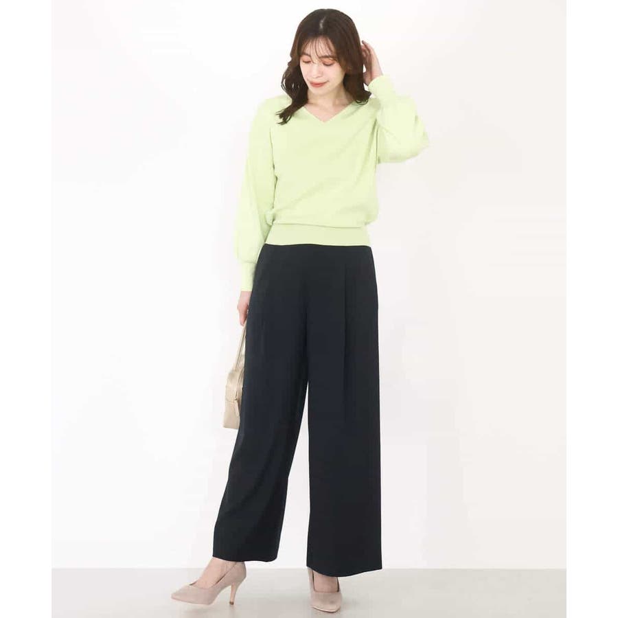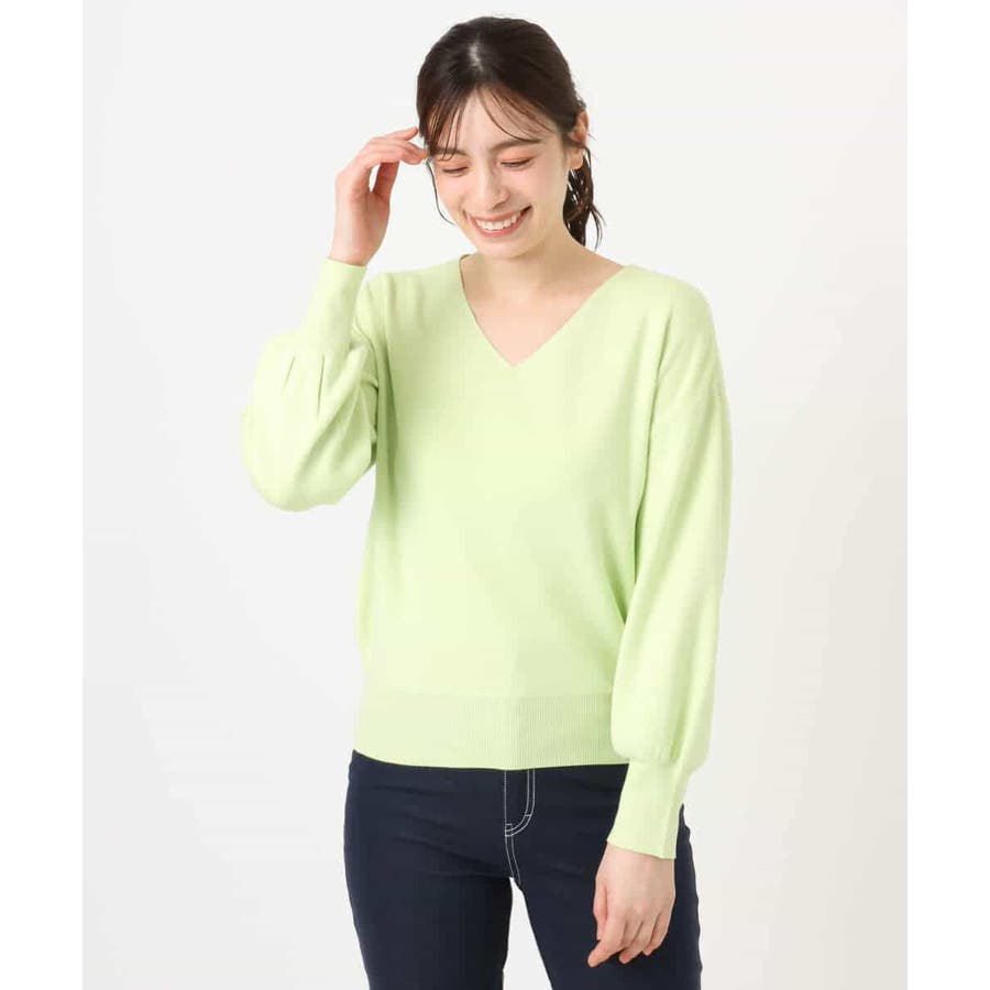 すっきりとしたVネックの定番ニット。衿ぐりが開きすぎないVネックはデコルテをきれいに見せてくれながらも上品さをキープしてくれます。コンパクトなサイズ感が使い勝手の良い一枚です。