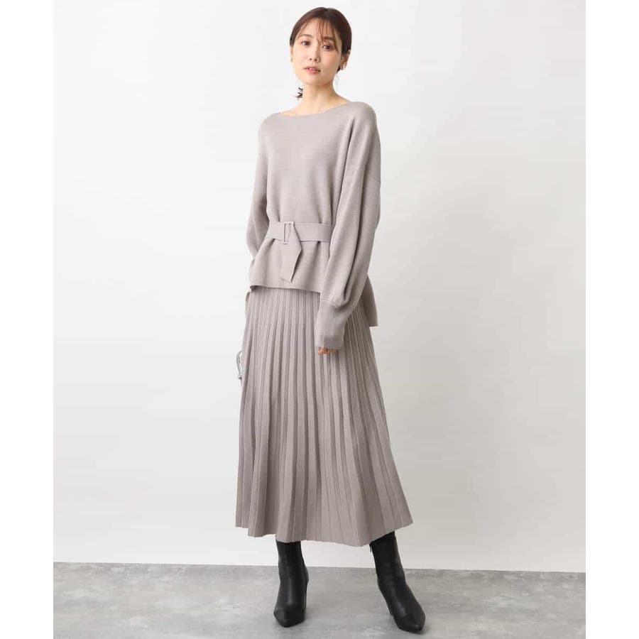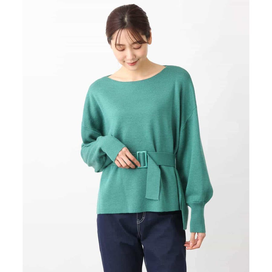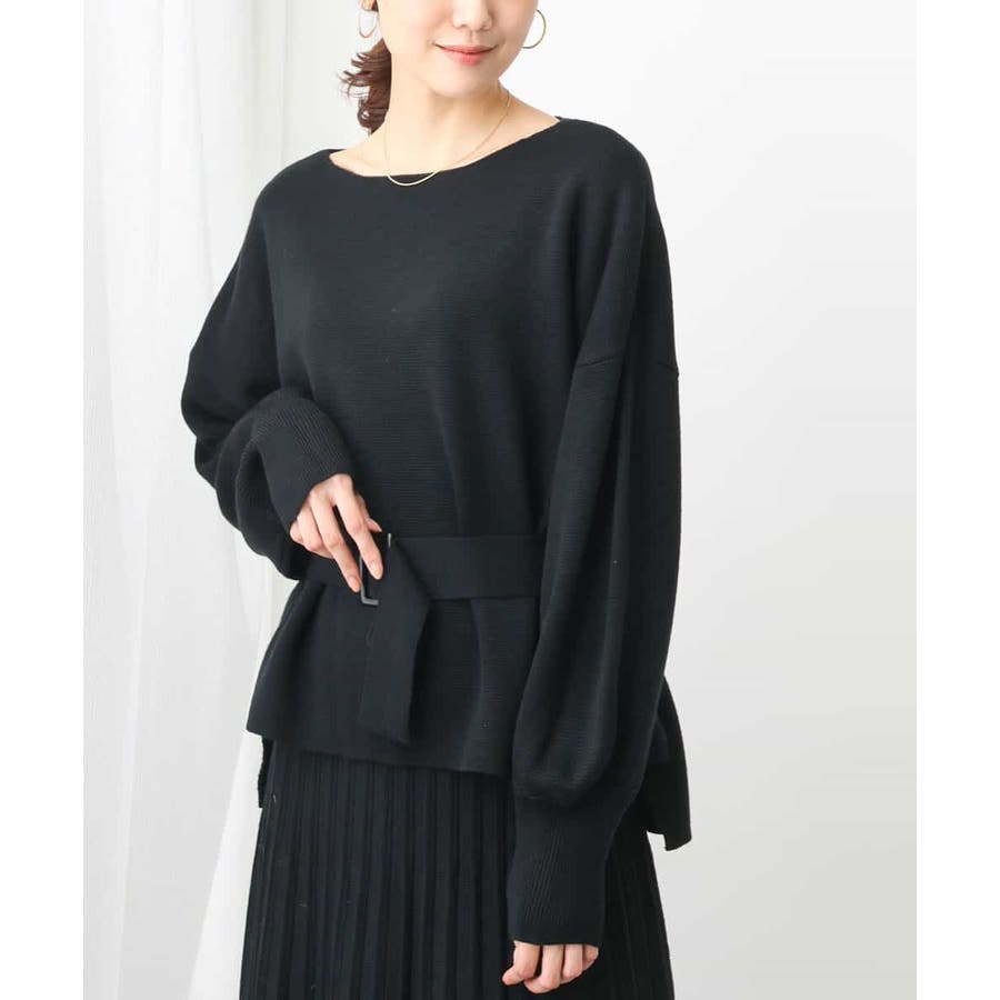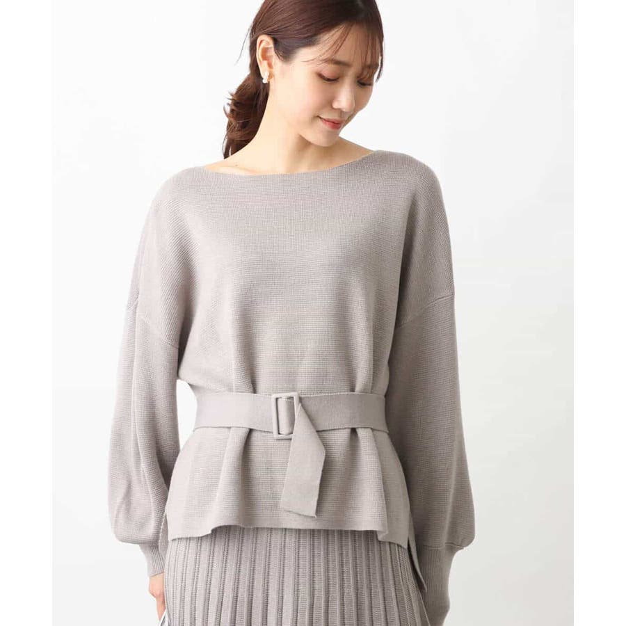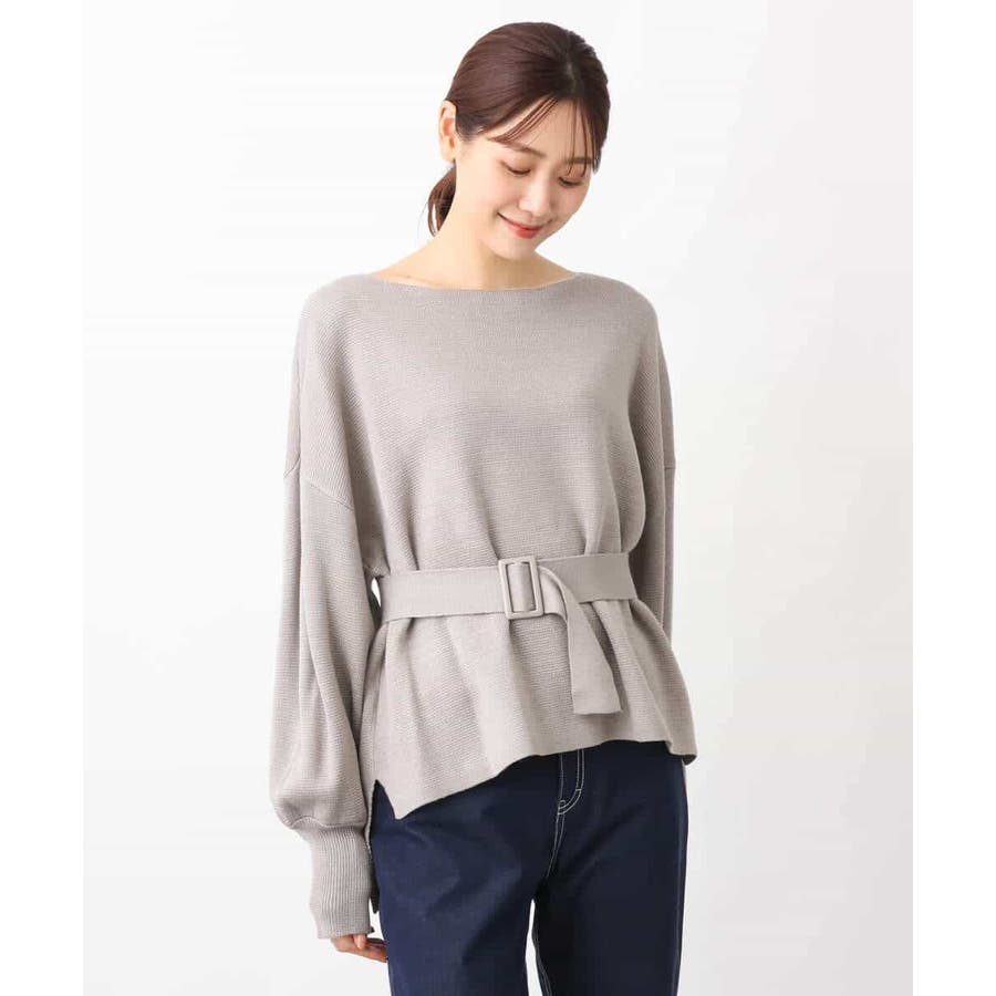 ボートネックですっきりとしたデザインに仕上げたニットプルオーバー。ベルト付き。きれいめな印象で着こなせるのでお仕事やお出かけにも最適です。
