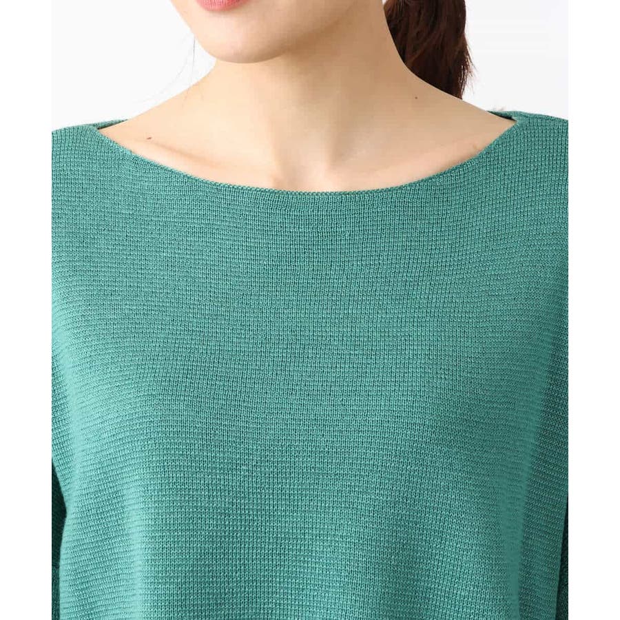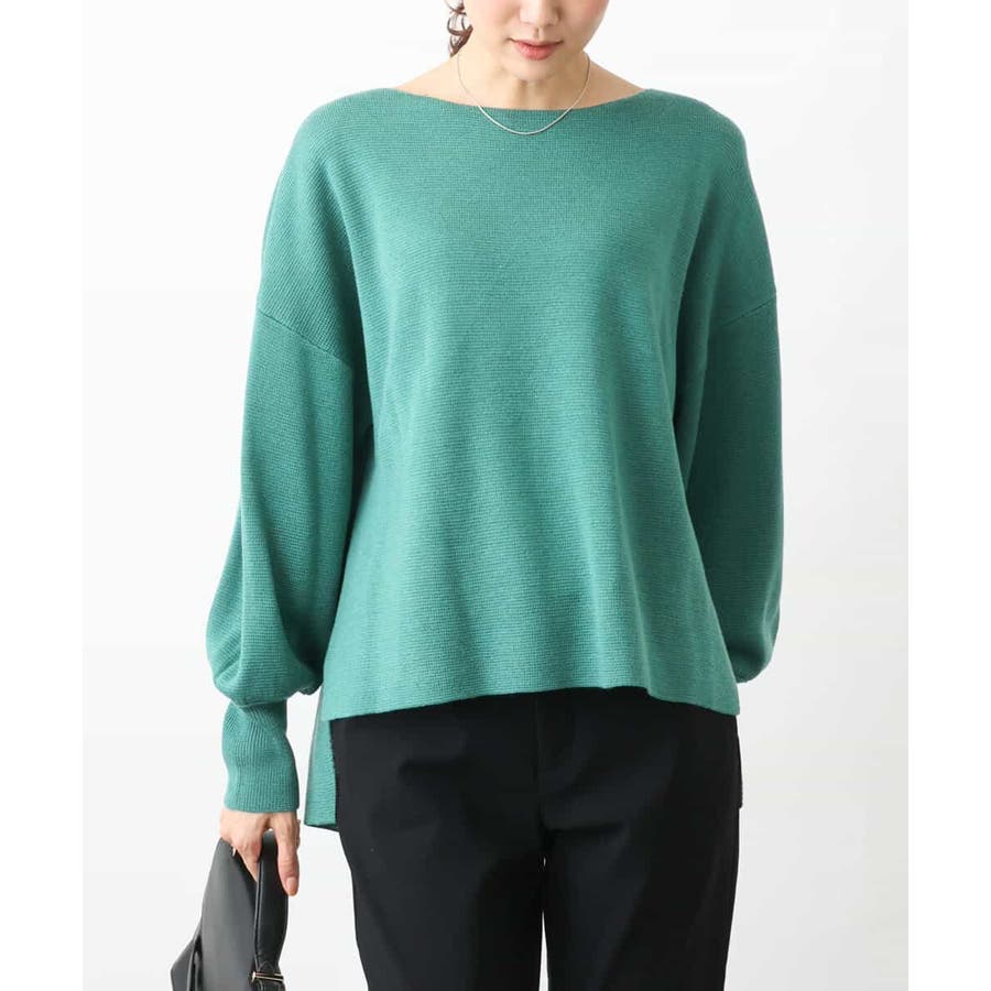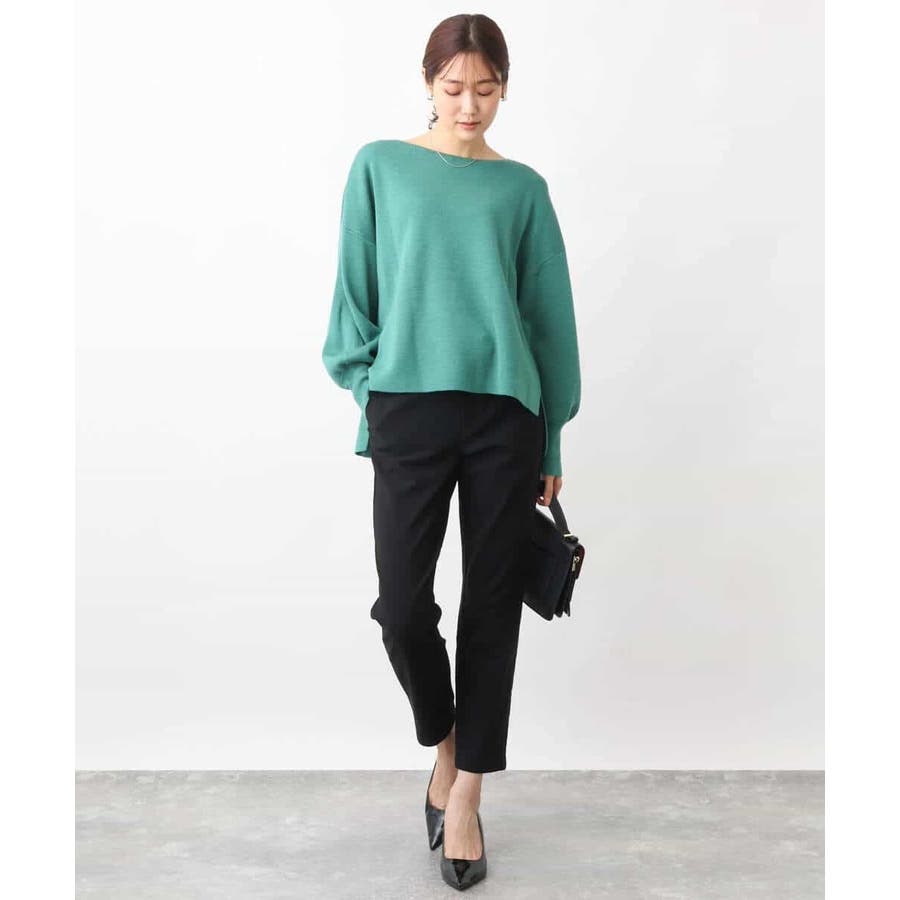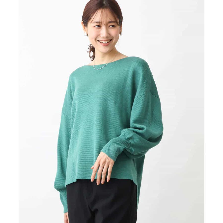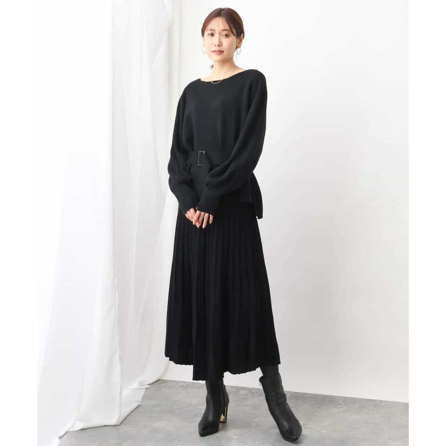 ボートネックですっきりとしたデザインに仕上げたニットプルオーバー。ベルト付き。きれいめな印象で着こなせるのでお仕事やお出かけにも最適です。