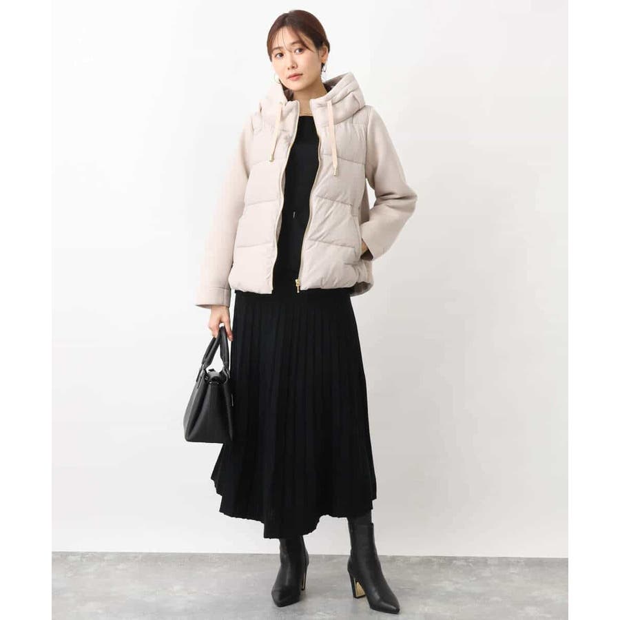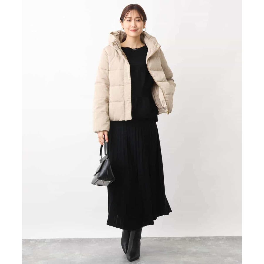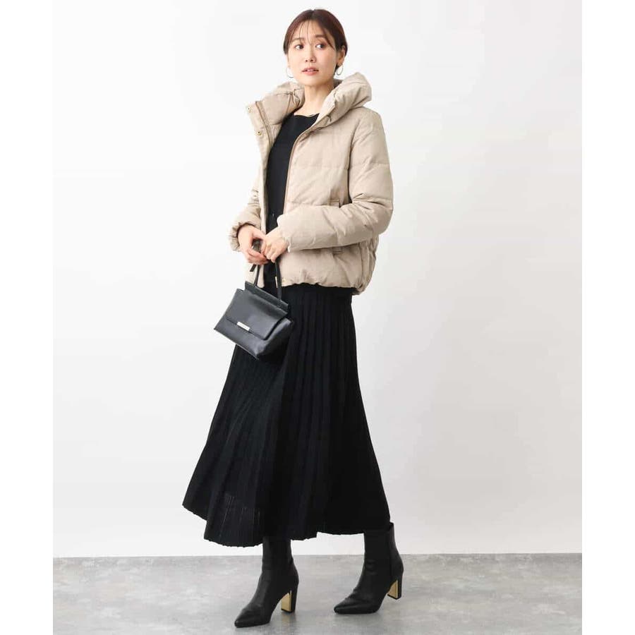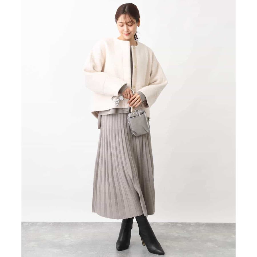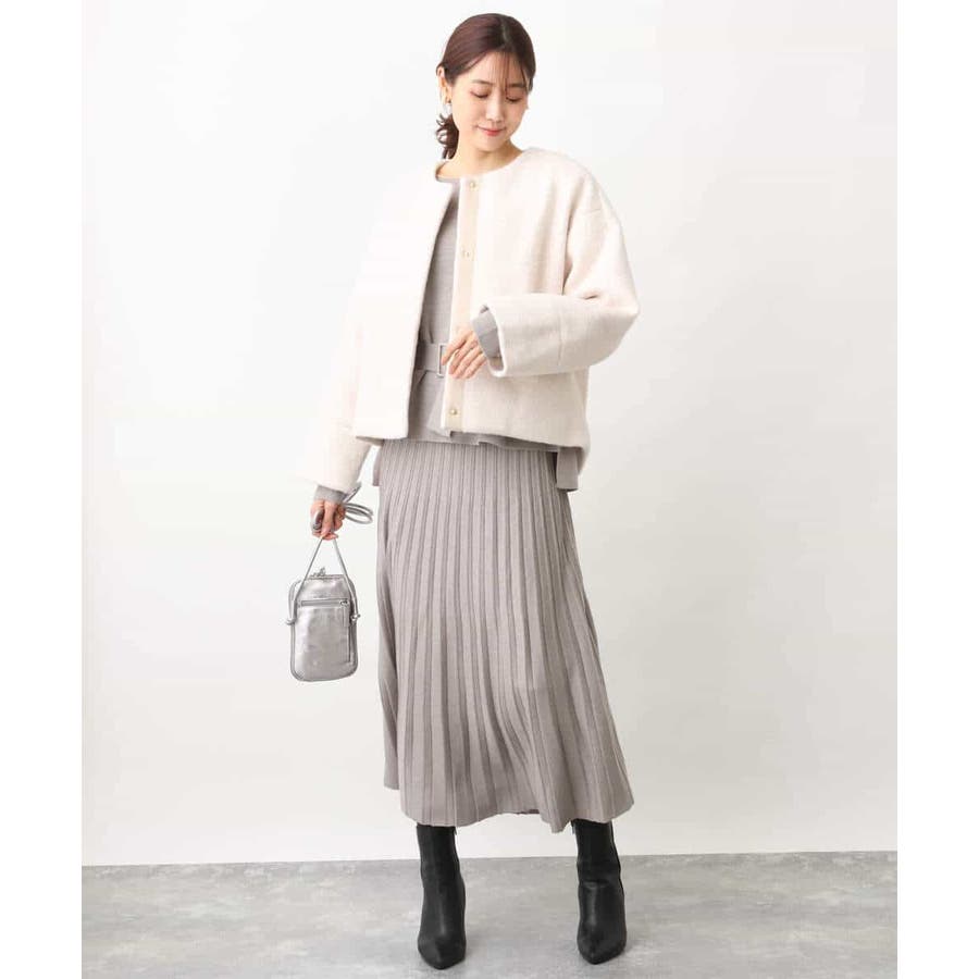 付属のベルトでウエストマークして、同素材のスカートとセットアップでの着こなしもおすすめです。ベルトなしで着こなせばベーシックなニットとしても着回し力◎