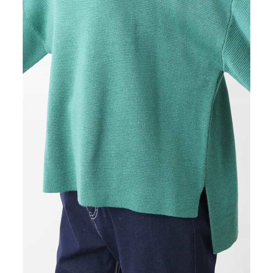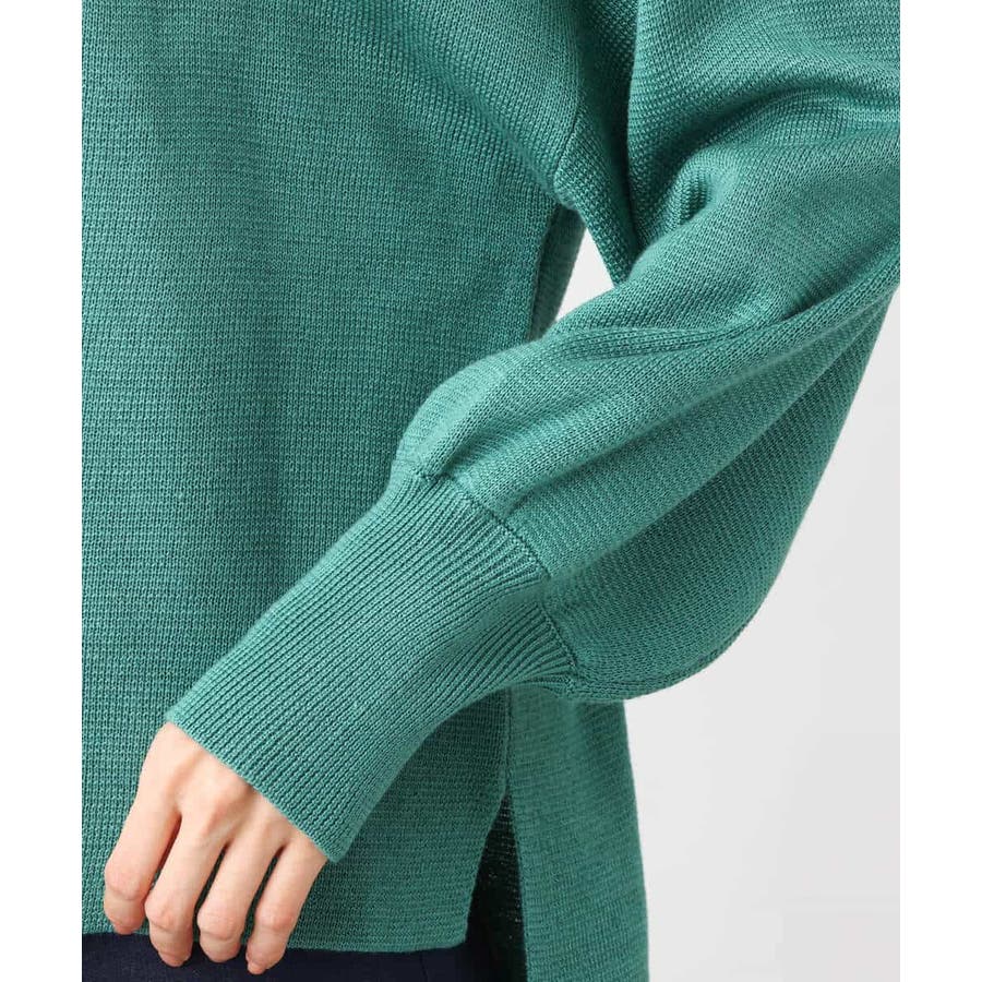 しっかりとした肉厚素材が一枚でも安心して着用できるニットは目面のきれいさがポイント。