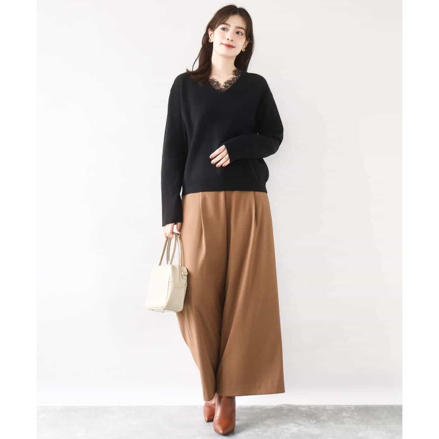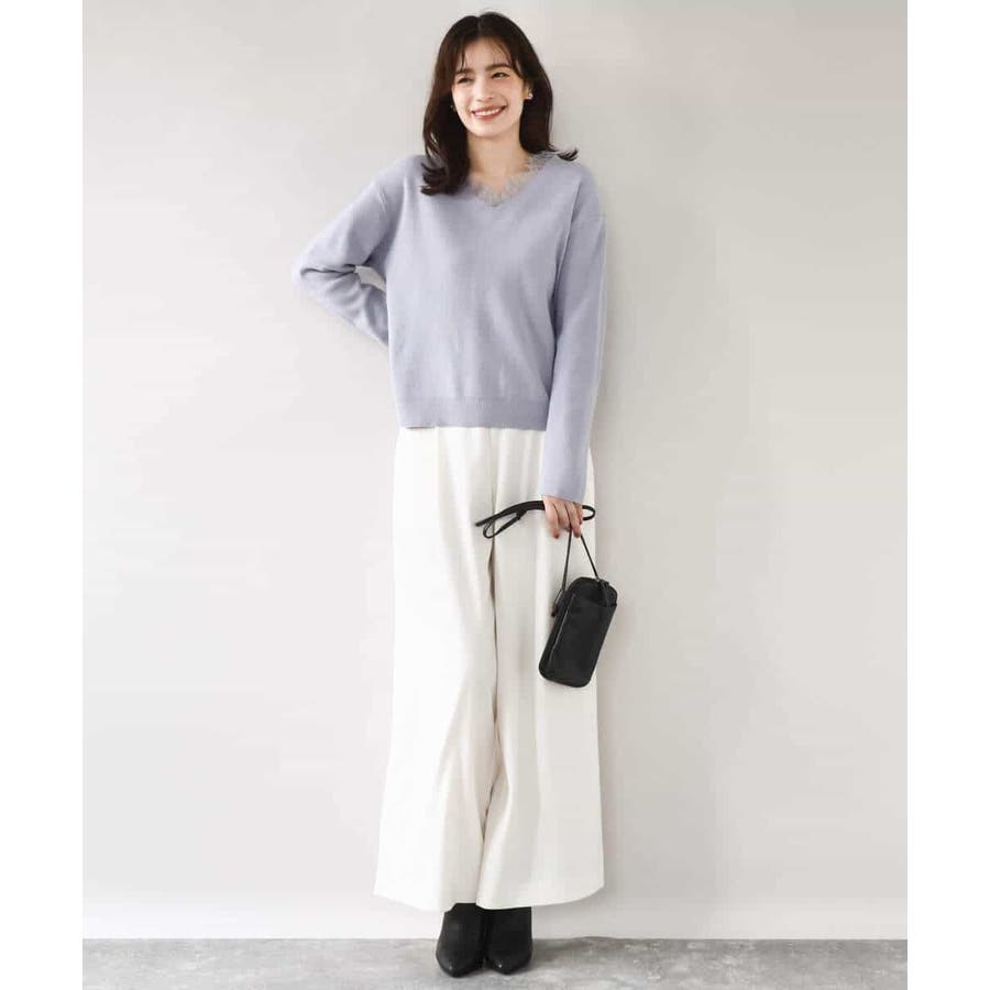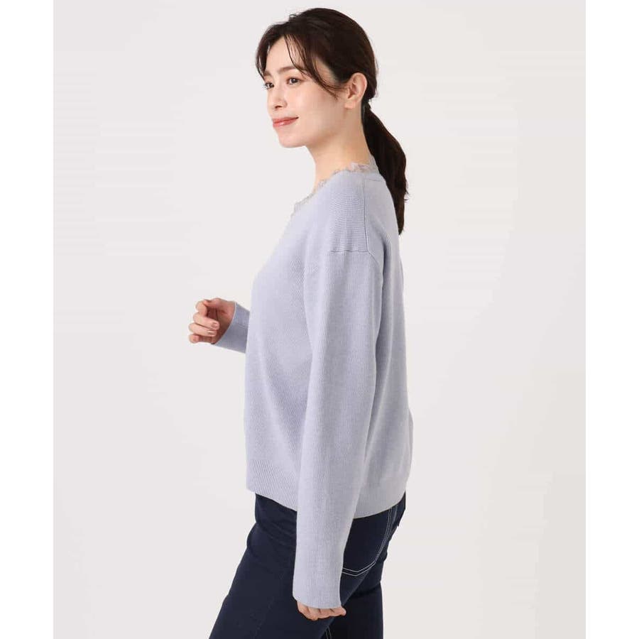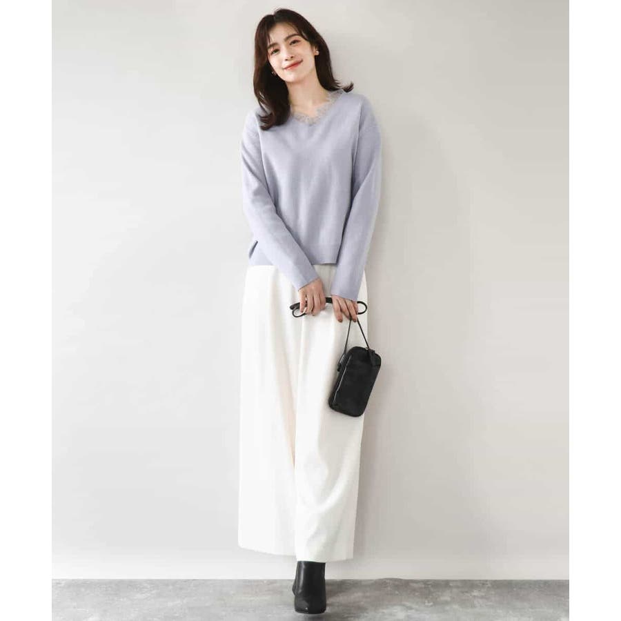ゆるっとラフに着こなしてもカジュアルになりすぎないのが嬉しいニットは、パンツからスカートまでボトムを選ばず楽しめます。衿ぐりのレースはアクセサリー要らずでコーデを華やかに上げてくれます。