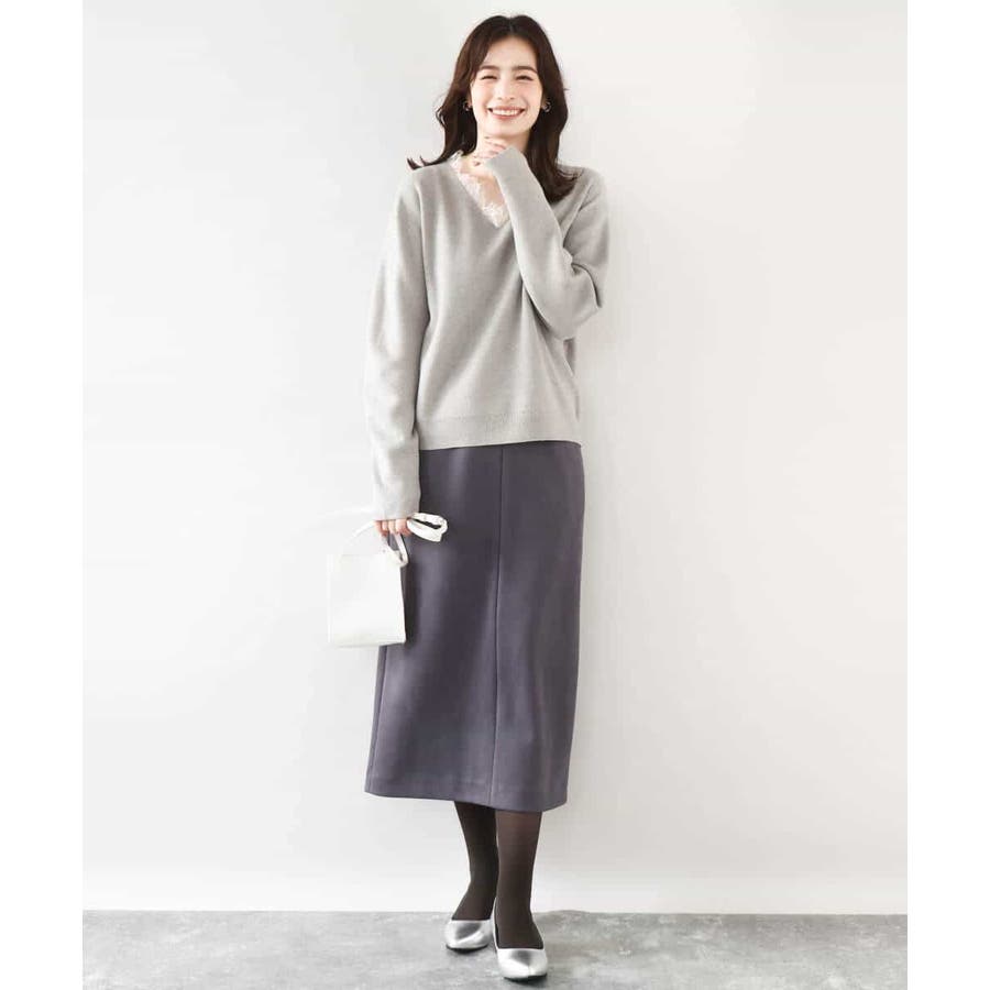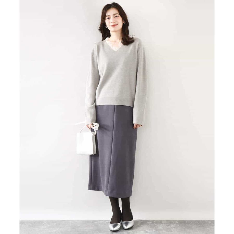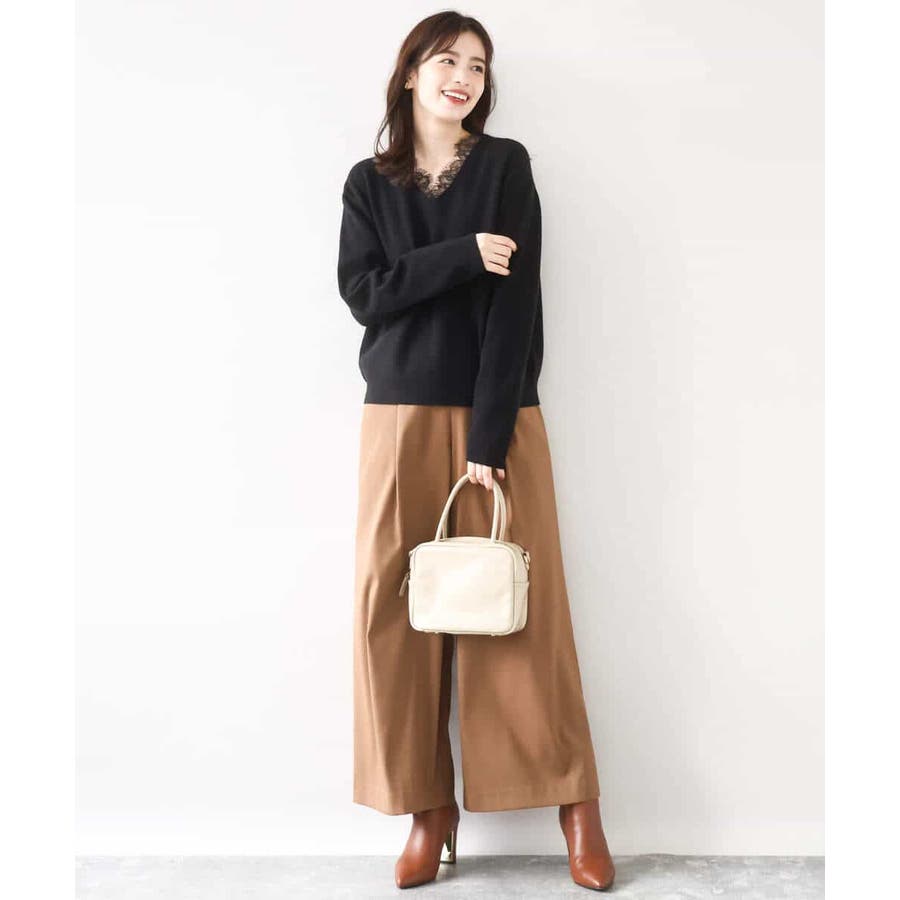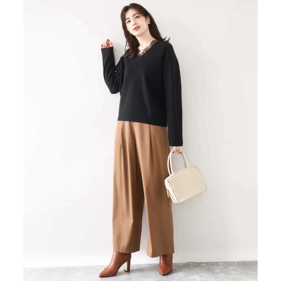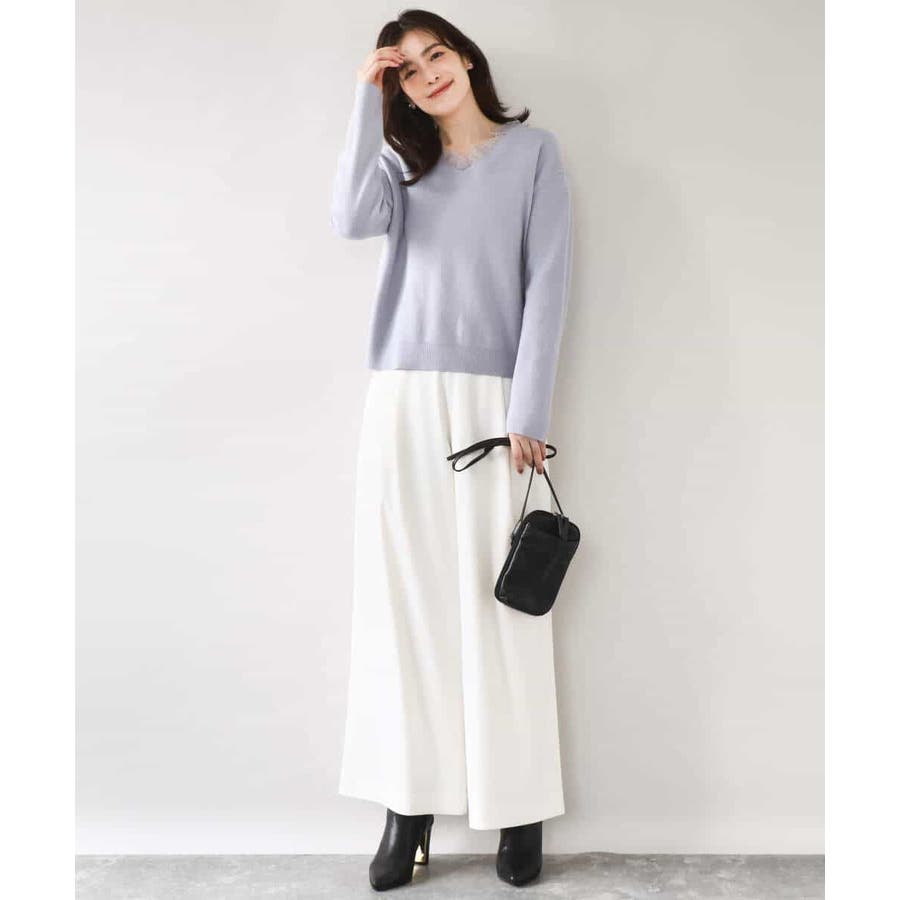 ゆるっとラフに着こなしてもカジュアルになりすぎないのが嬉しいニットは、パンツからスカートまでボトムを選ばず楽しめます。衿ぐりのレースはアクセサリー要らずでコーデを華やかに上げてくれます。