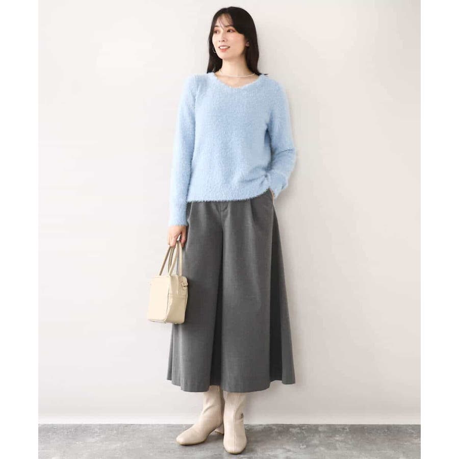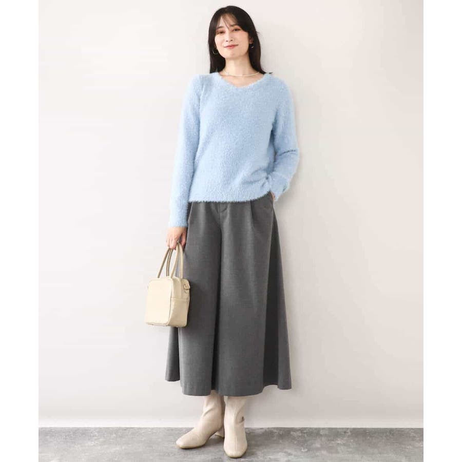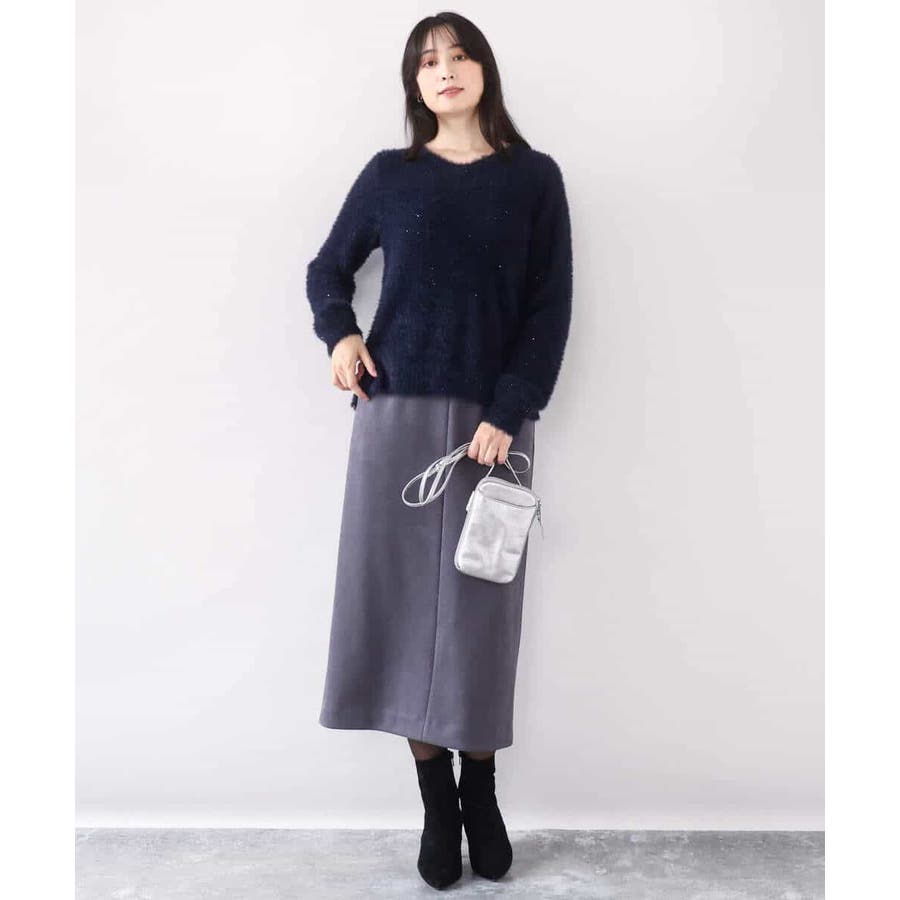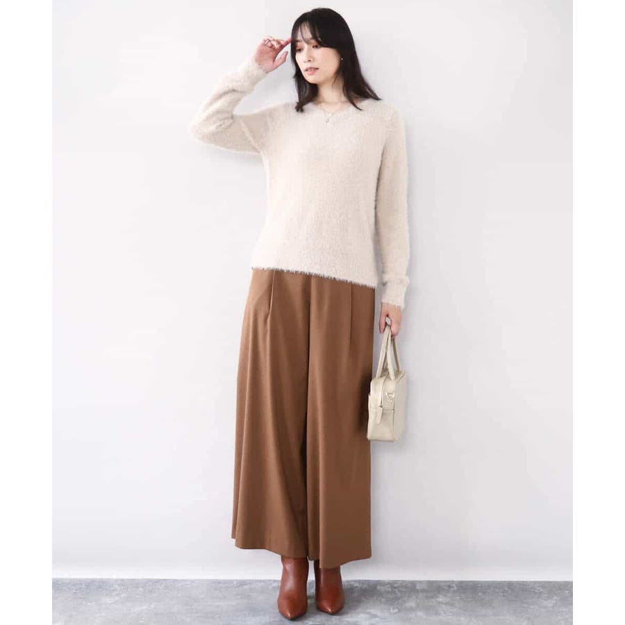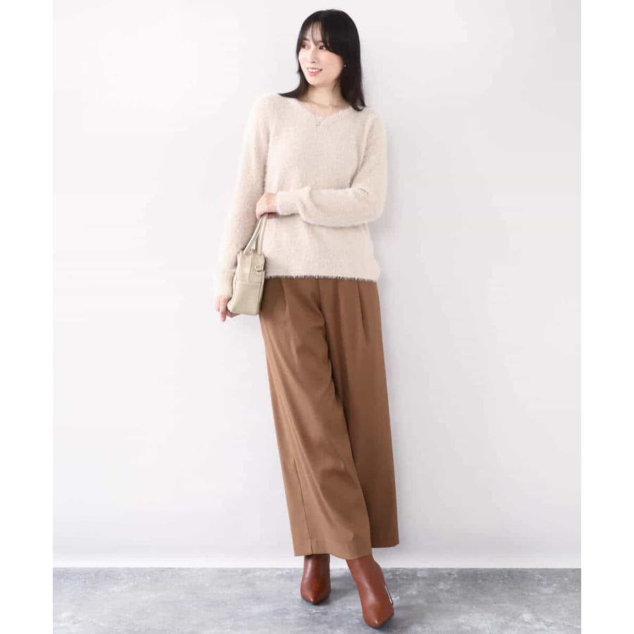 見た目にも可愛いシャギーニットはコーディネートの主役に最適。コートインでも着映えが叶います。スパンコールのキラキラ感も派手過ぎず上品な印象なので、普段使いからホリデーシーンにまで楽しめるニットです。