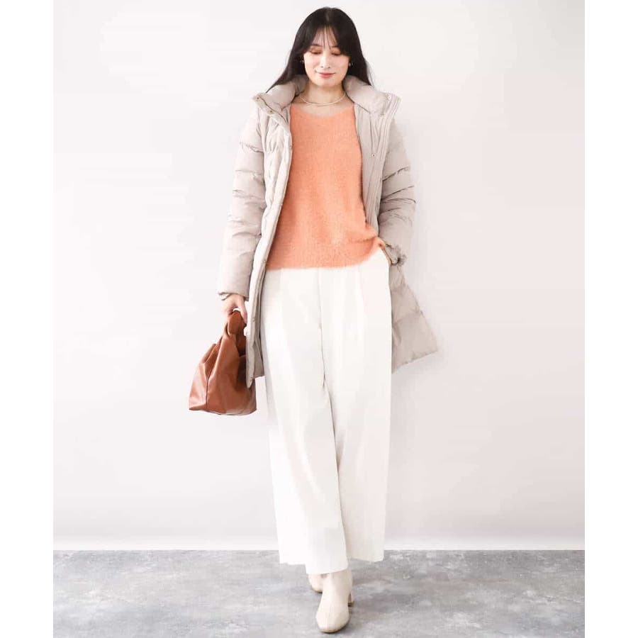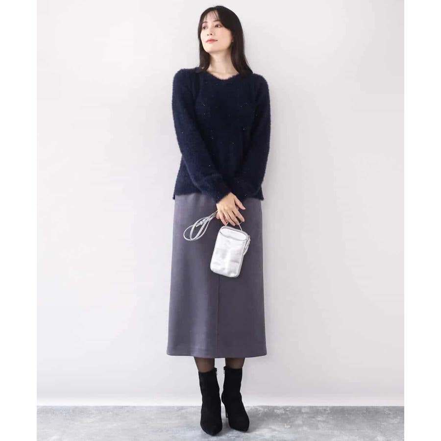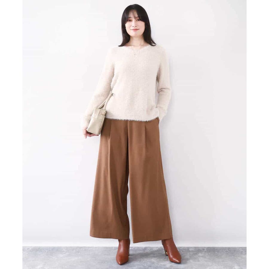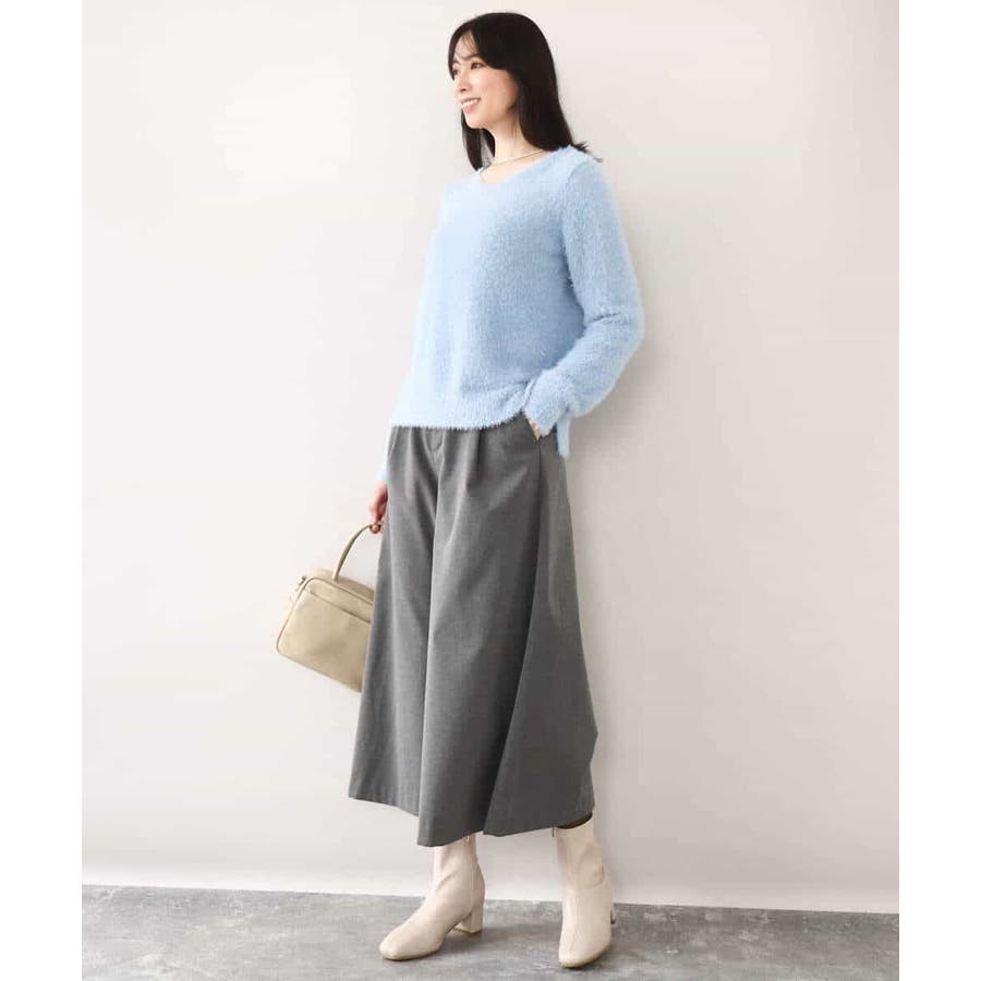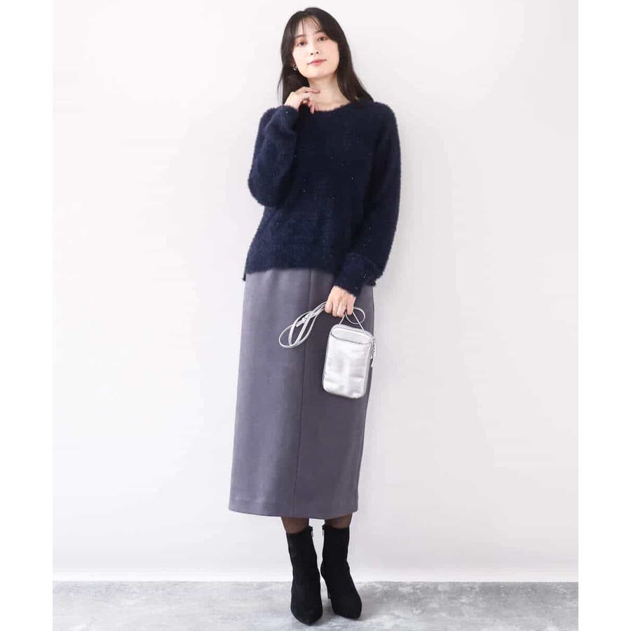 見た目にも可愛いシャギーニットはコーディネートの主役に最適。コートインでも着映えが叶います。スパンコールのキラキラ感も派手過ぎず上品な印象なので、普段使いからホリデーシーンにまで楽しめるニットです。